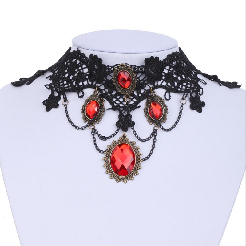 Victorian Gothic Halloween Red Rhinestone Charms Vampire Maxi Necklace Choker Cocktail Evening Party Dress Jewelry