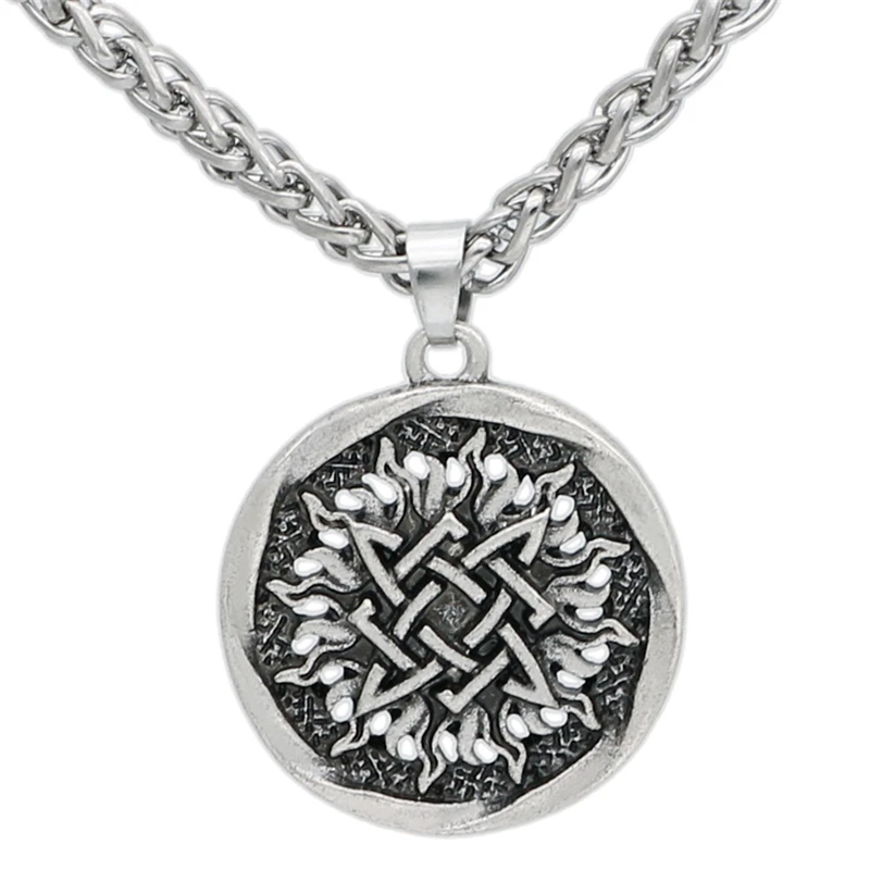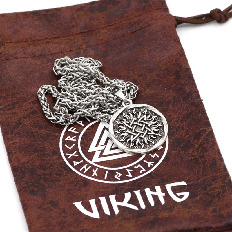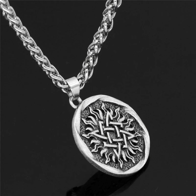 Viking Retro Sun Flower Wheel Necklaces Vintage Jewelry Temperament Pendant With Stainless Steel Chain