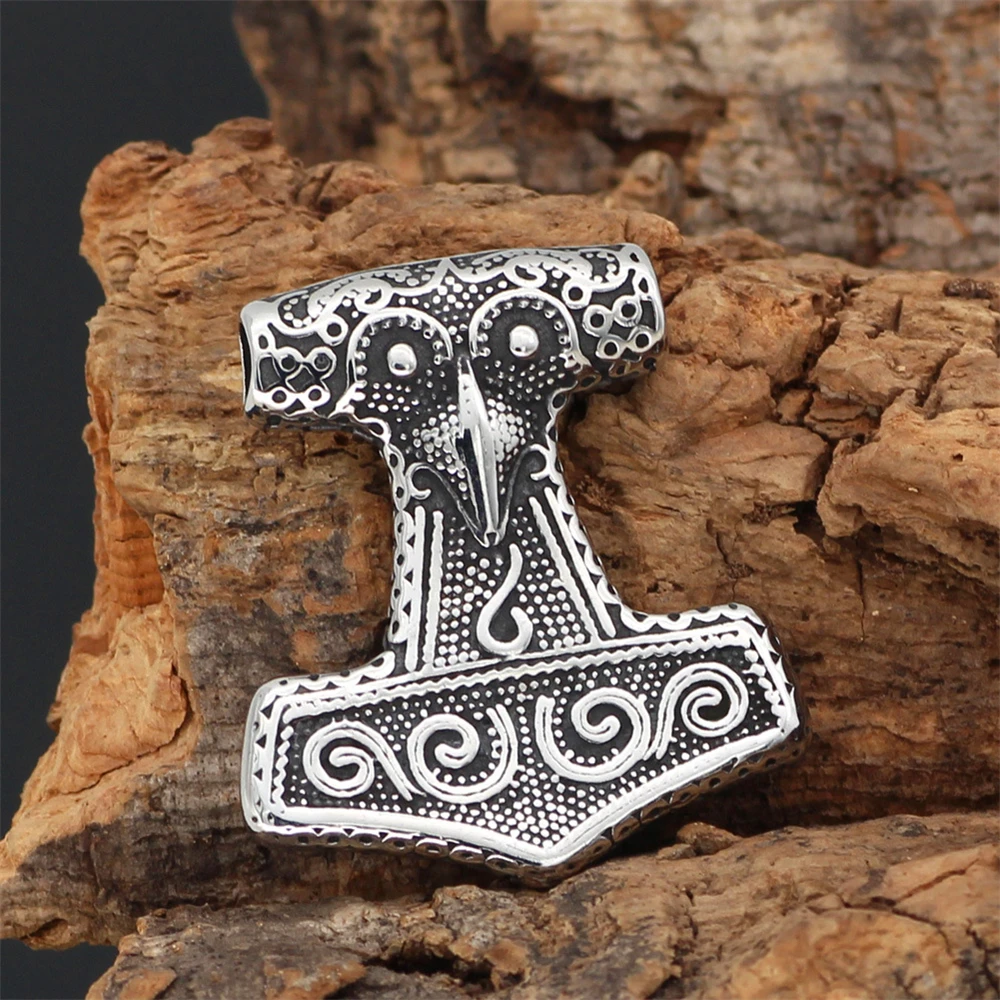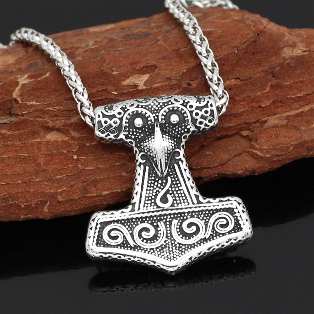 Vikings Anchor Raven Necklace Men Stainless Steel Norse Amulet Runes Odin Hammer Mjolnir Pendant Scandinavian Male Jewelry Gifts