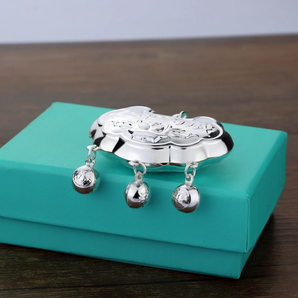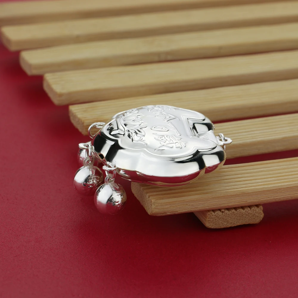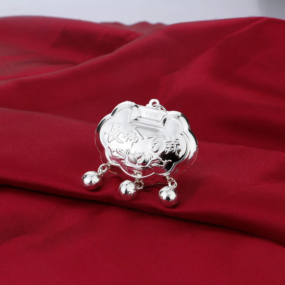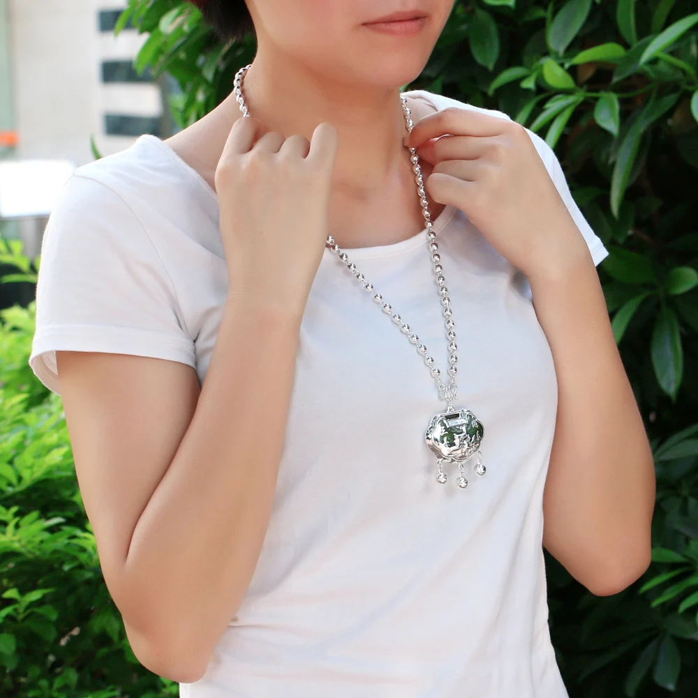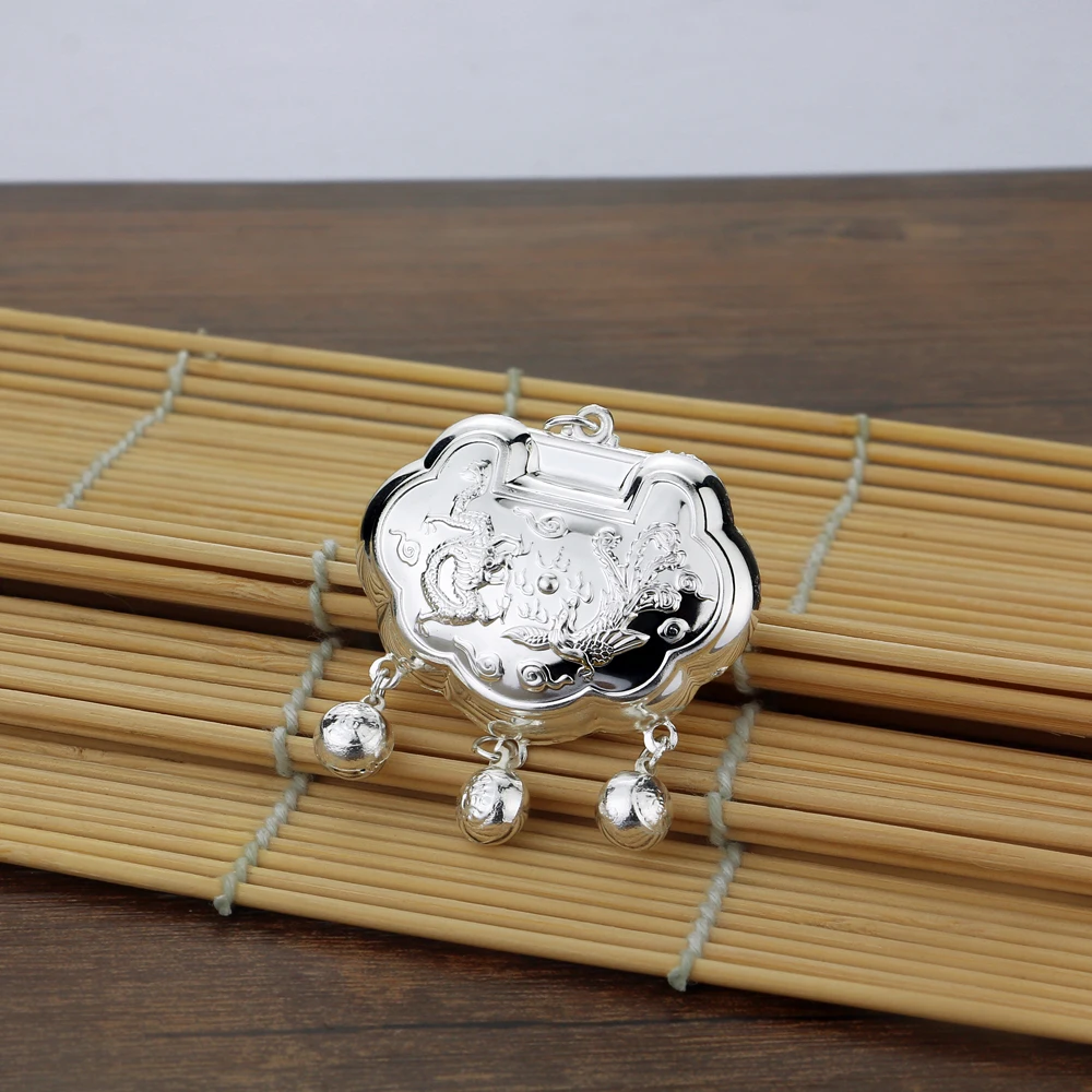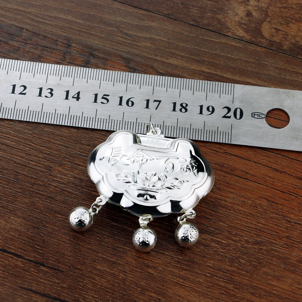 Vintage Ethnic Style Jewelry Women's 925 Sterling Silver 5-8MM Beads Chain Necklace Pattern Lock Pendant Sweater Chain 46-89CM