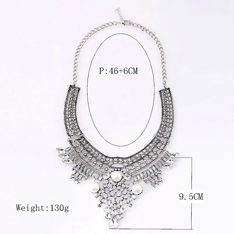 Vintage Silvered Choker Collar Necklace Pearls Beaded Crystal Statement Maxi Long Necklace Femme Layered Enthic Collar Jewelry