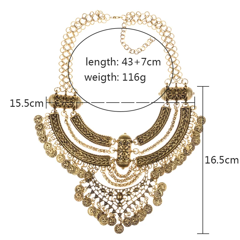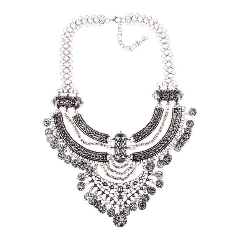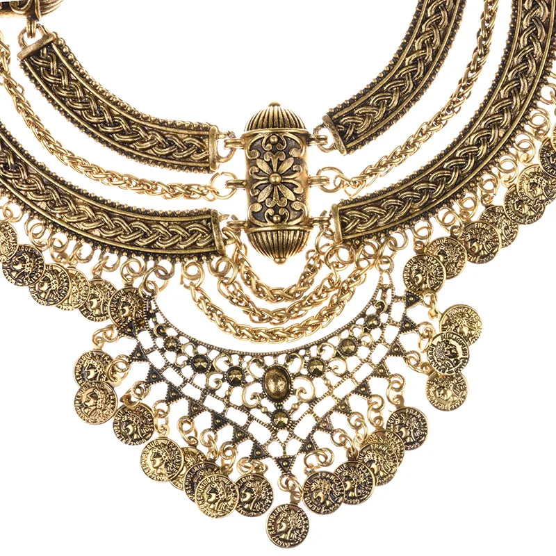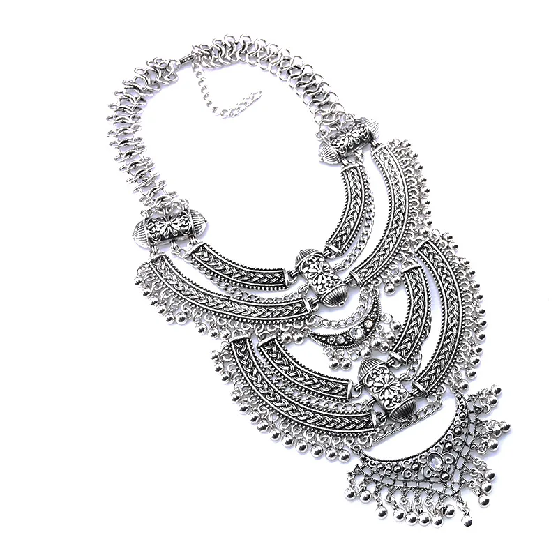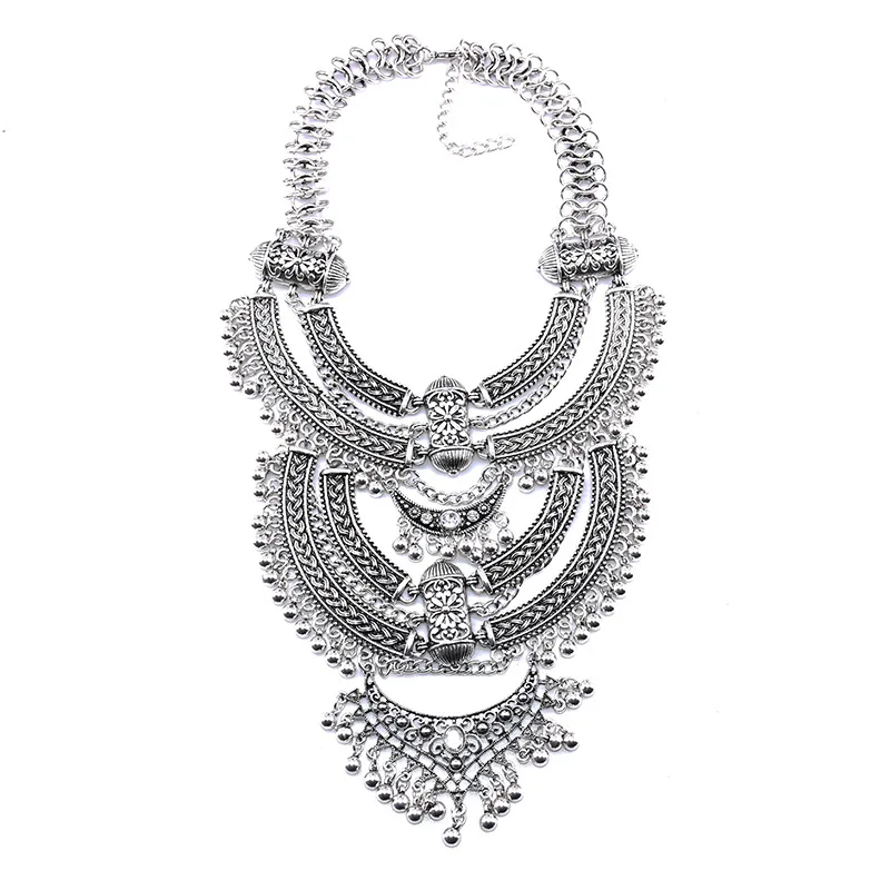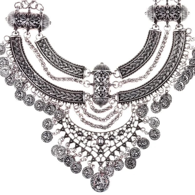 Vintage Statement Gypsy Necklace Women Bohemia Ethnic Big Choker Necklace Femme Indian Maxi Power Large Collar Necklace Jewelry