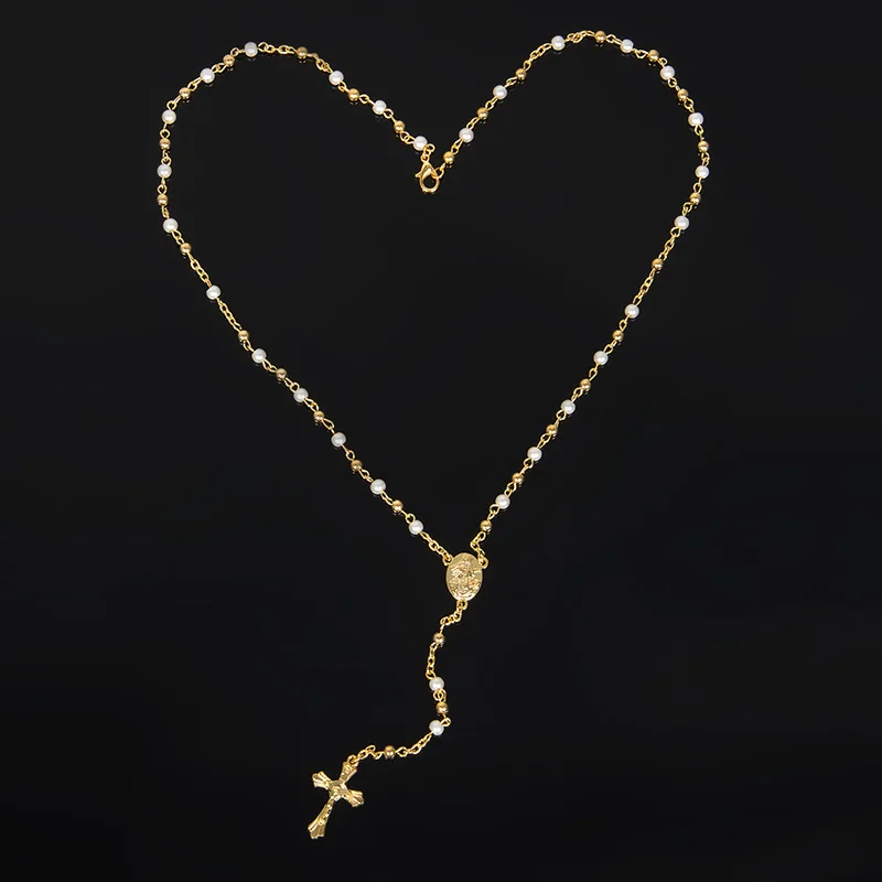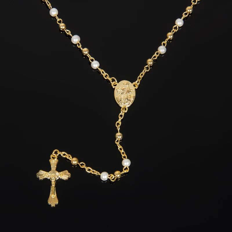 Virgin Mary Catholic Jesus Christ Religious Jewelry Women Glass Pearl Long Strand Rosary Necklace