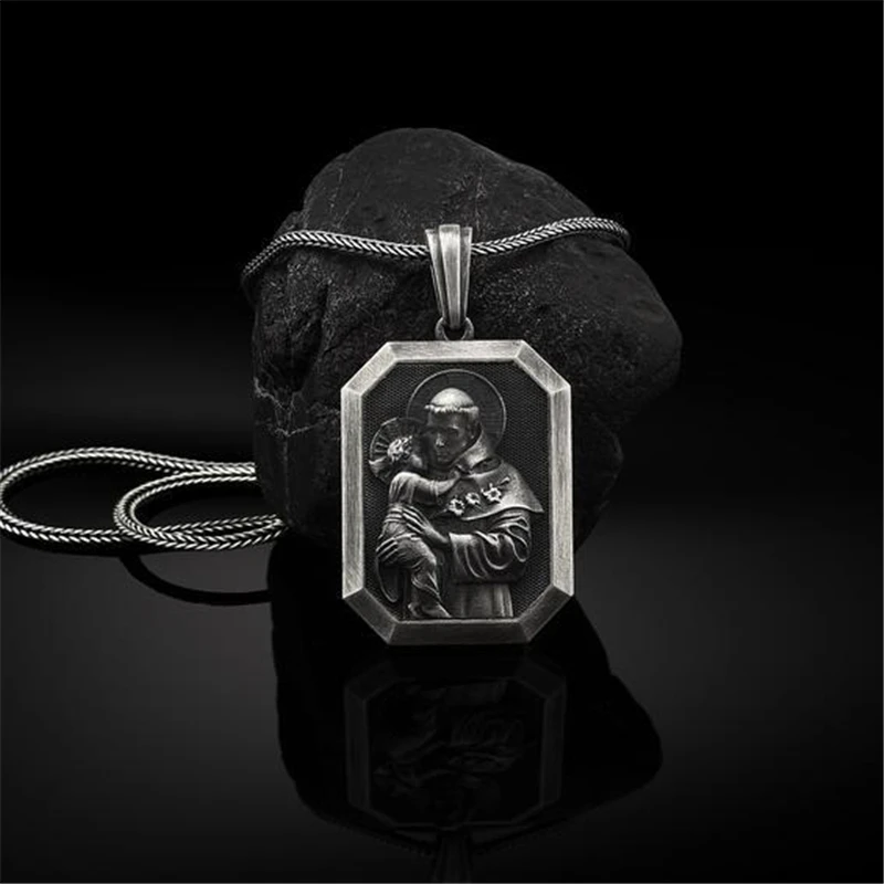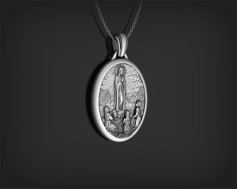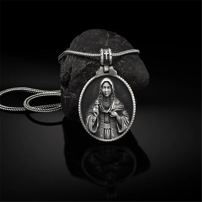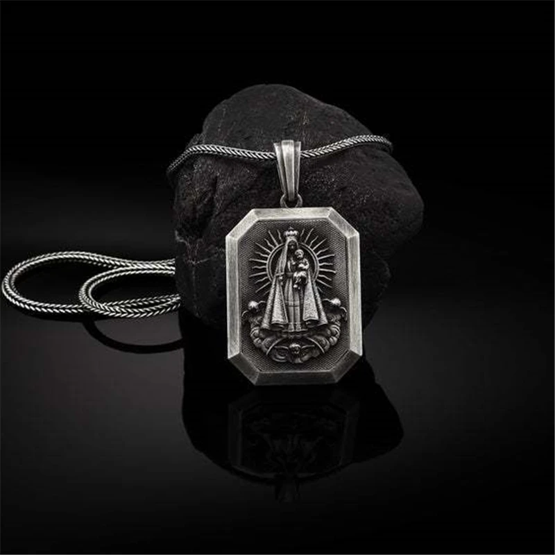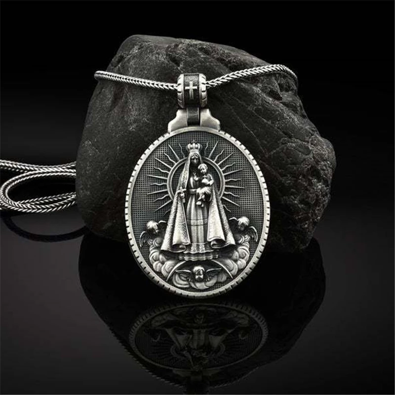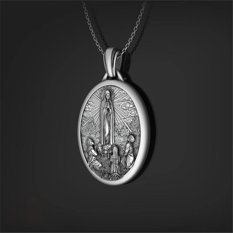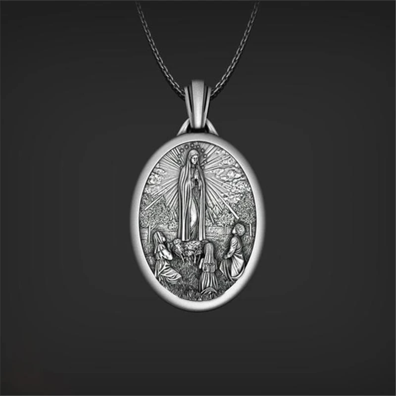 Virgin Mary Necklace Pendant Religion Viking Ancient Silver Color Christian Necklace Men Women Religious Jewelry Christmas Gifts