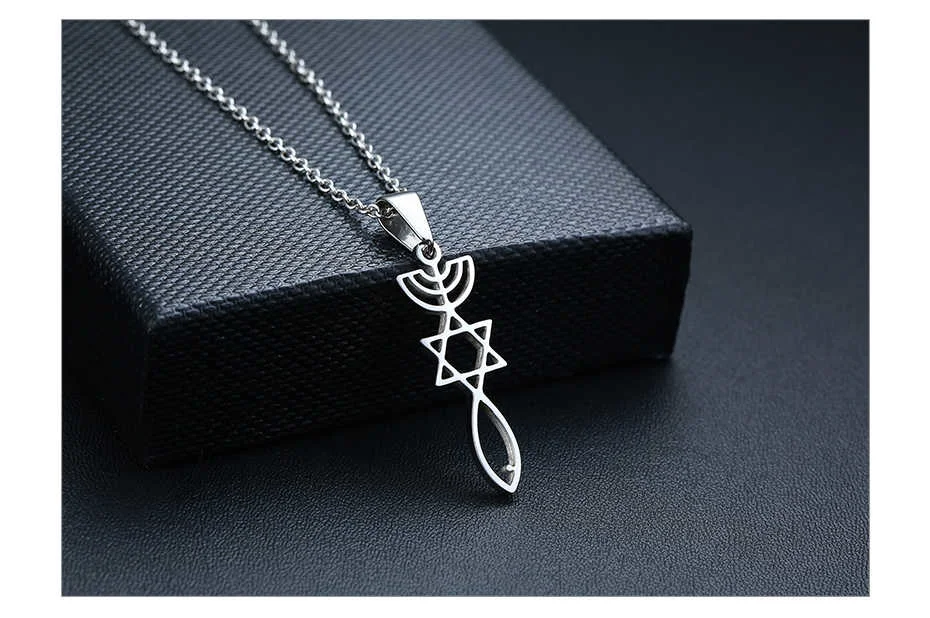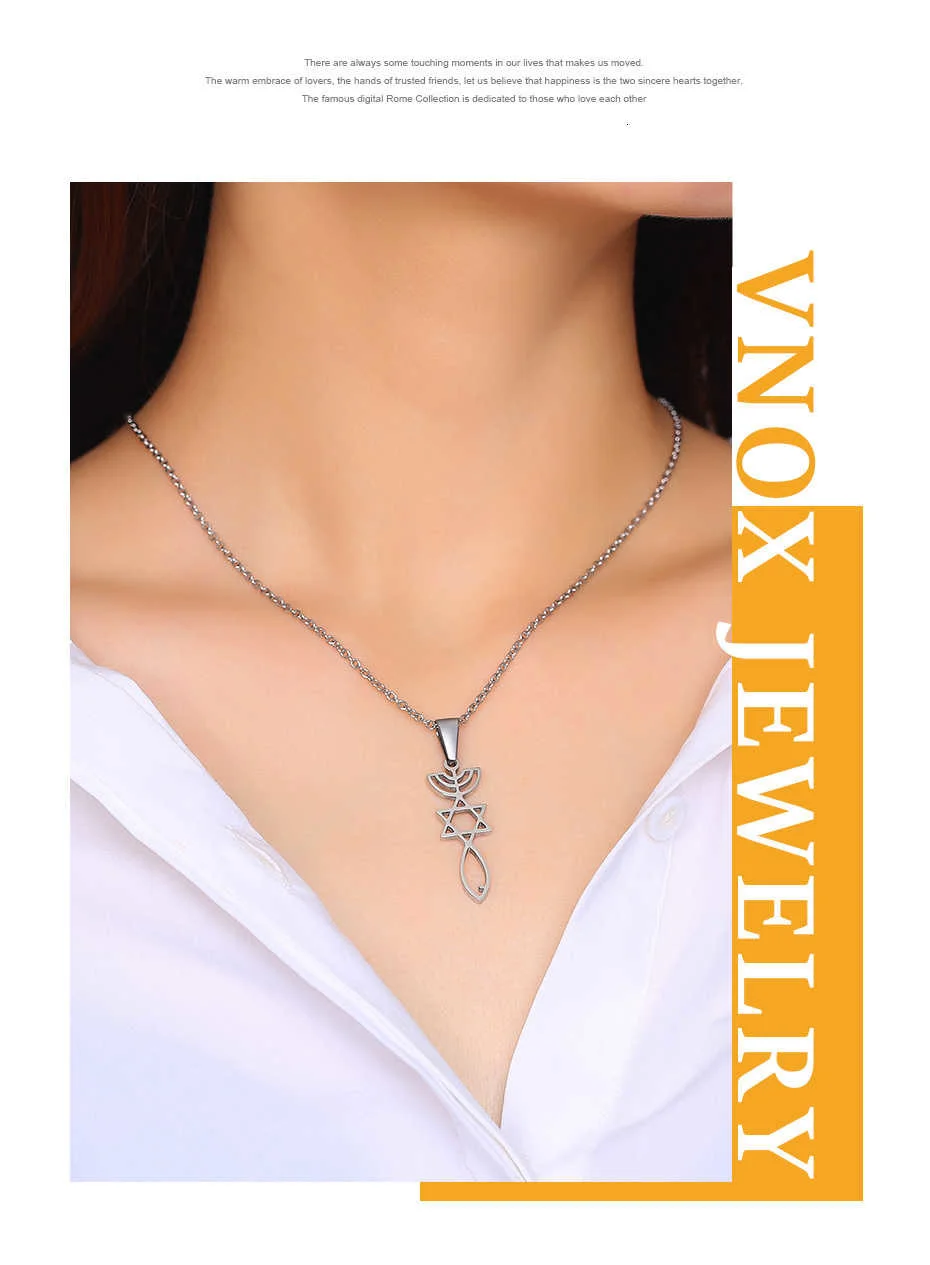 Vnox Messianic Seal Pendant Spiritual Religious Jewelry Grafted Necklace Casual Stainless Steel Women Jewelry