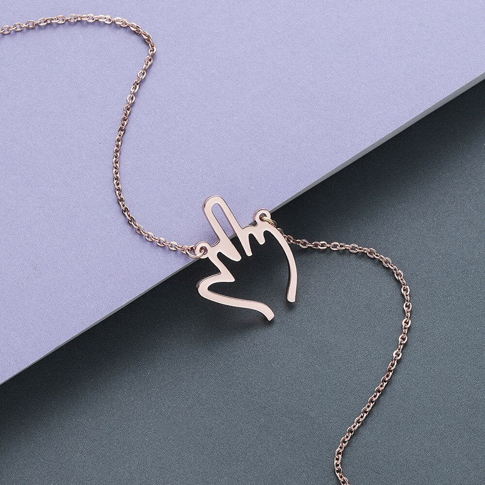 WANGAIYAO style accessories stainless steel pendant necklace female palm gesture lady clavicle chain jewelry creative jewelr