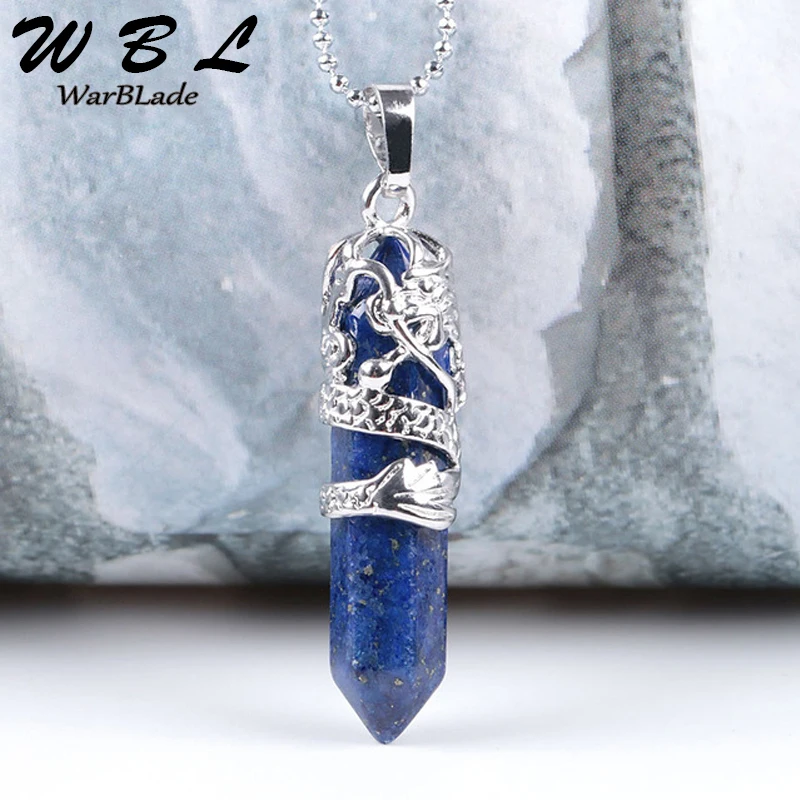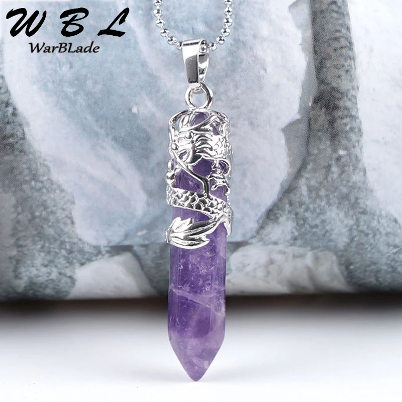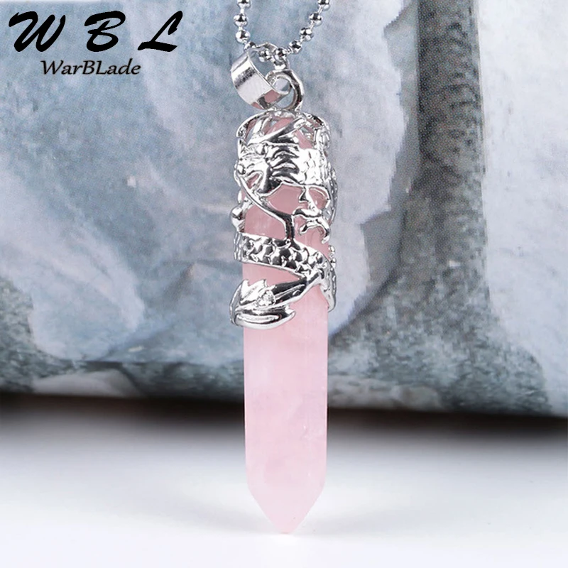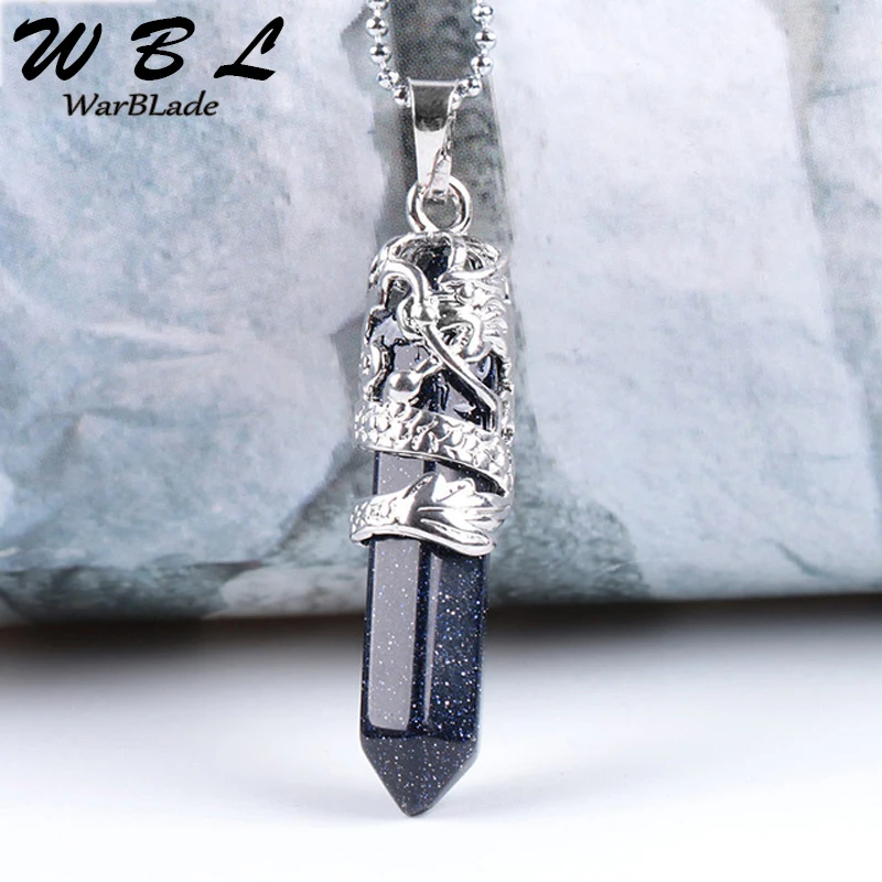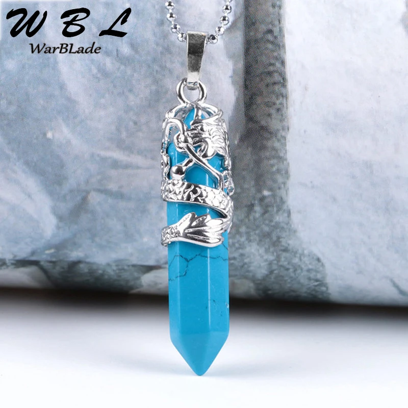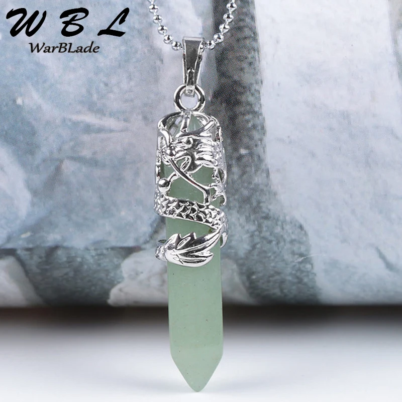 WarBLade Dragon Tribe Natural Stone Hexagonal Crystal Totem Quartz Prism Ethnic Pendant Necklace Hanging Jewelry for Women Men