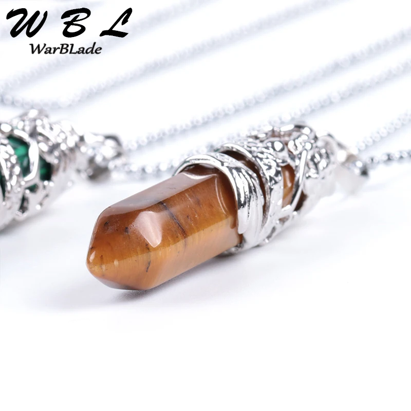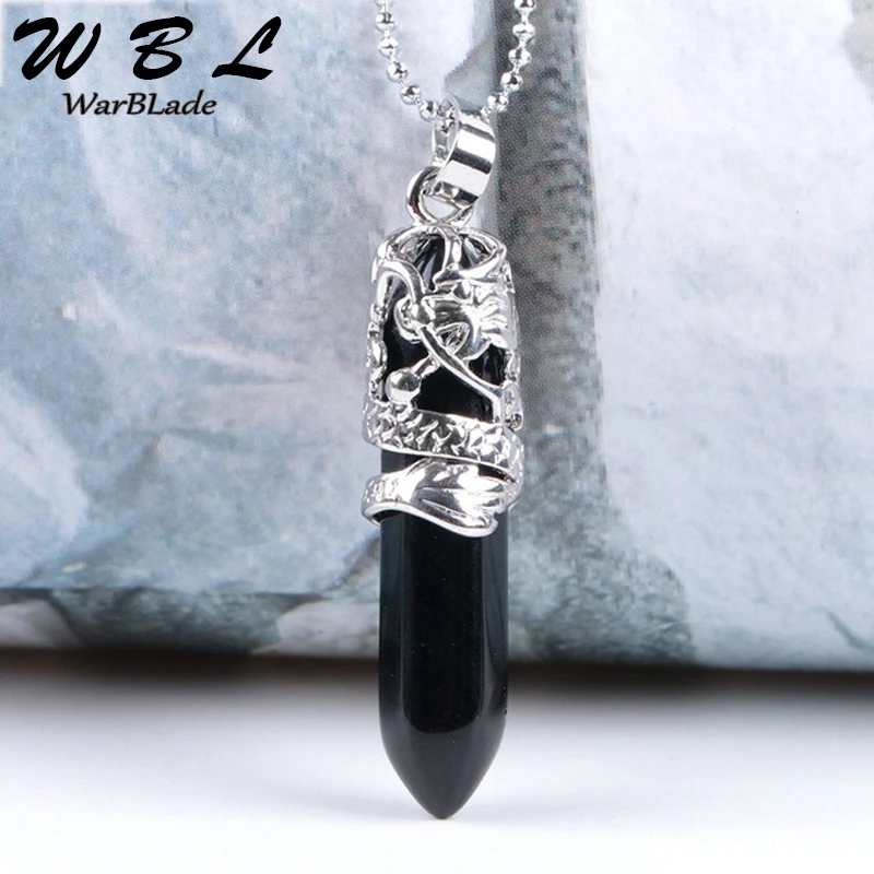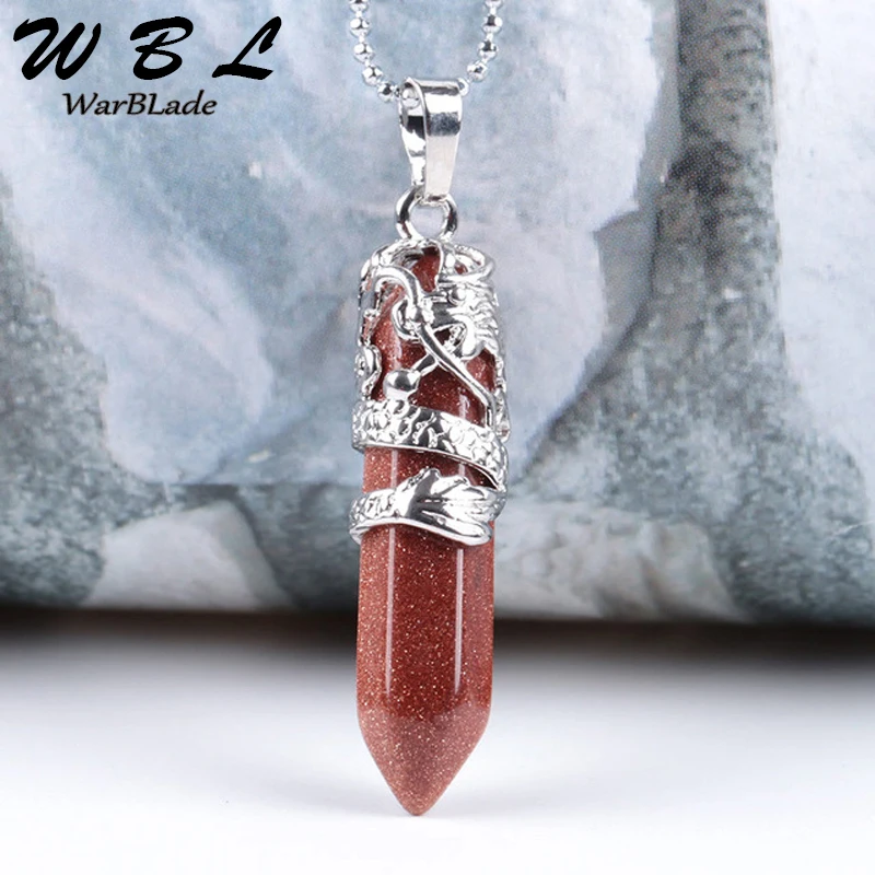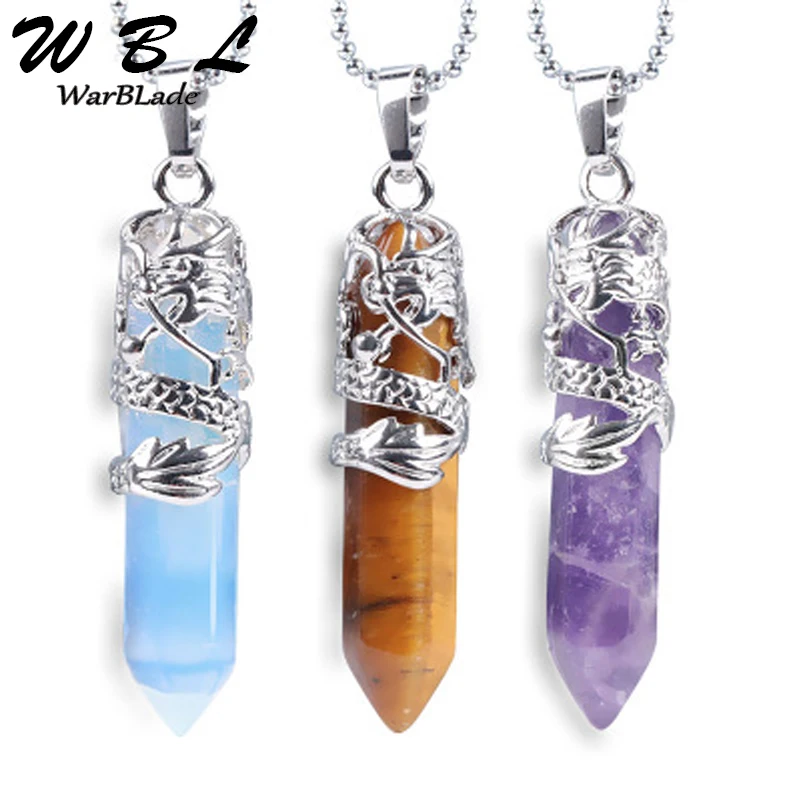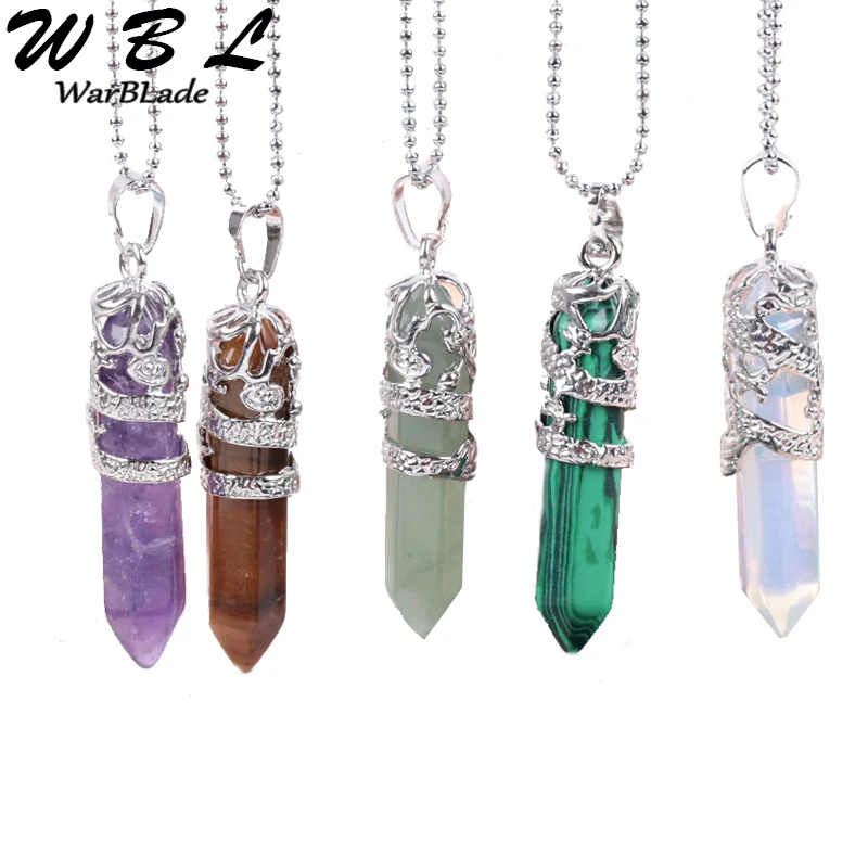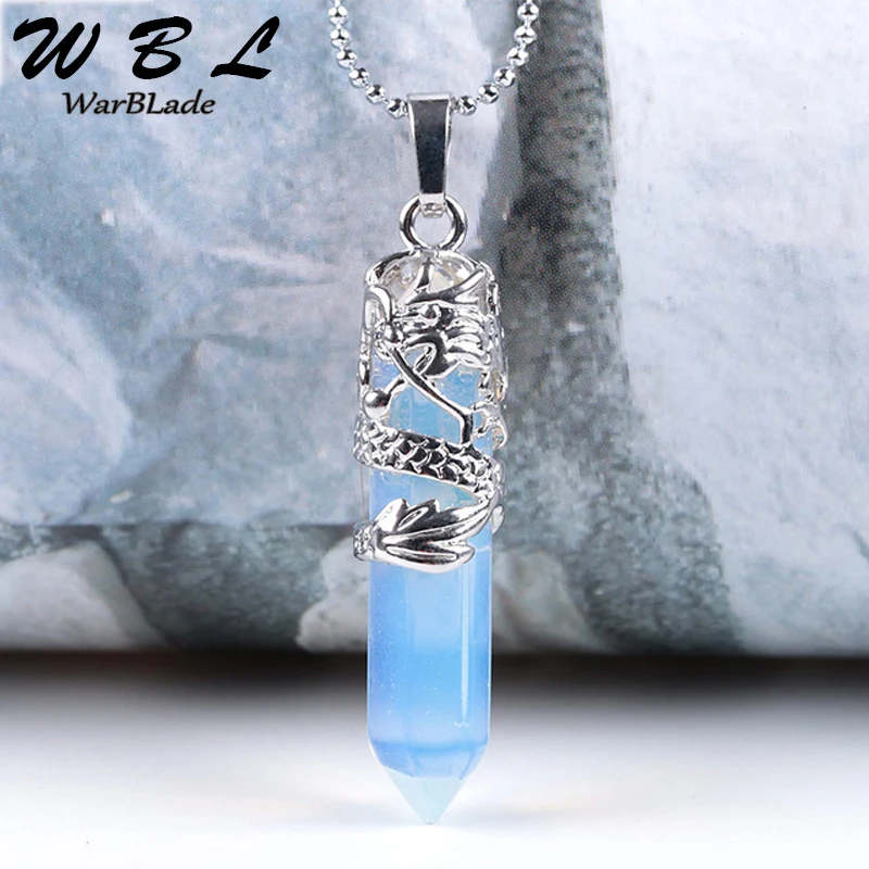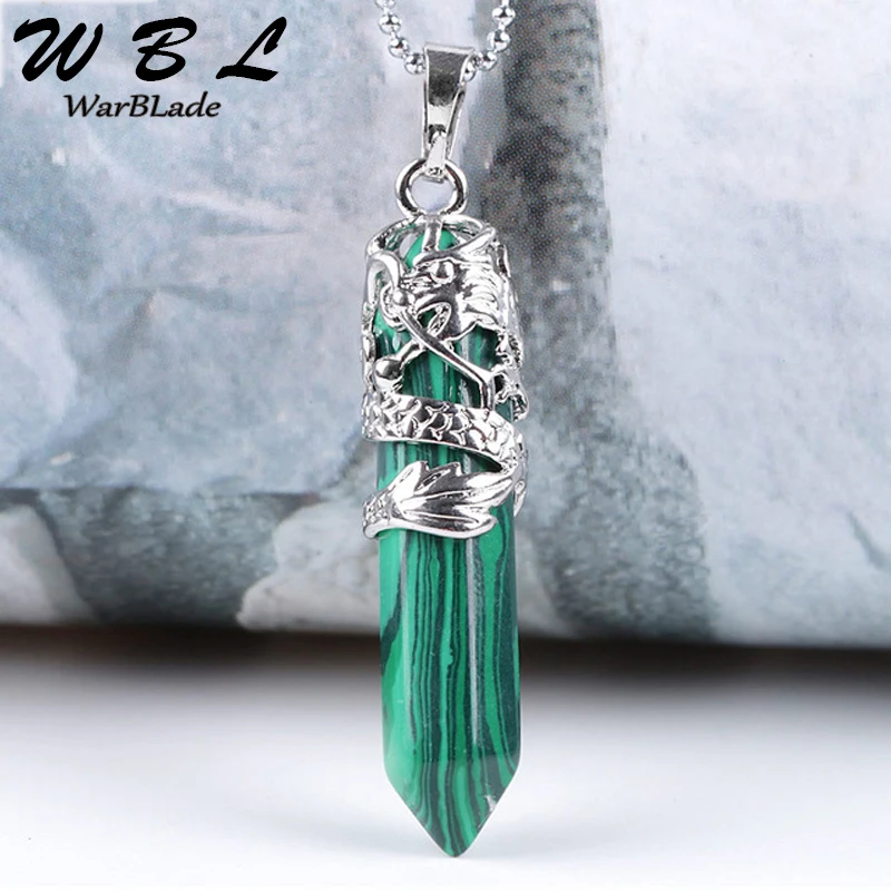 WarBLade Dragon Tribe Natural Stone Hexagonal Crystal Totem Quartz Prism Ethnic Pendant Necklace Hanging Jewelry for Women Men