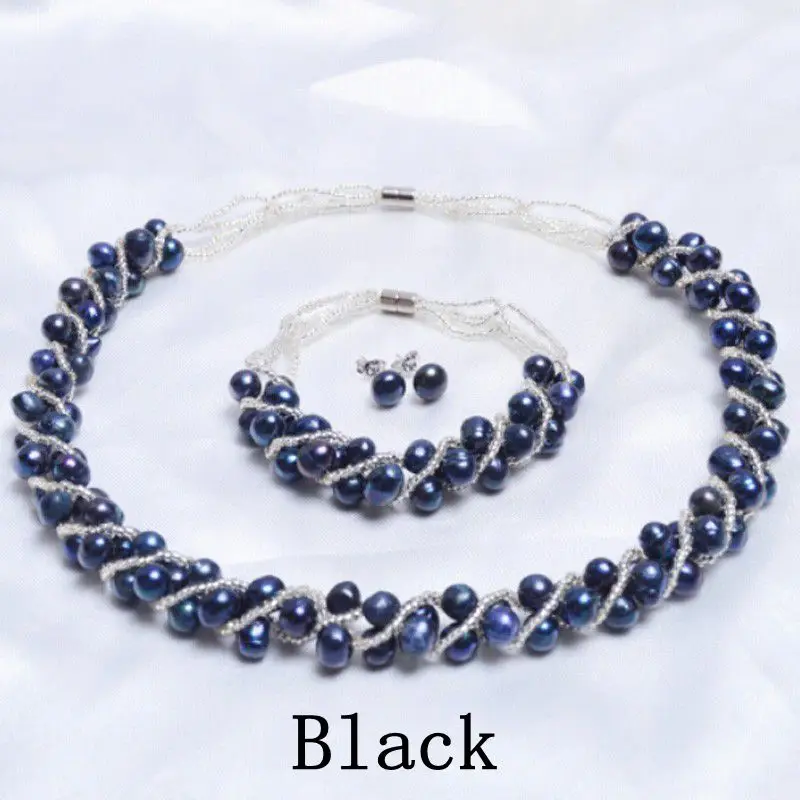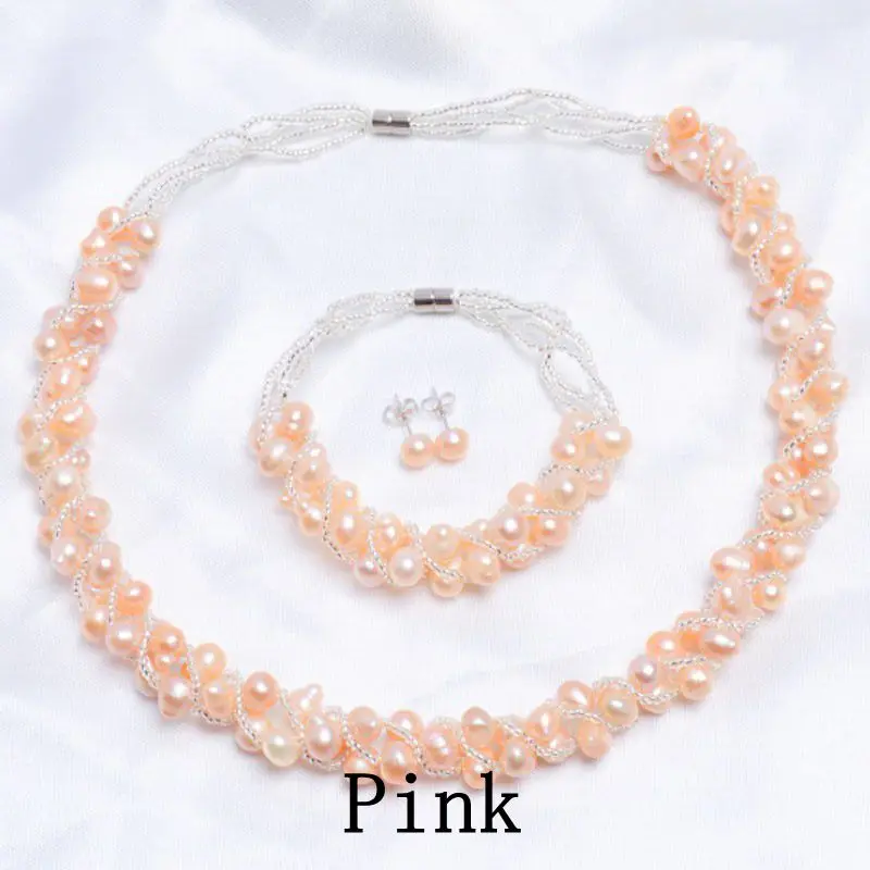 100% pearl Necklace /bracelet /stud Earring Jewelry Sets For Women