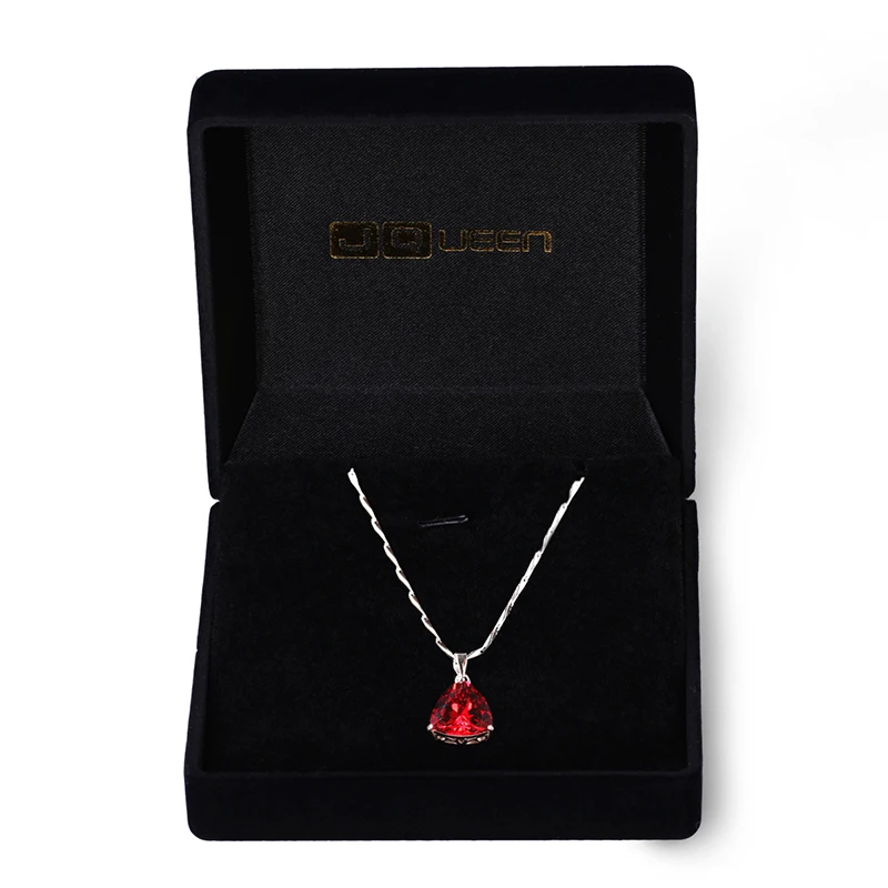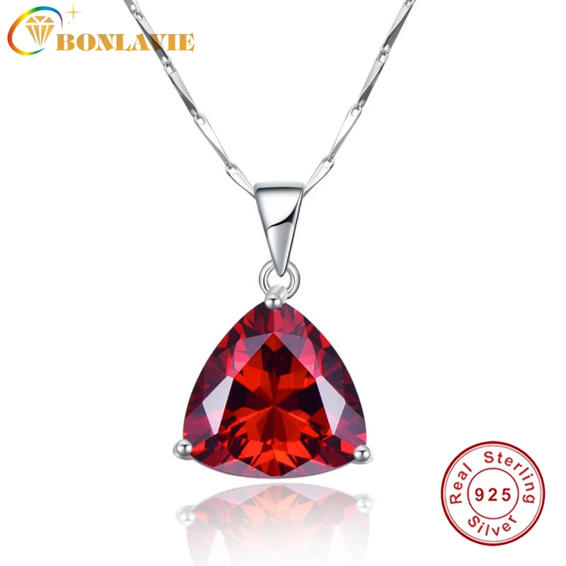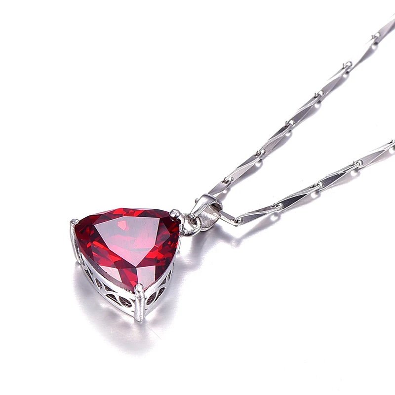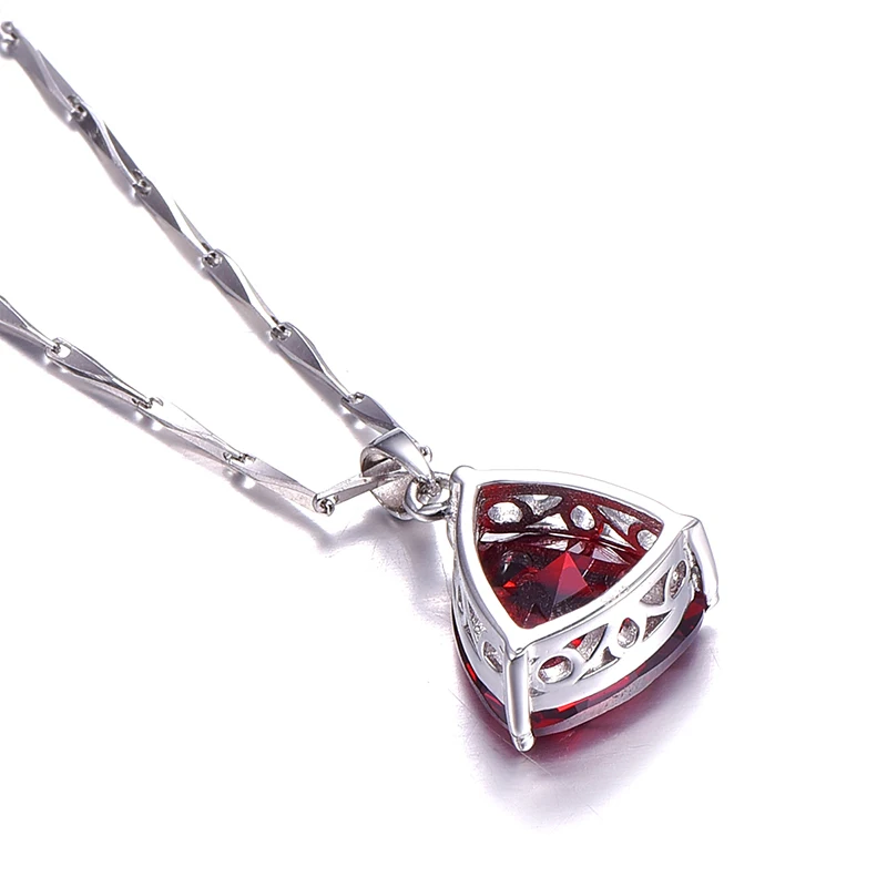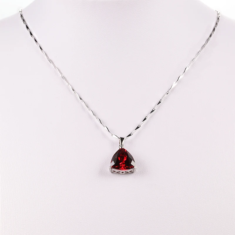Geometric Triangle Red Corundum Pendant 925 Sterling Silver Chain Mujer Necklaces&Pendants Pack With Free Gift Box