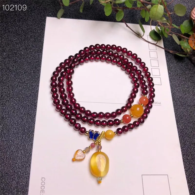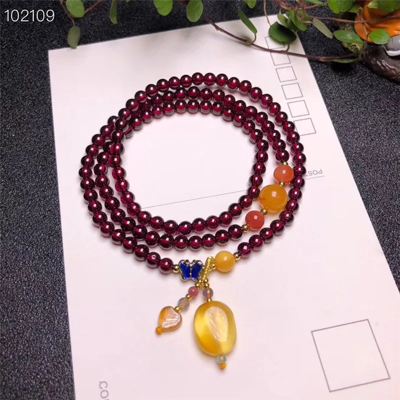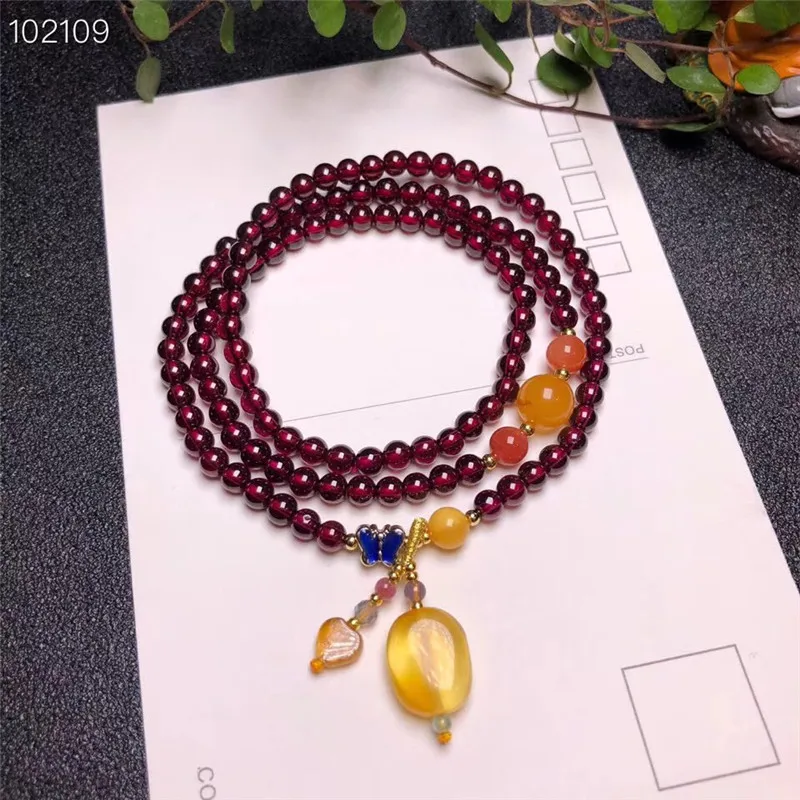 Wholesale Natural Garnet Stone Women Bracelet Fashion Jewelry with Natural amber pendant