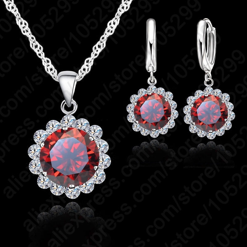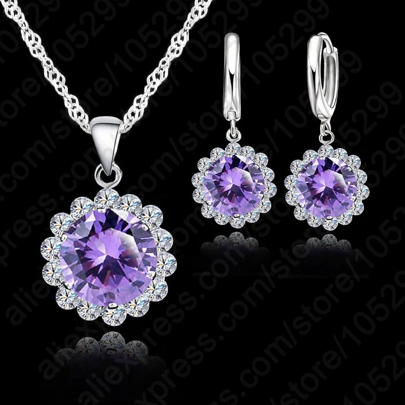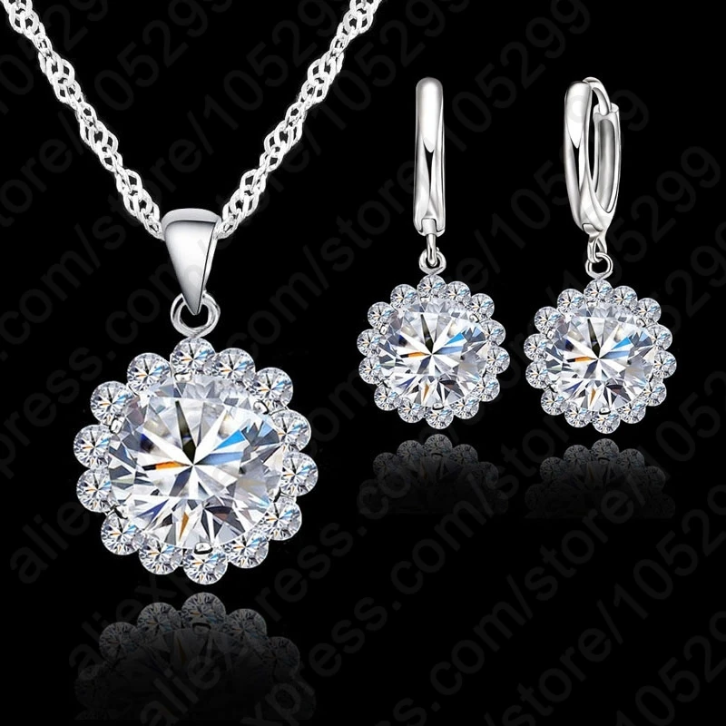 Women Wedding Jewelry Sets 925 Sterling Silver With Austrian Crystal Pendant Necklaces And Earrings Set For Brides