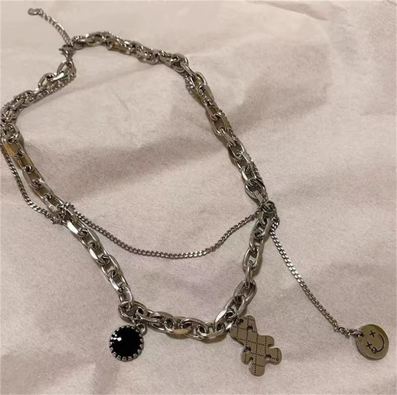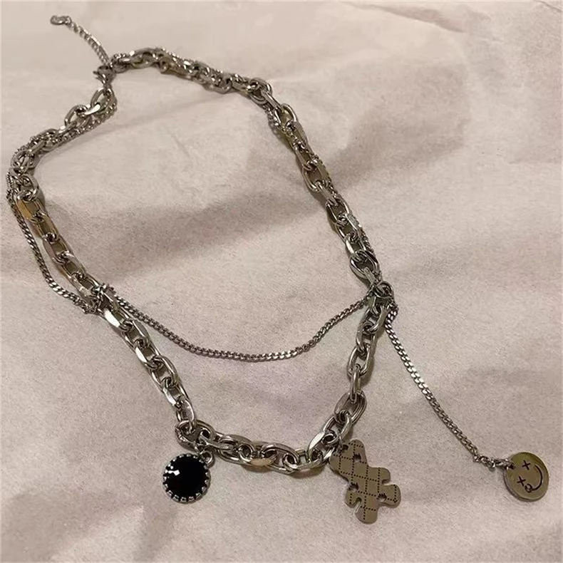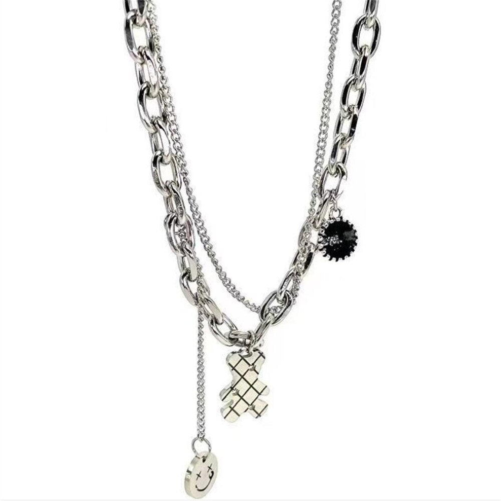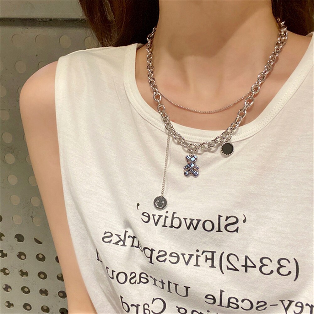 Wild Sweater Chain Simple Cute Bear Necklace For Women Ins Hip-hop Smiley Face Pendant Necklace Girl Party Jewelry Gifts