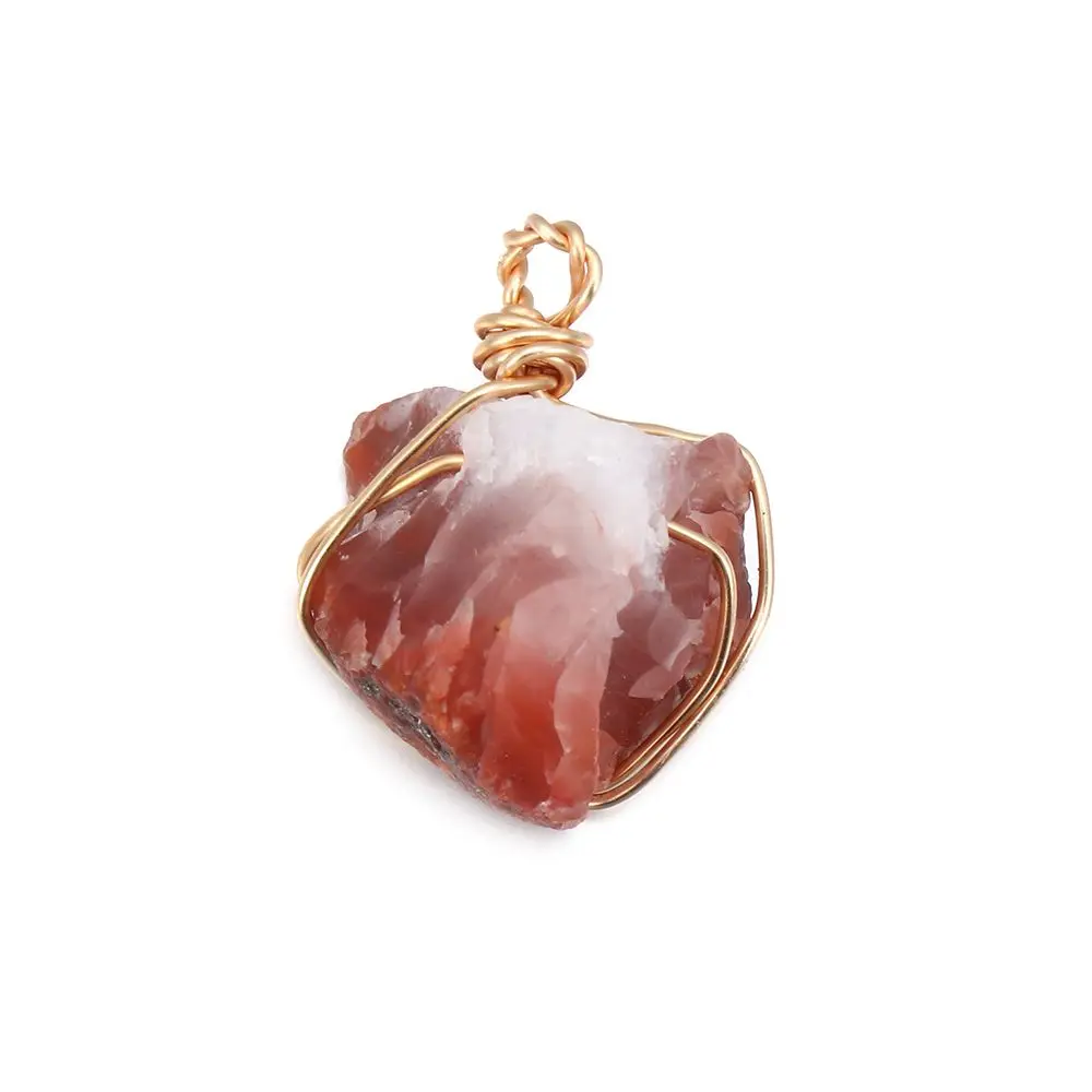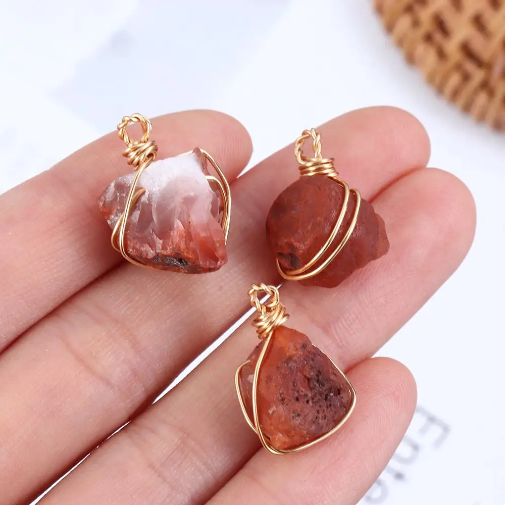 Winding Orange Crystal Natural Stone Raw Carnelian Pendant with Gold Wire Accessories Jewelry Gift for Women Men 2022New