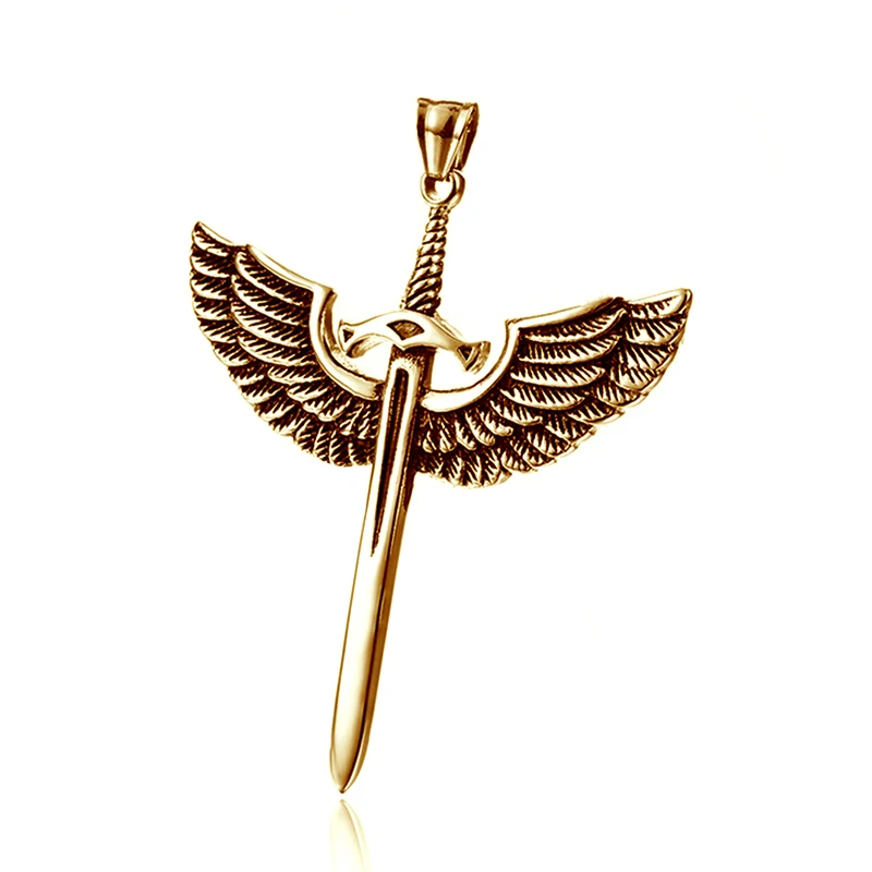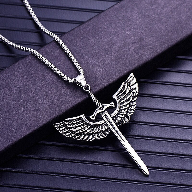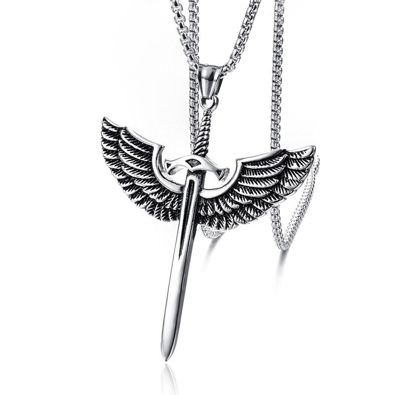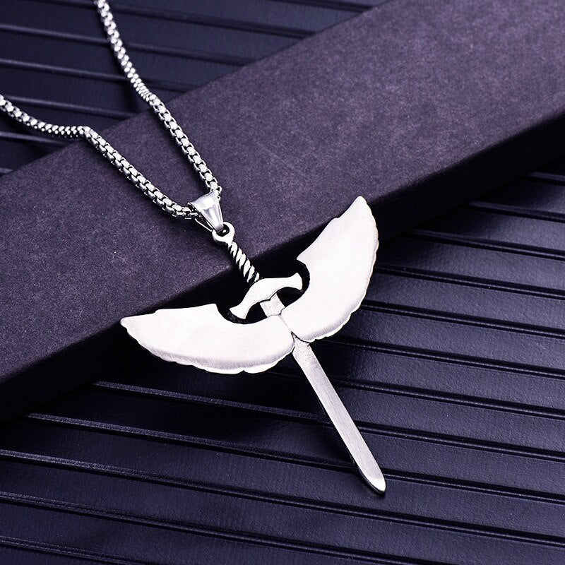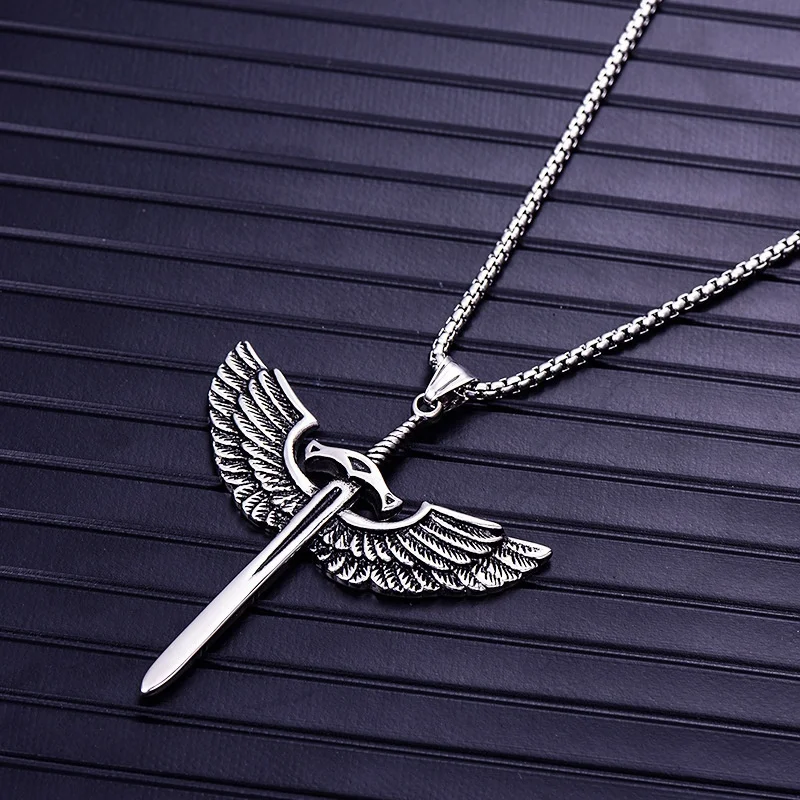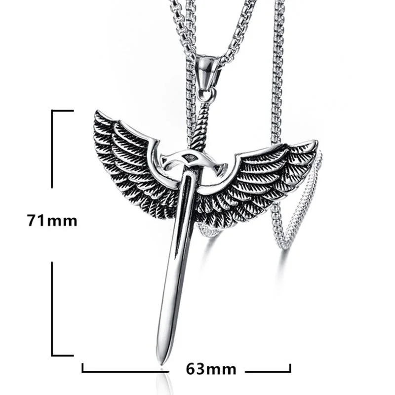 Wing Holy Sword Cross Pendant Necklace Men's Necklace Metal Retro Accessories Religious Amulet Party Jewelry