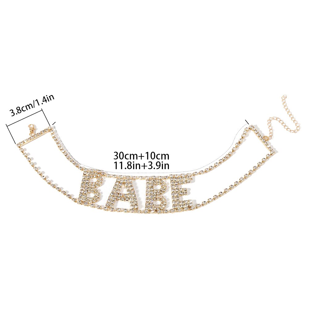 Women Babe Letter Rhinestone Inlaid Choker Necklace Night Club Jewelry