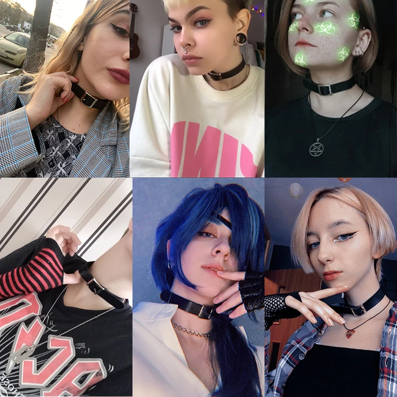 Women Black Punk Choker Collar Necklace Pu Leather Goth Belt Choker Necklace Pendientes Party Club Sexy Gothic Femme Jewelry