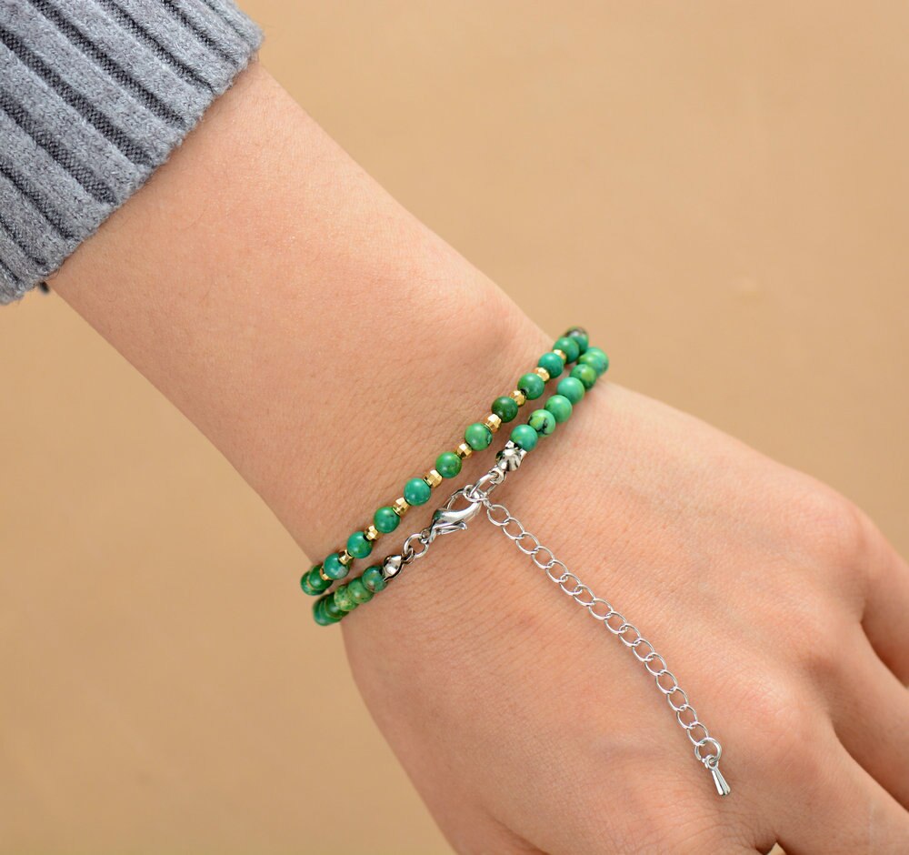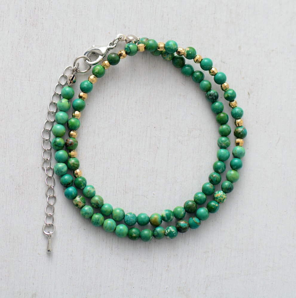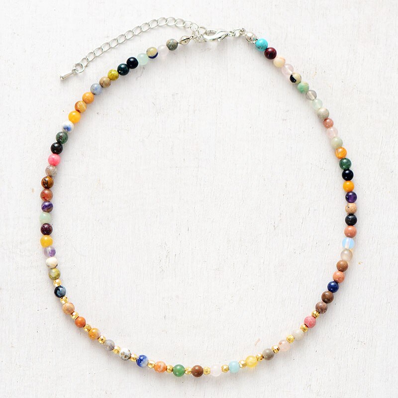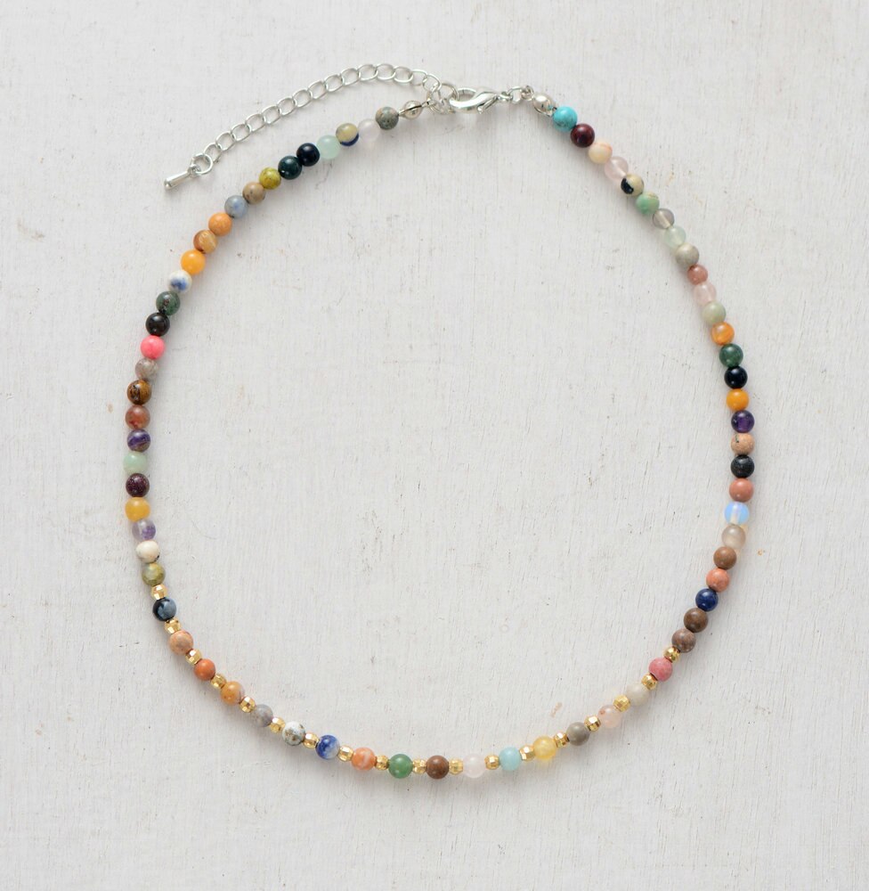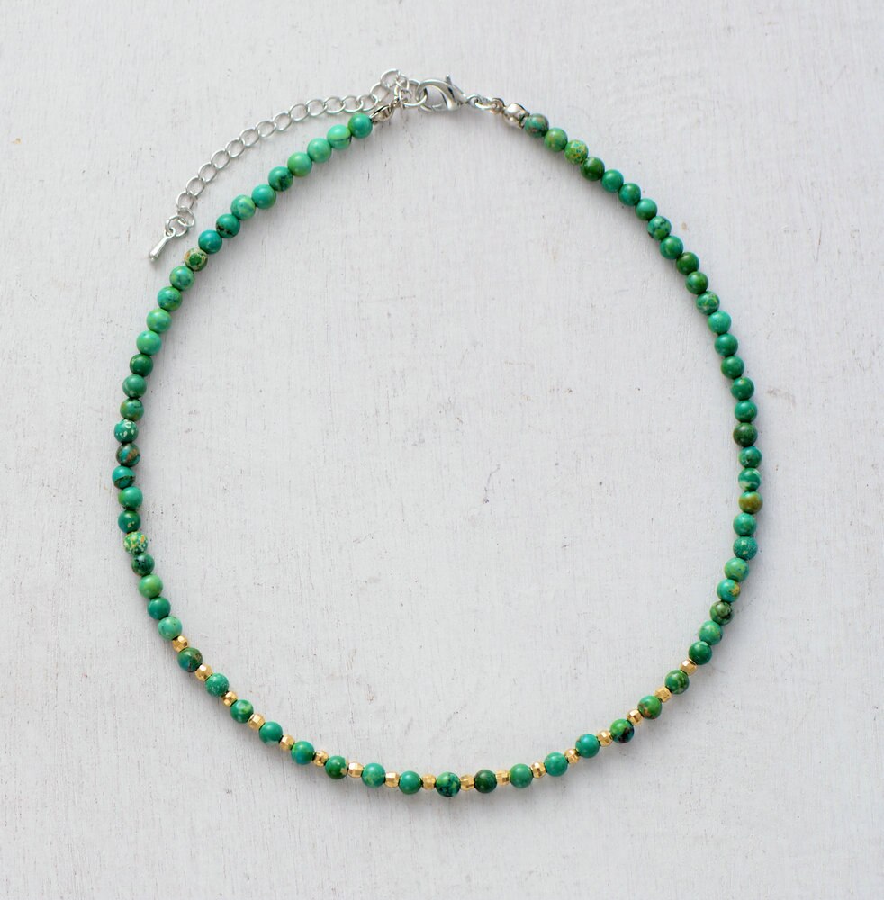 Women Choker 4MM Natural Stone Gold Beads Choker Necklace Teen Girls Simple Collar Necklace Neck Choker Bohemia Jewelry