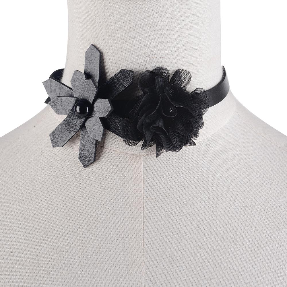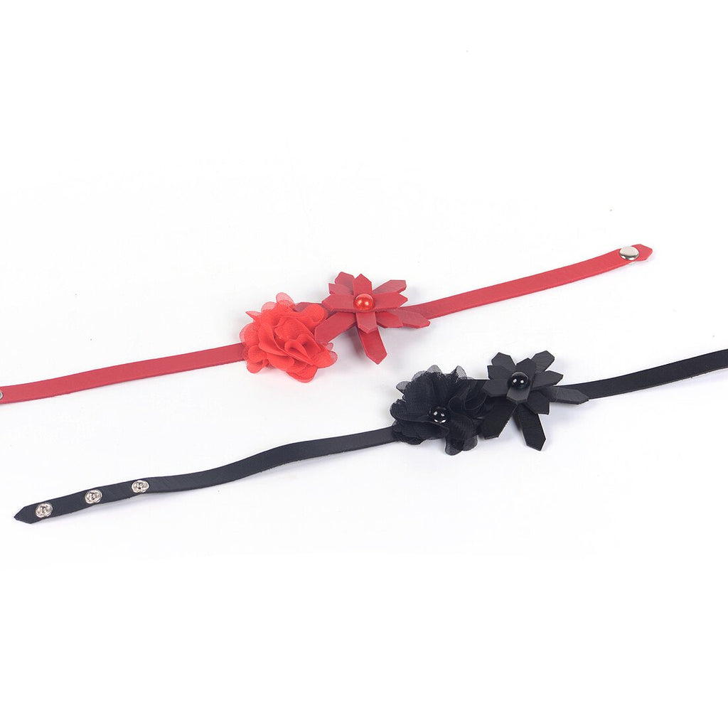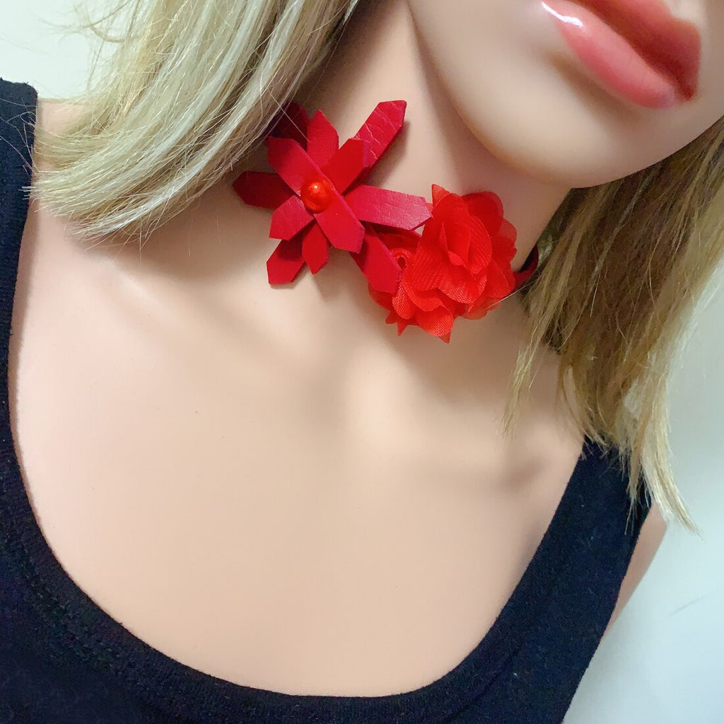 Women Handmade Leather Flower Punk Collar Choker Necklace Punk Jewelry Accessory Red/Black