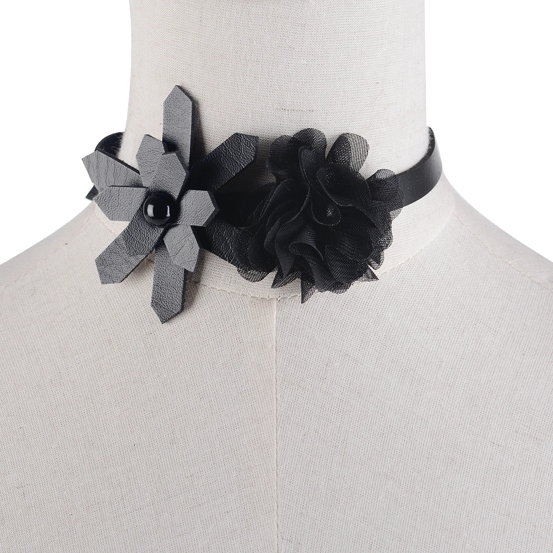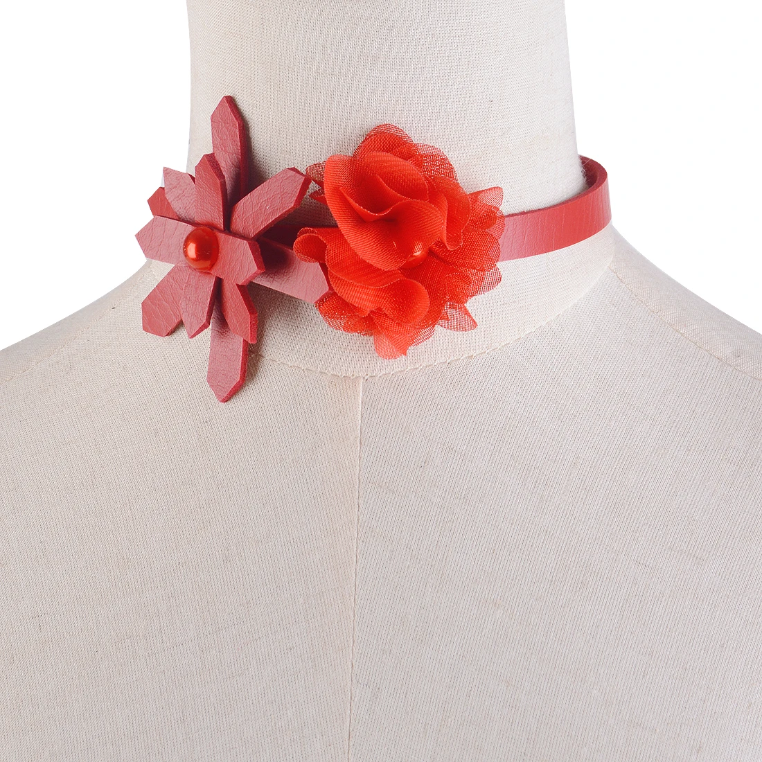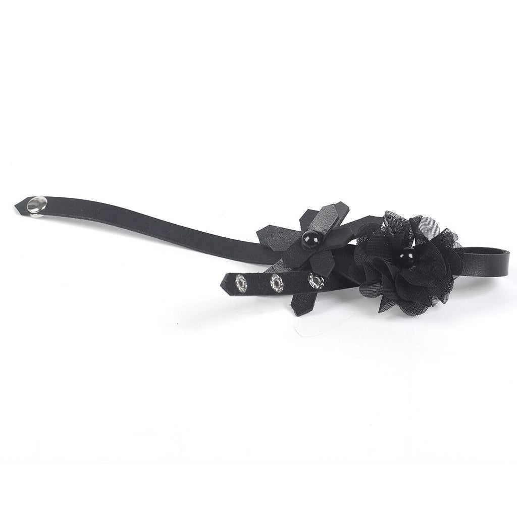 Women Handmade Leather Flower Punk Collar Choker Necklace Punk Jewelry Accessory Red/Black