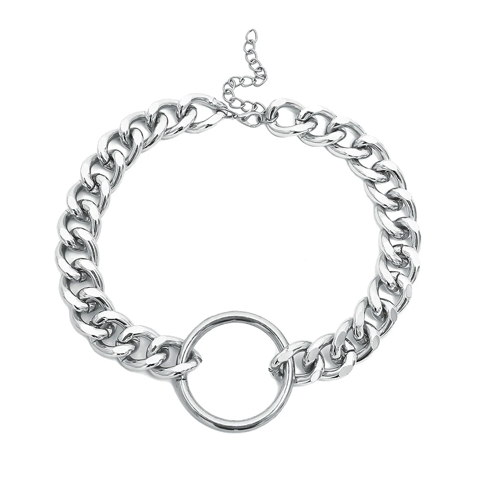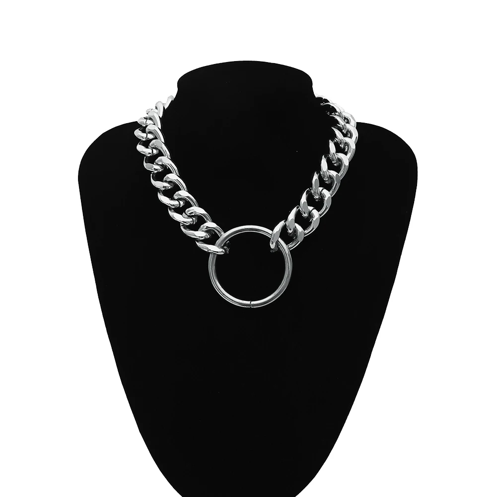 Women Hip Hop Circle Pendant Thick Chain Choker Necklace Jewelry Year Gift