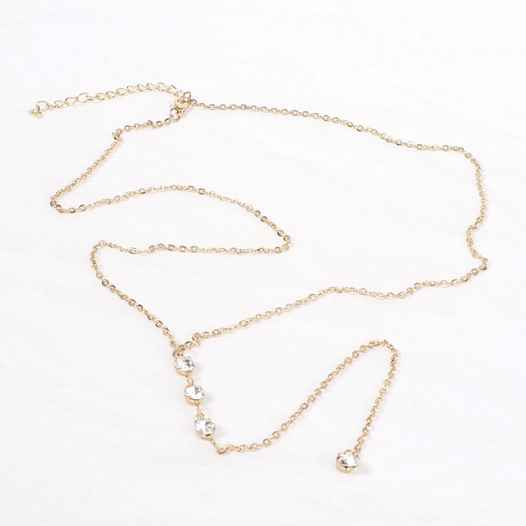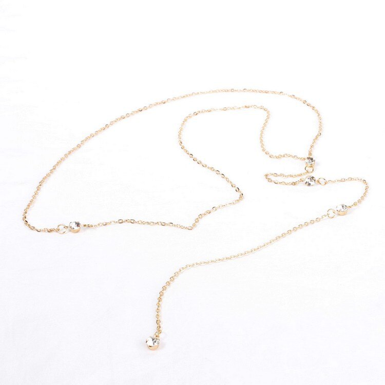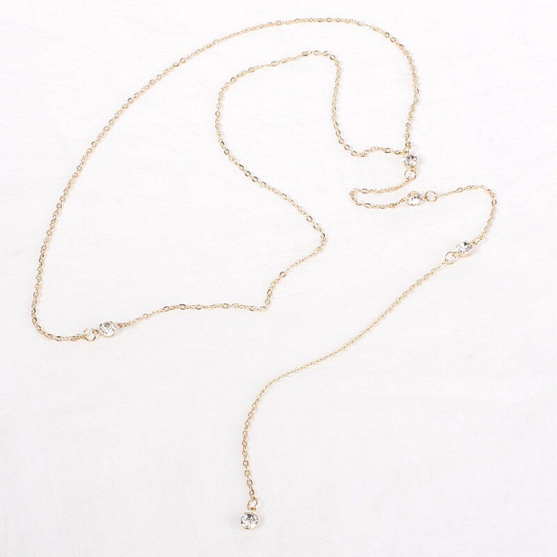 Women Long Necklace Body Sexy Chain Bare Back Gold crystal Rhinestone Pendant Chain Necklace Backdrop Beach Body Jewelry