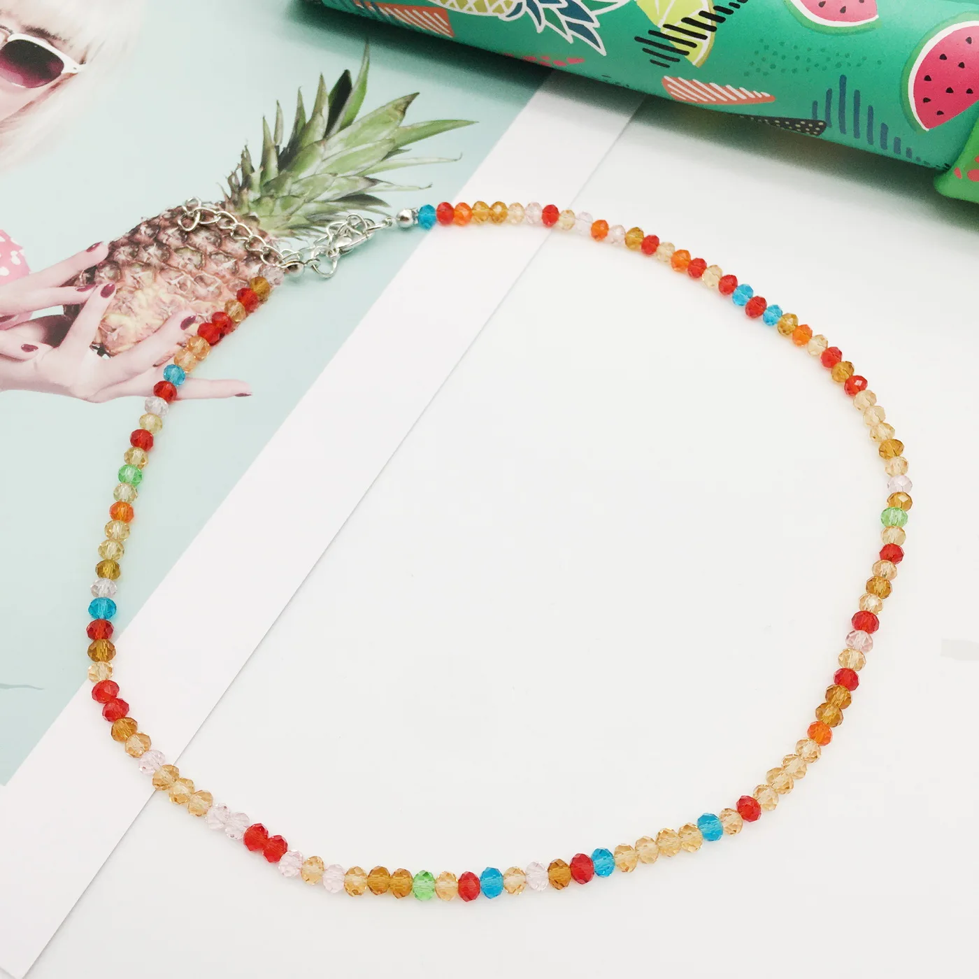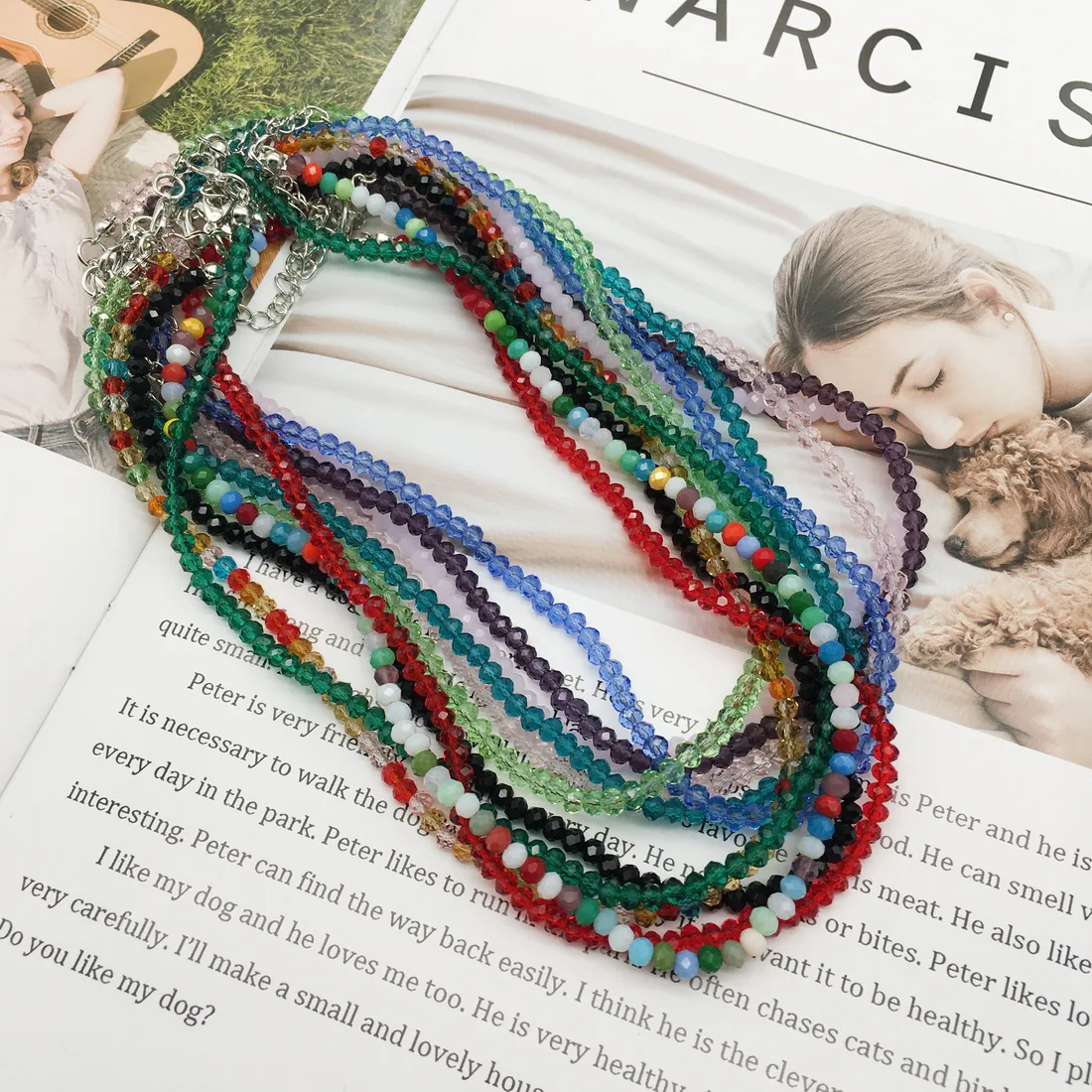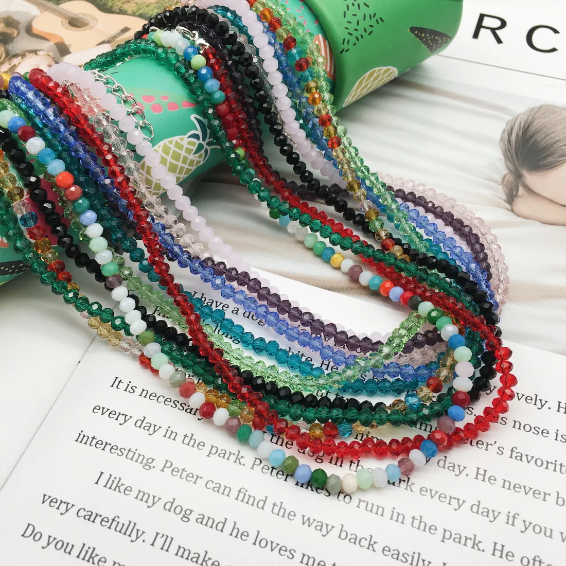 women necklace 2021 3x4 crystal beads strand shinny choker necklace women lots colors necklace jewelry