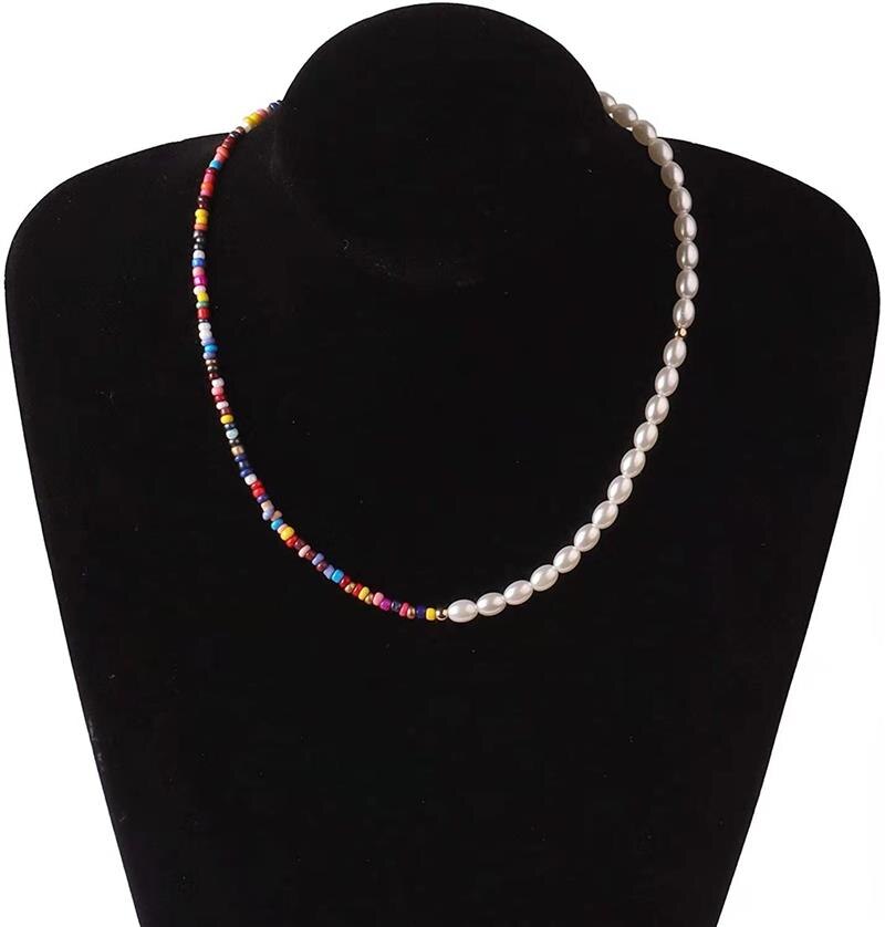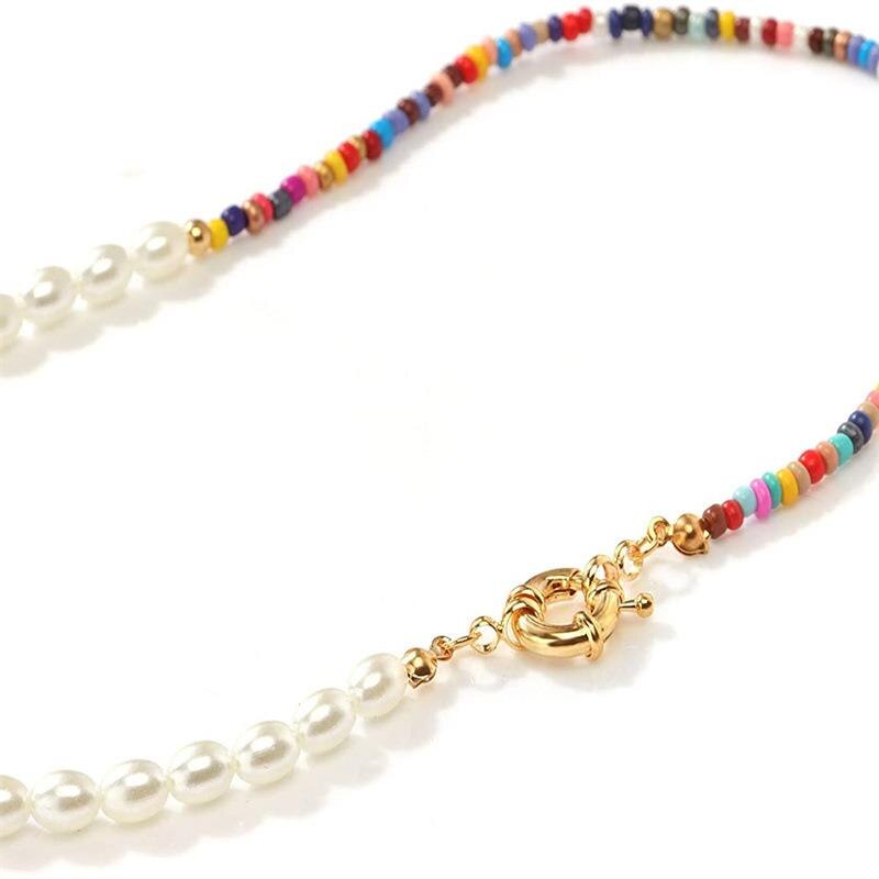 Women Necklace Creative Acrylic Resin Half Beads and Half Pearl Bohemia Sweet Girl Necklace Summer Jewelry Gift