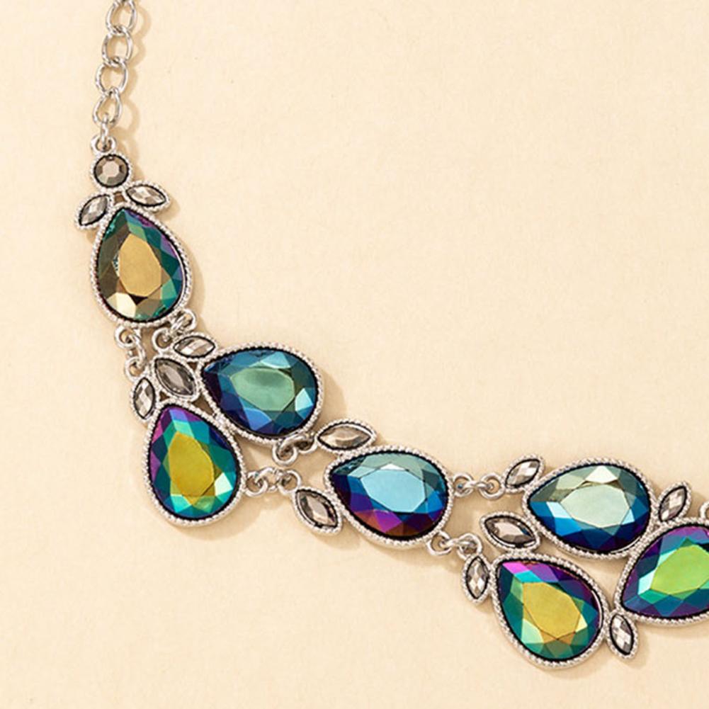 Women Necklace Dress Up Safe Single Layer Bright Color Faux Crystal Necklace Chain Choker Necklace Choker Necklace