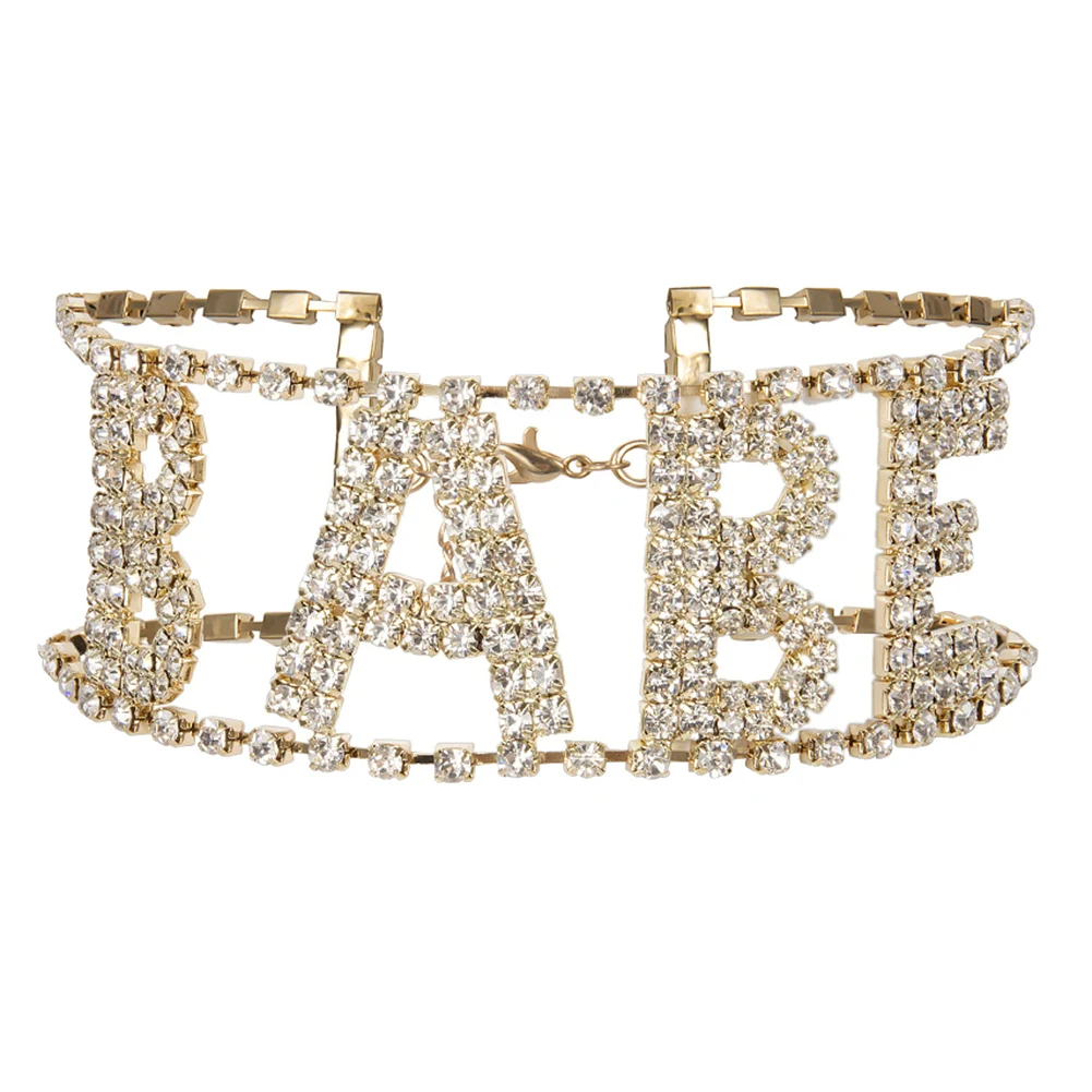 Women Necklaces Babe Letter Crystal Rhinestone Inlaid Choker Necklace