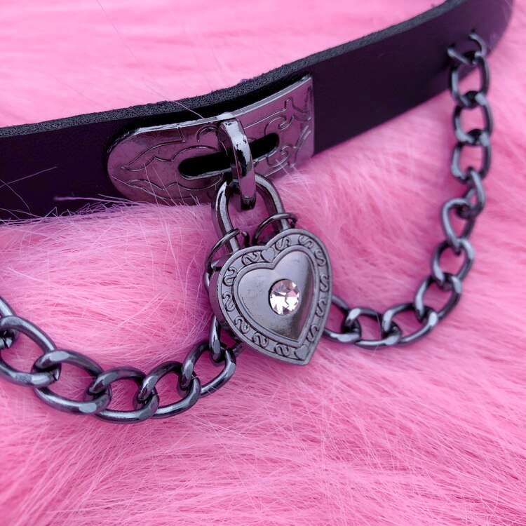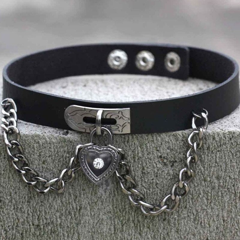 Women Punk Rock Gothic PU Leather Heart Necklace Spike Rivet Collar Studded Choker Necklace Body Jewelry Cosplay Party Gift