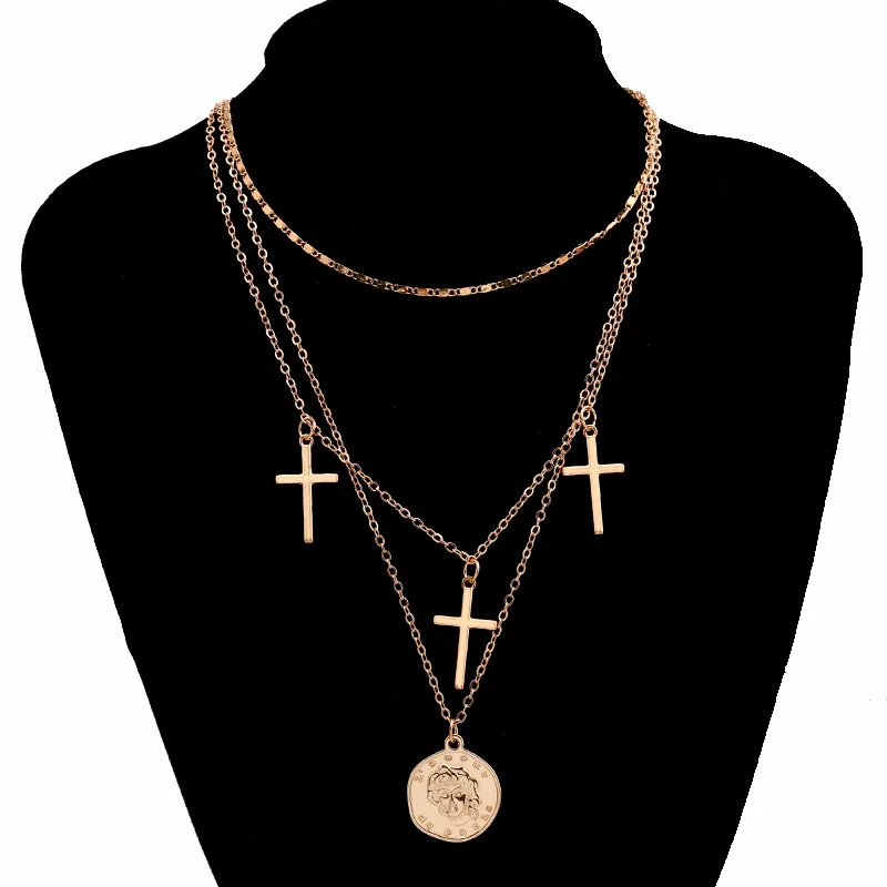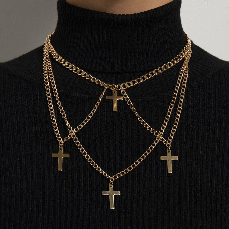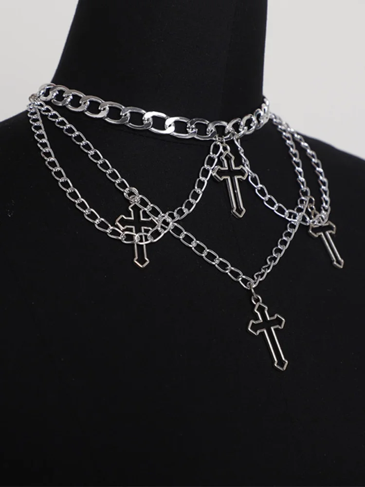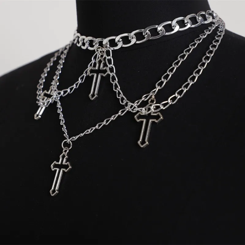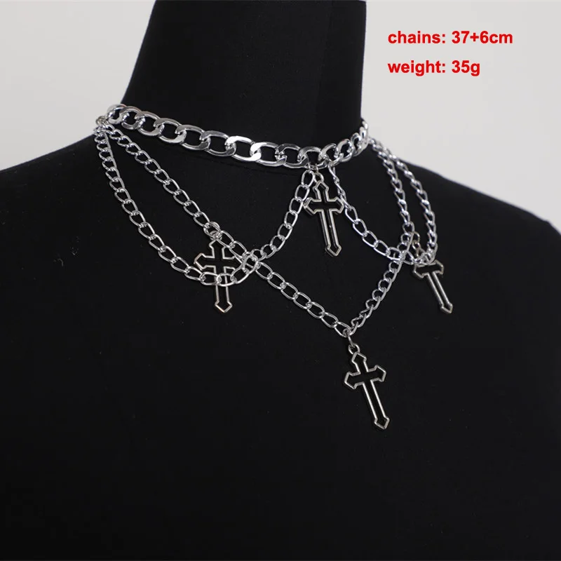 Women's Gothic Cross Pendant Choker Chains Necklace, Hip Hop Gypsy Club Accessories Jewelry