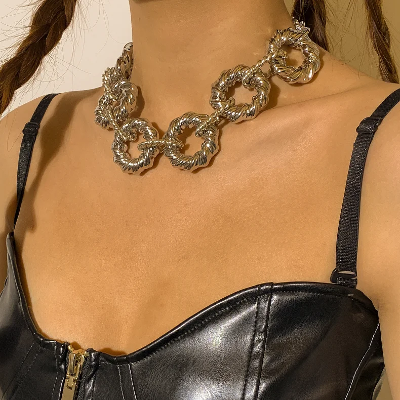Women's high exaggerated necklace unique gold necklace famous brand twisted lock necklace women jewelry