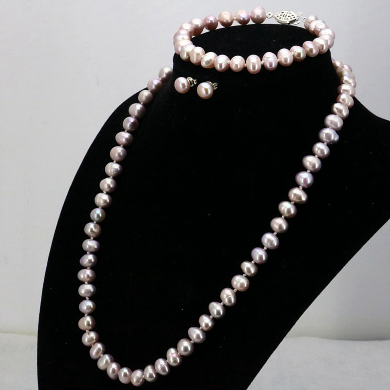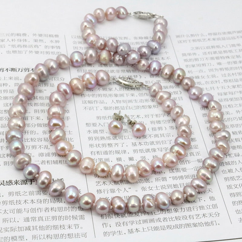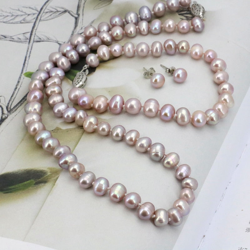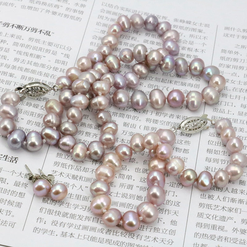 WUBIANLU Purpel Pearl Necklace Sets Fish Clasp 7-8mm Necklace 18 Inch Bracelet 7.5 Inch Earring Women Jewelry Making Design