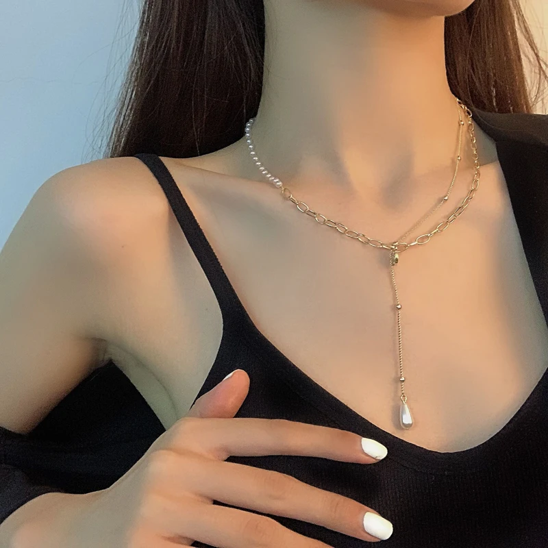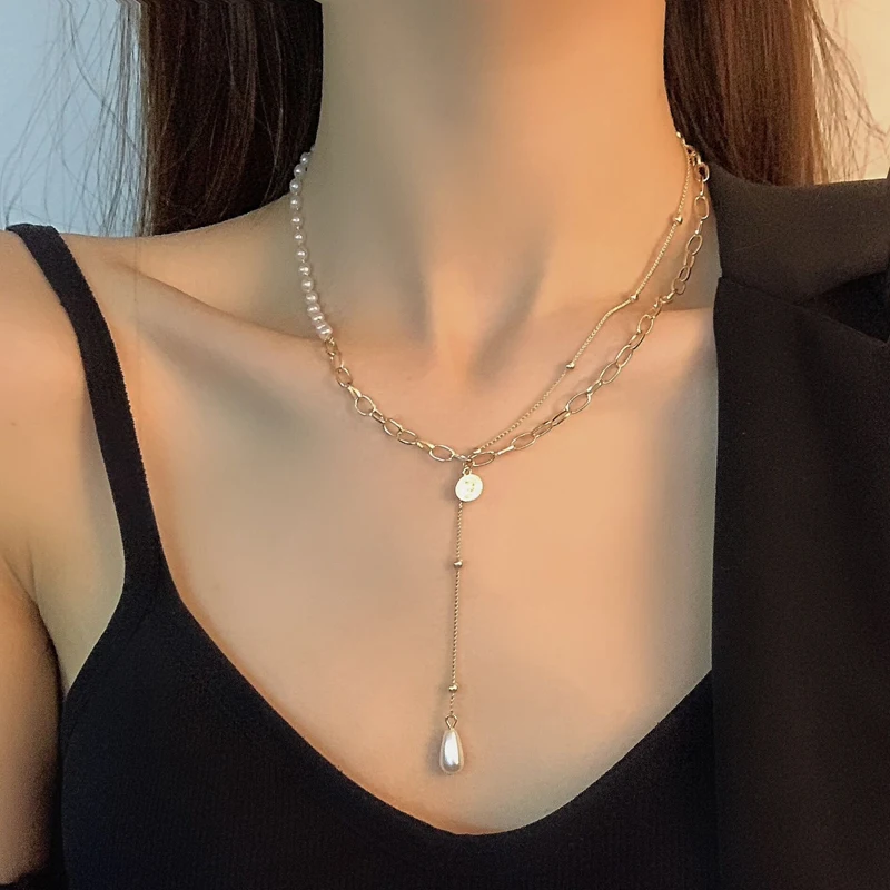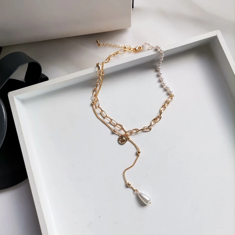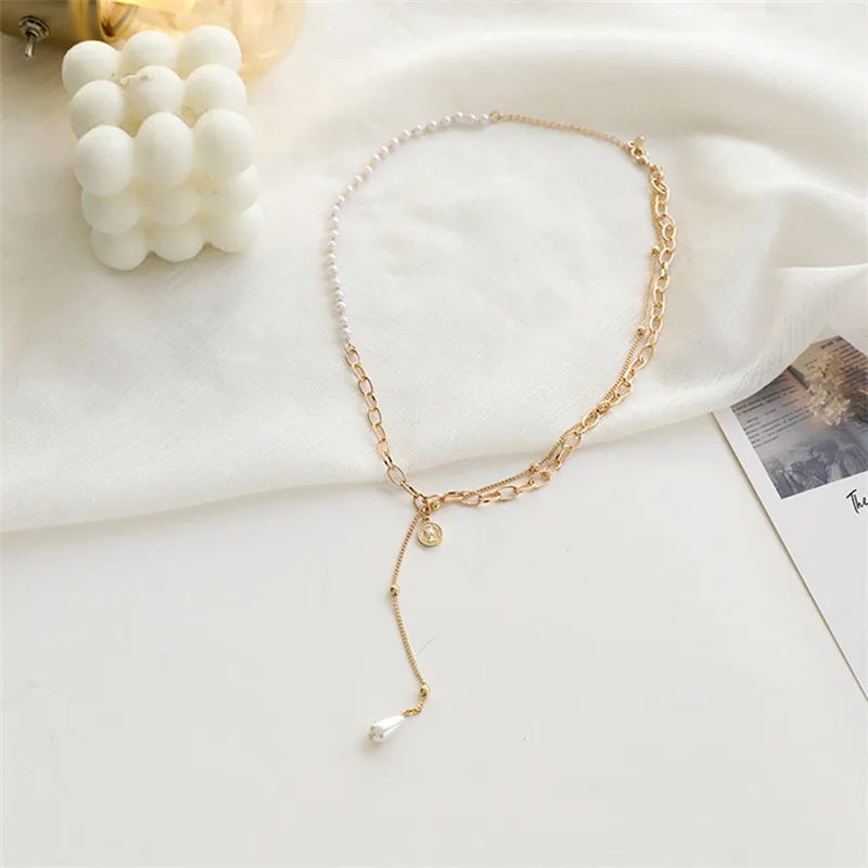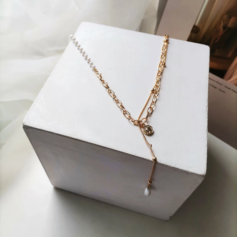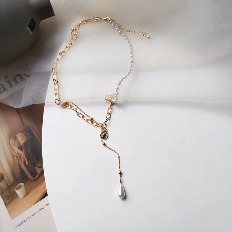 XIALUOKE Japan Asymmetric Double Chain Pearl Pendant Necklace For Women Bohemia Long Sweater Necklaces Jewelry Gift 870