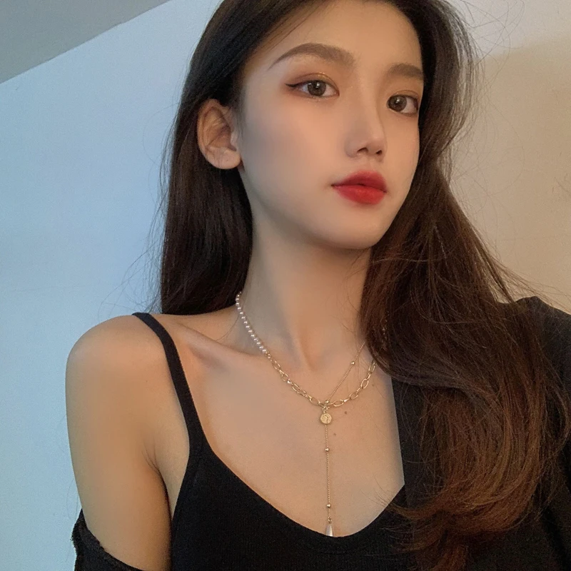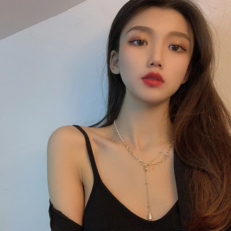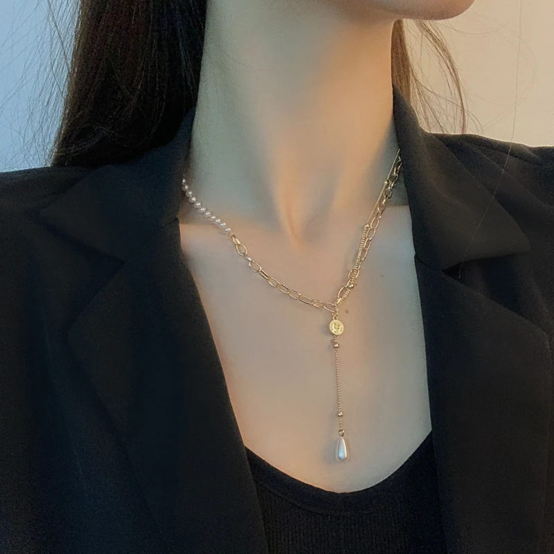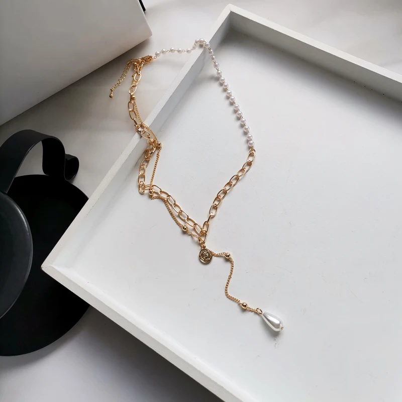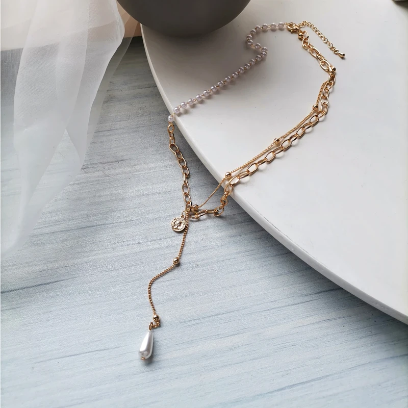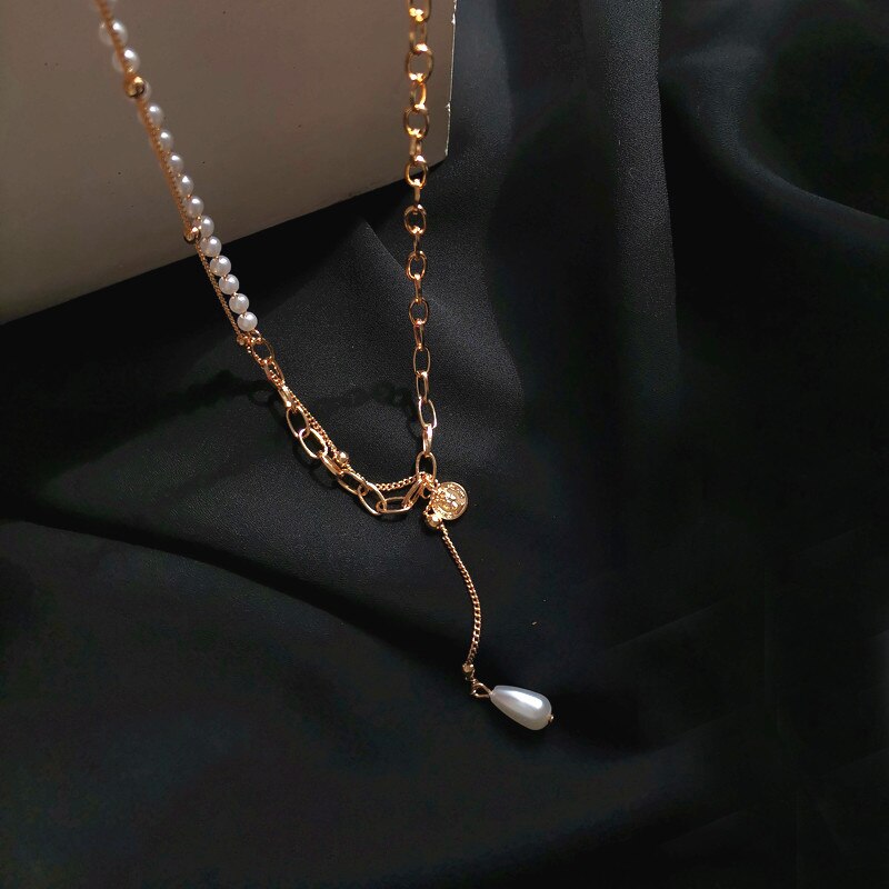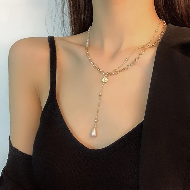 XIALUOKE Japan Asymmetric Double Chain Pearl Pendant Necklace For Women Bohemia Long Sweater Necklaces Jewelry Gift 870