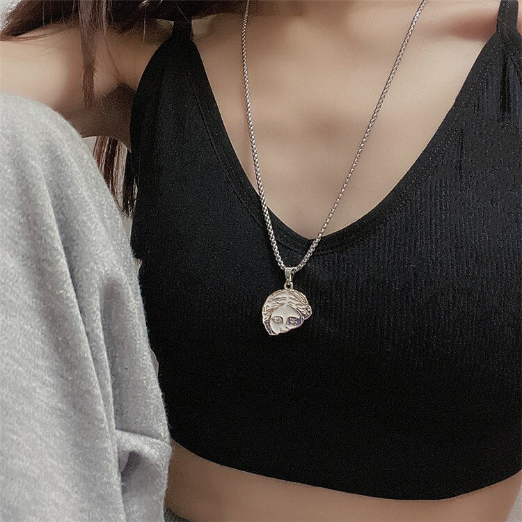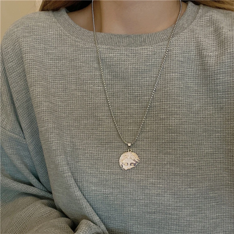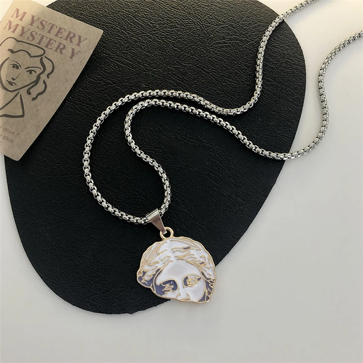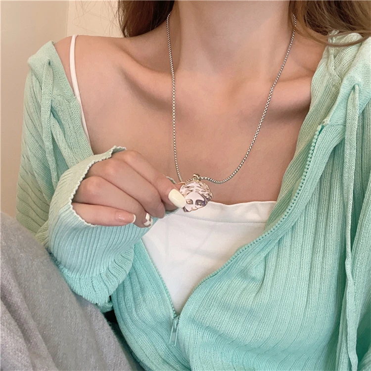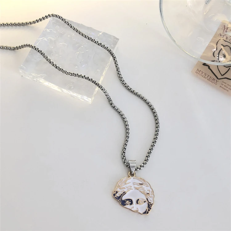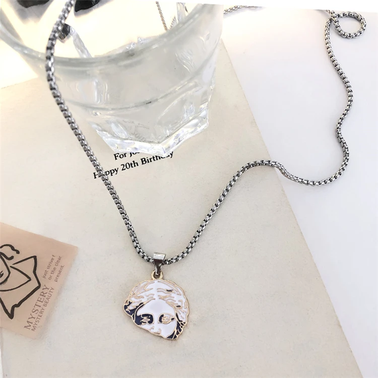 XIALUOKE Retro Long Enamel Glaze Portrait Pendant Necklace For Women Contracted Personality Sweater Chain Necklaces Jewelry