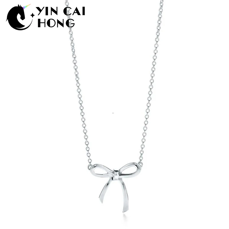 YCH Charm Gift 925 Sterling Silver Bow TIFF Attractive Elegance Temperament Necklace World Jewelry