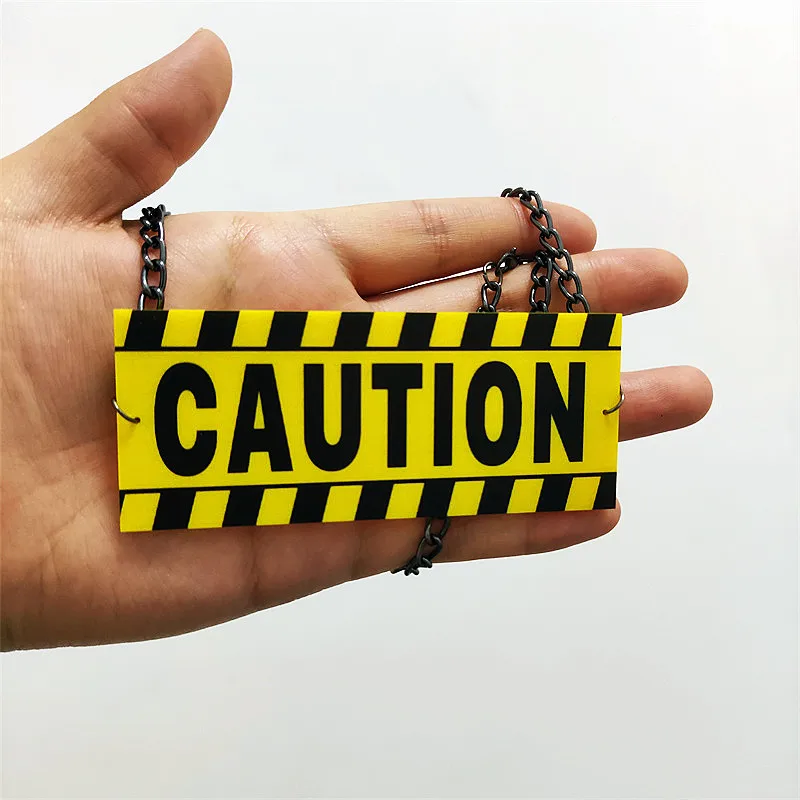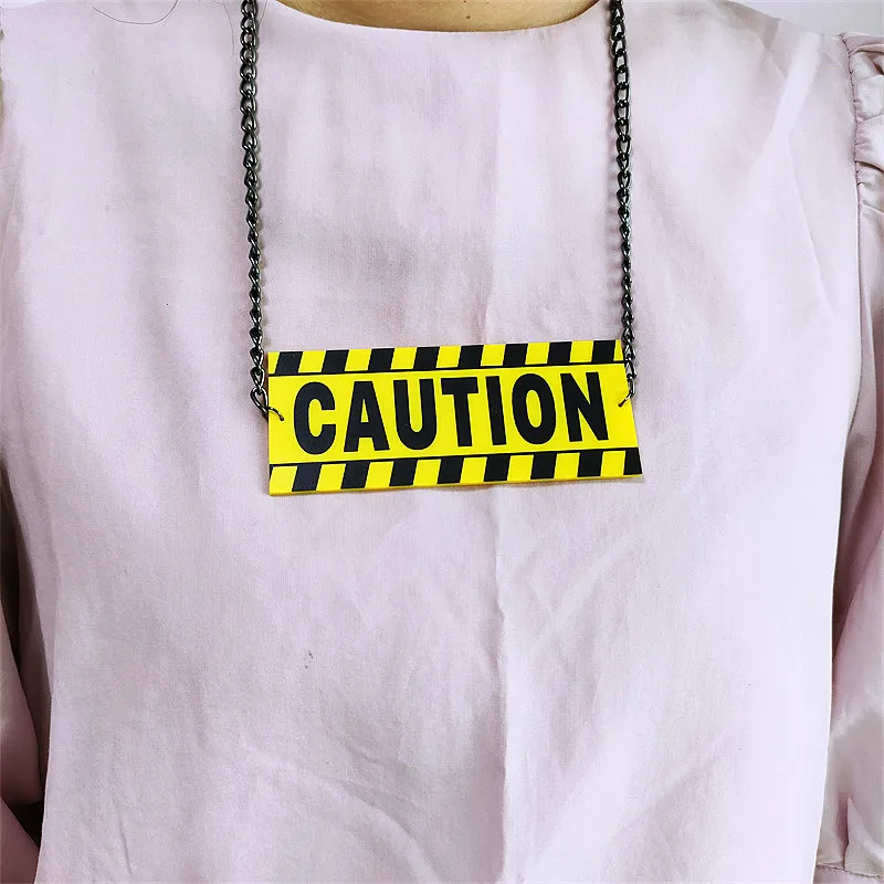 Yellow Caution Card Pendant Necklace for Women Men Acrylic Letter Stripe HipHop Rock Gift Jewelry Accessories