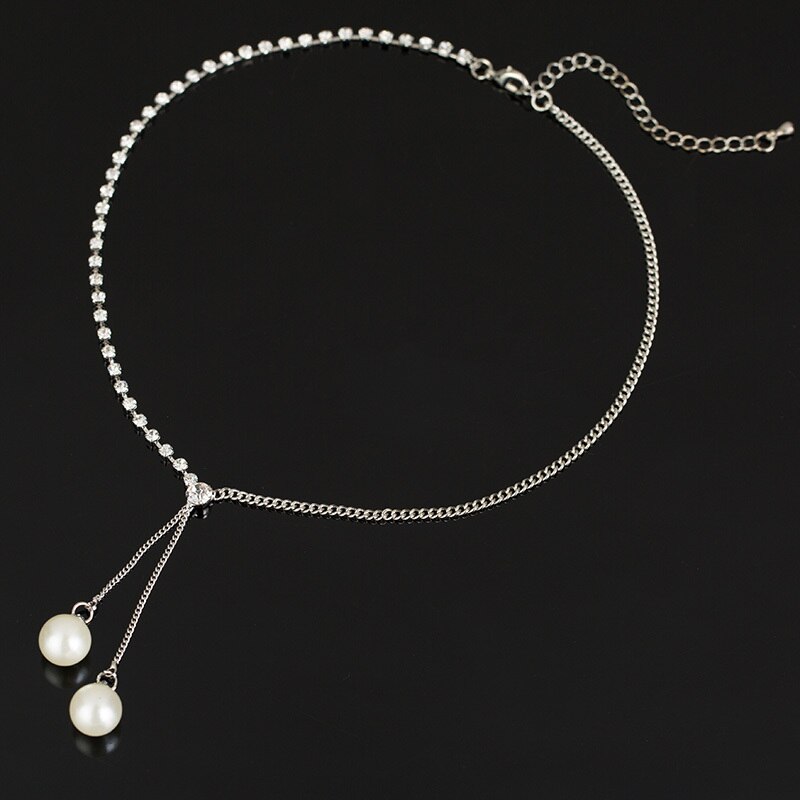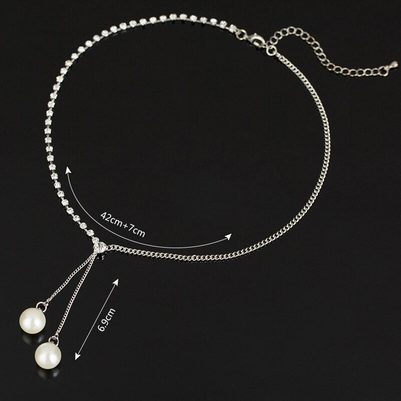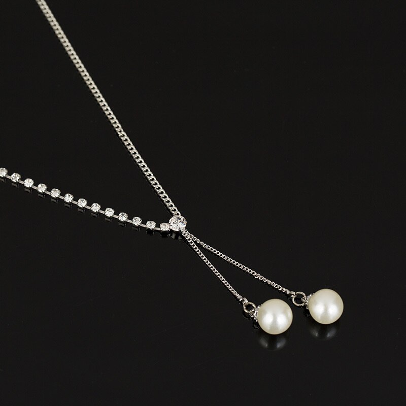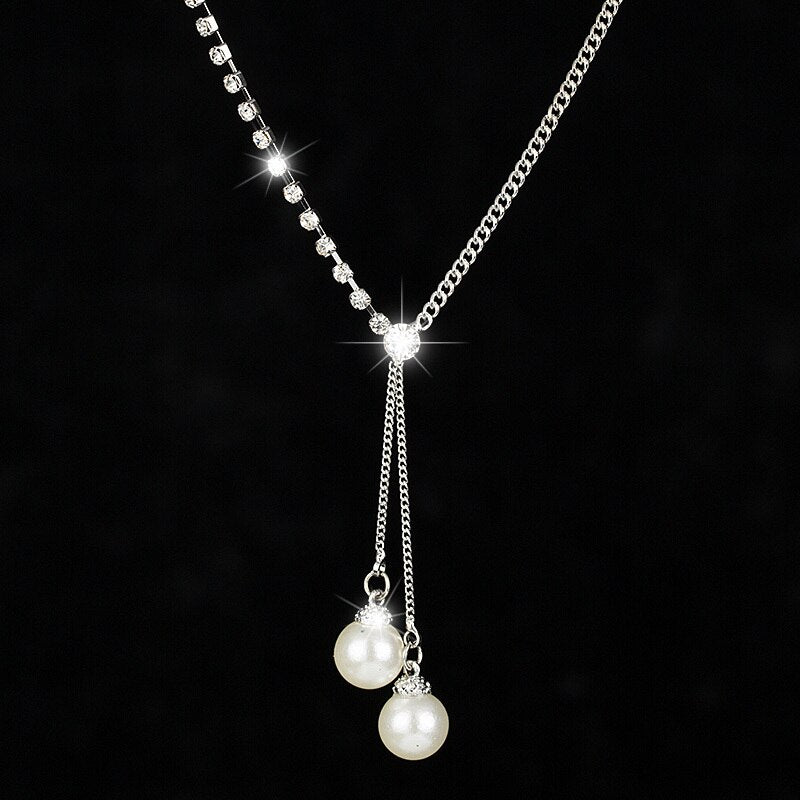 YFJEWE Elegant pearl Pendant Necklace sliver Plated Chain Necklace Austrian Crystal Pearl Necklace For Women #N098