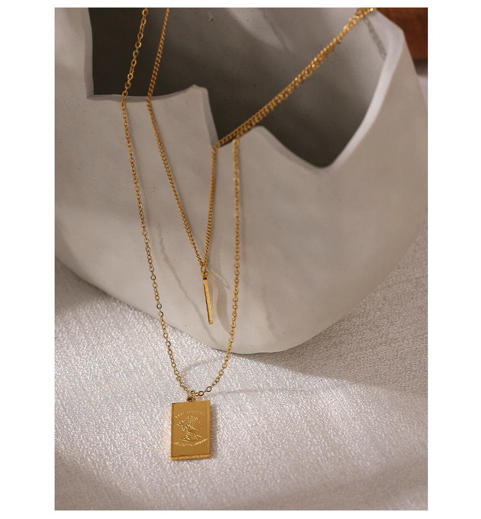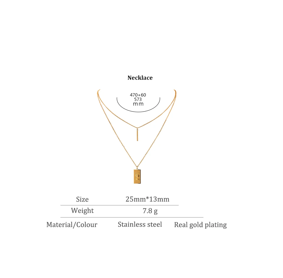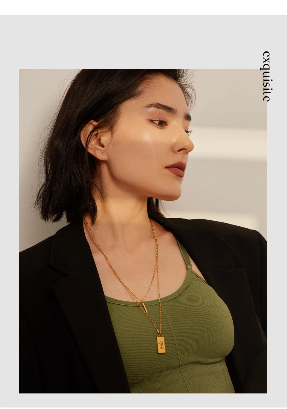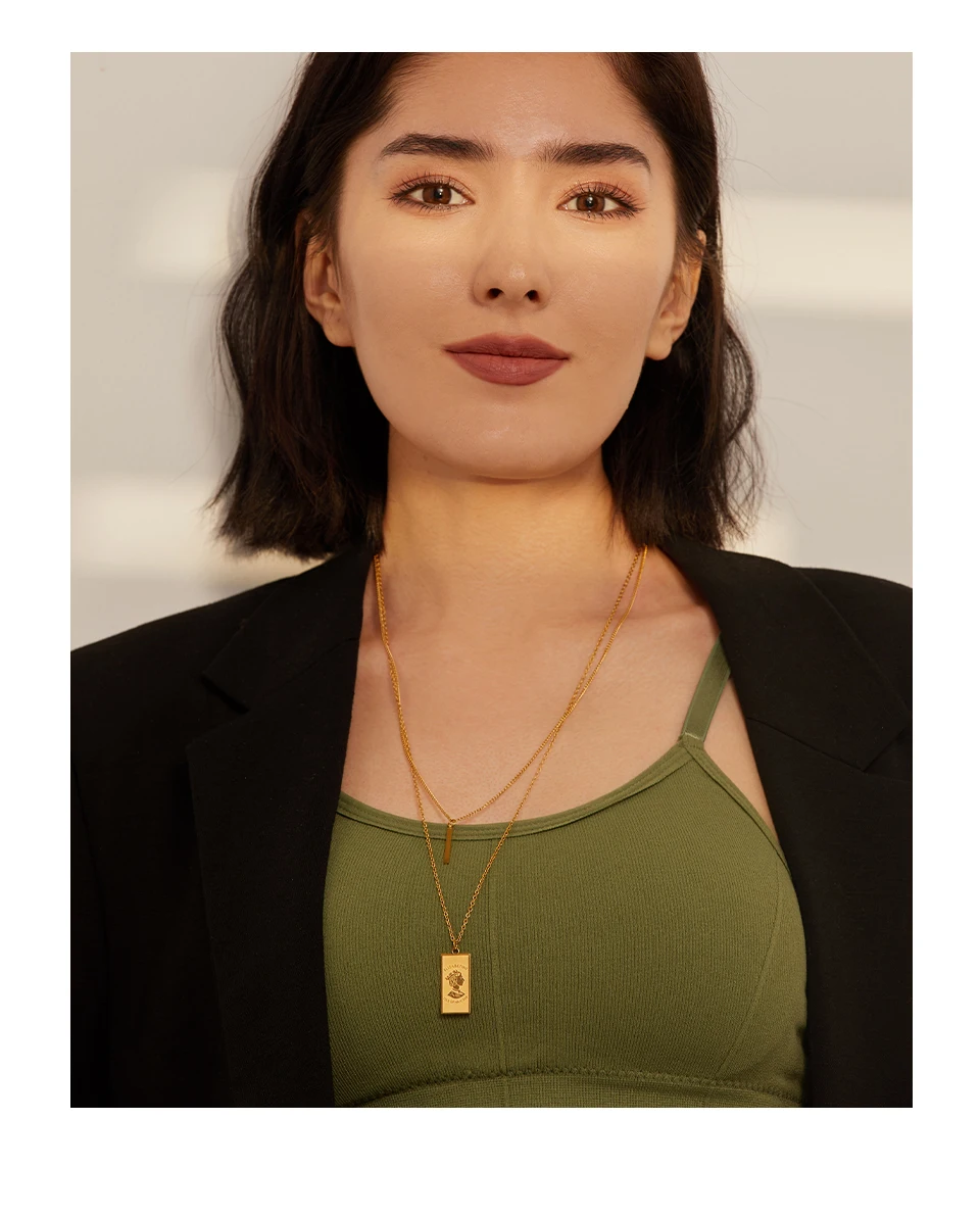 Yhpup Fine Chain Geometric Pendant Portrait Necklace Stainless Steel 18 K Jewelry Trendy Square Chain Collar Necklace