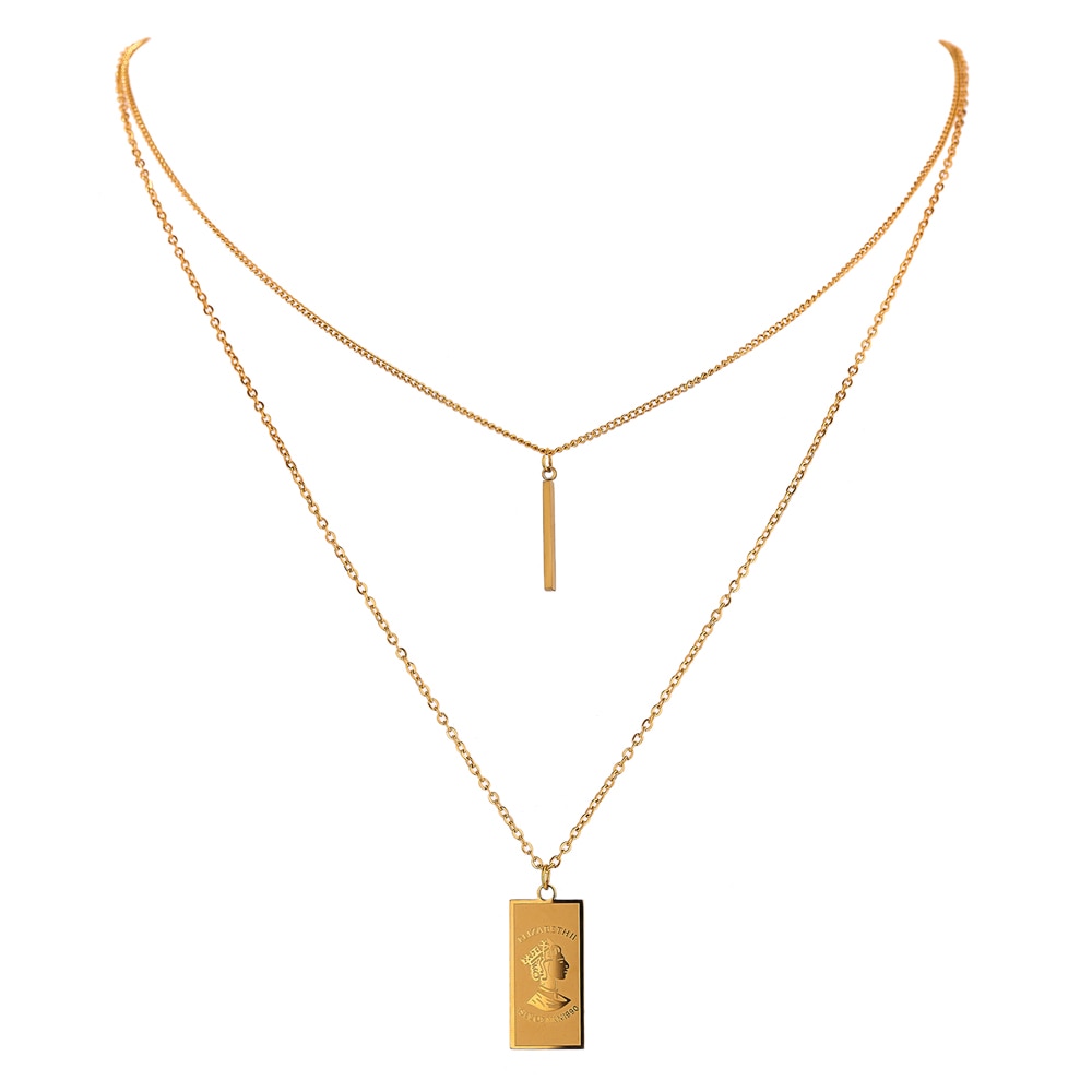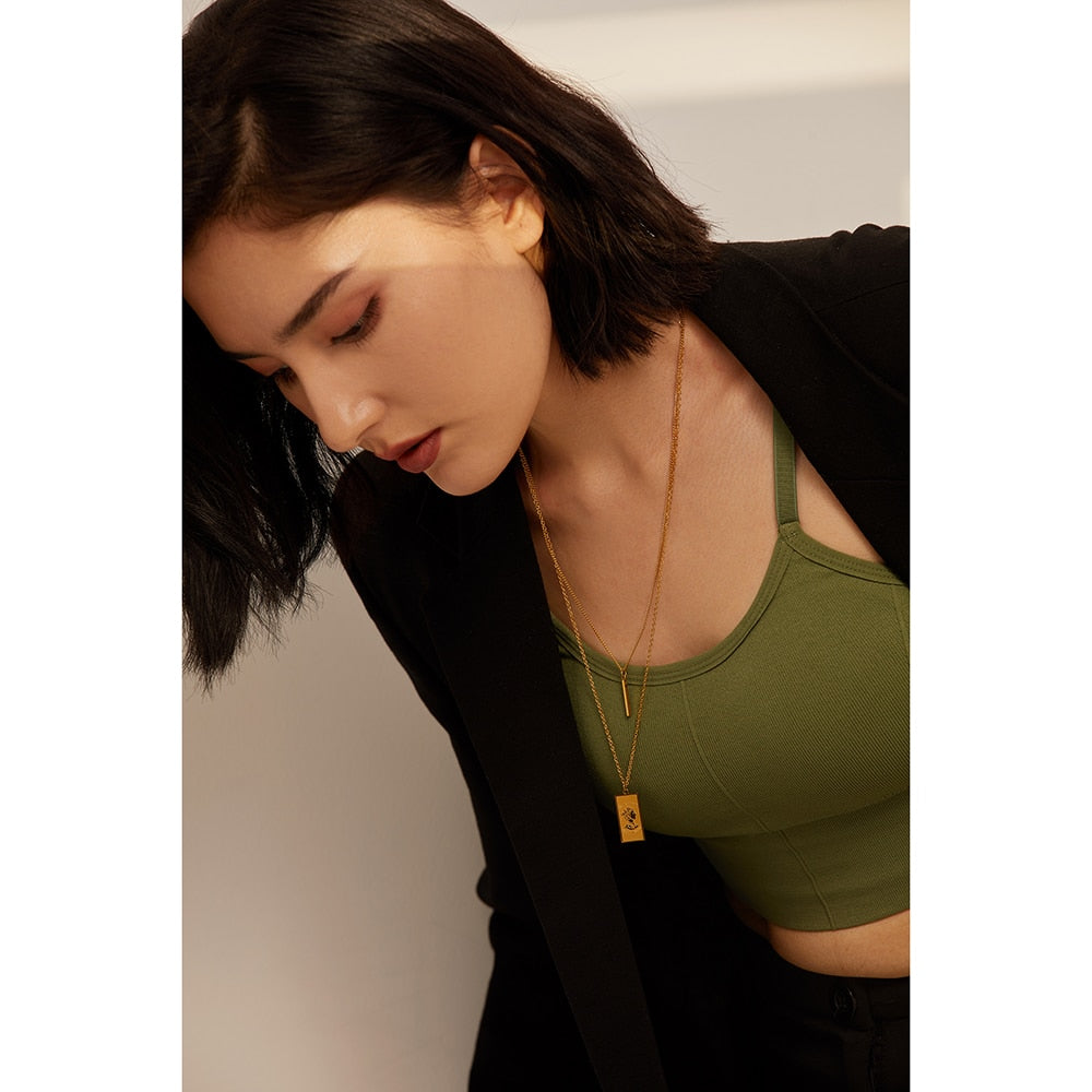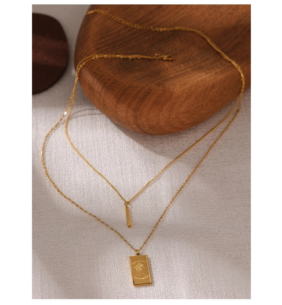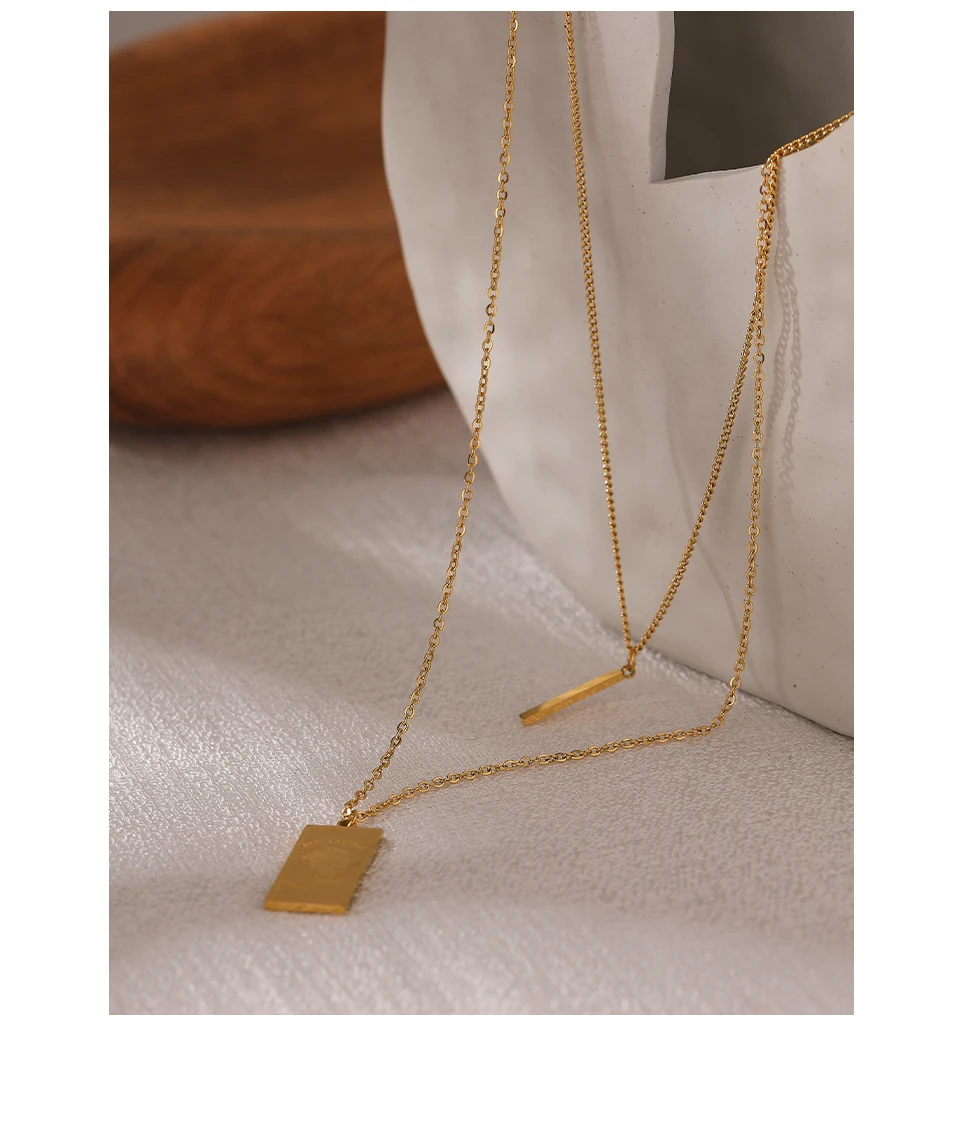 Yhpup Fine Chain Geometric Pendant Portrait Necklace Stainless Steel 18 K Jewelry Trendy Square Chain Collar Necklace