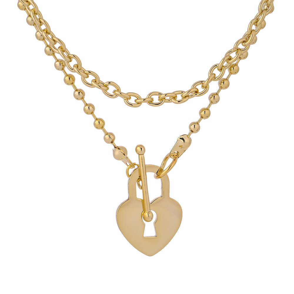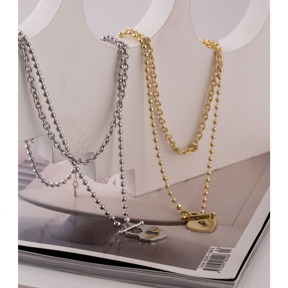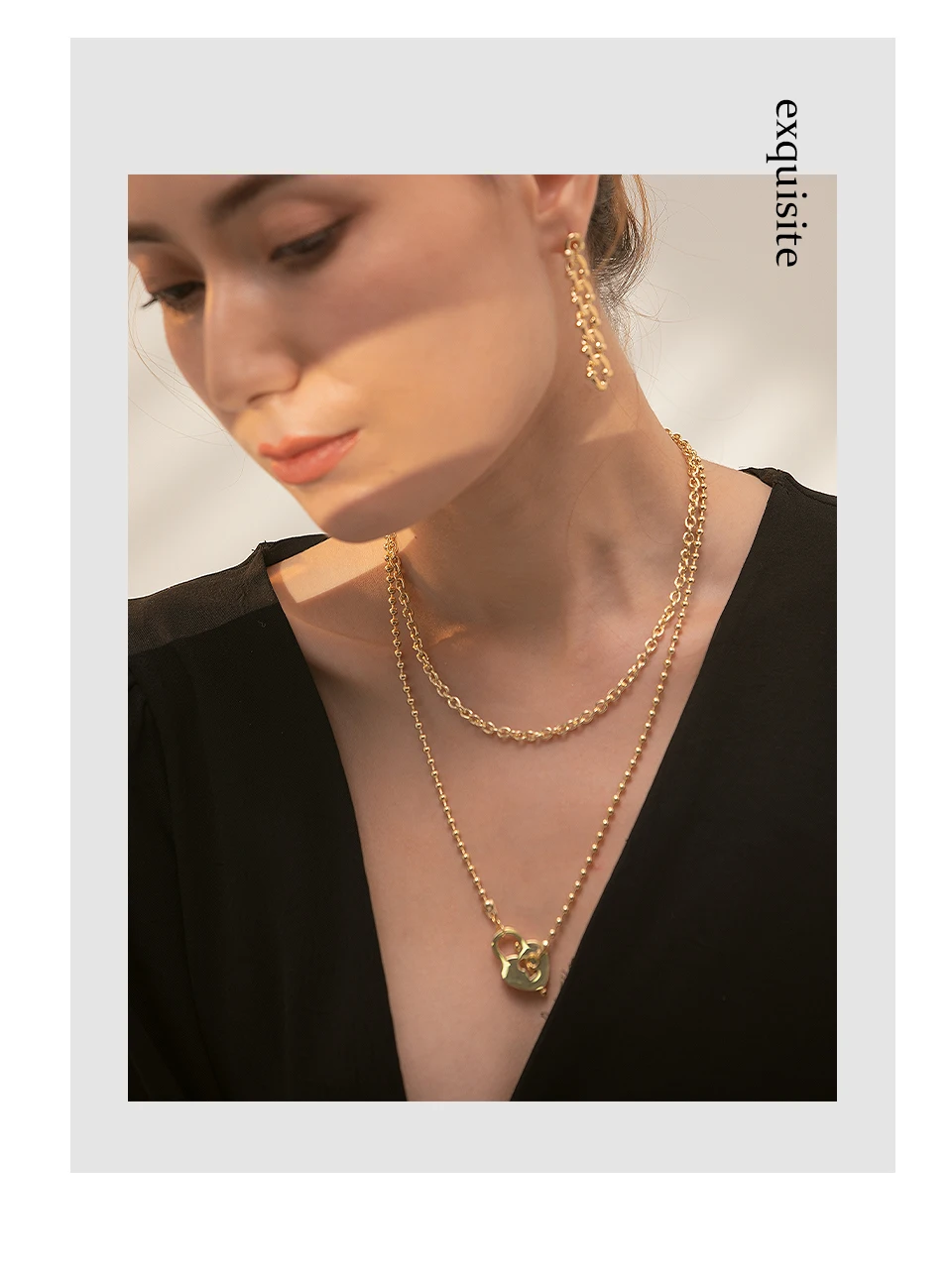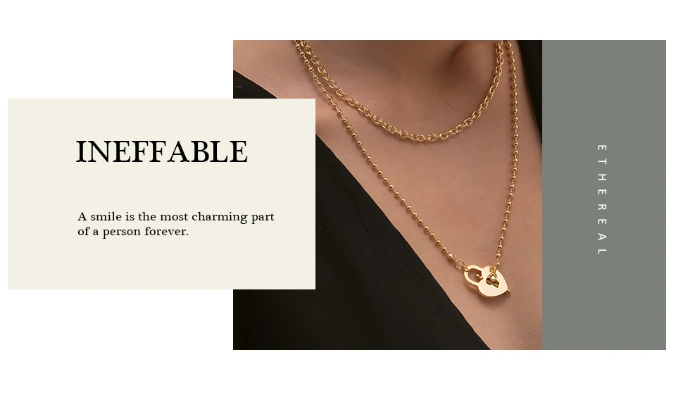 Yhpup Heart Lock Layered Pendant Necklace Trendy Golden Metal Texture Copper Choker Necklace for Women ожерелье 2022