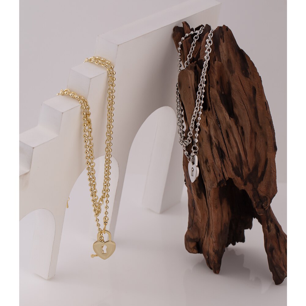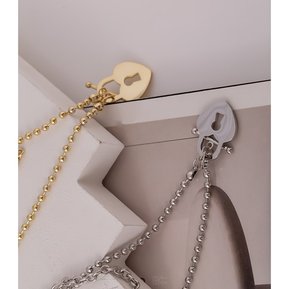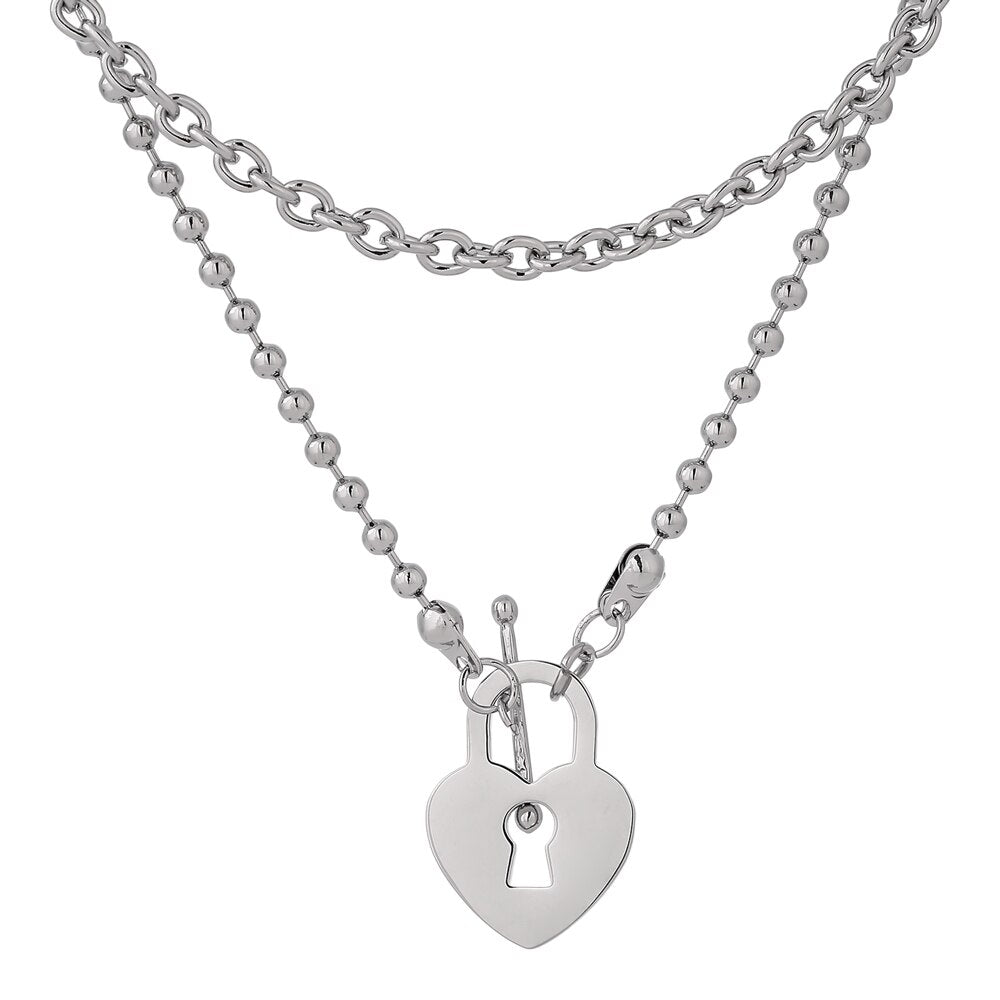 Yhpup Heart Lock Layered Pendant Necklace Trendy Golden Metal Texture Copper Choker Necklace for Women ожерелье 2022