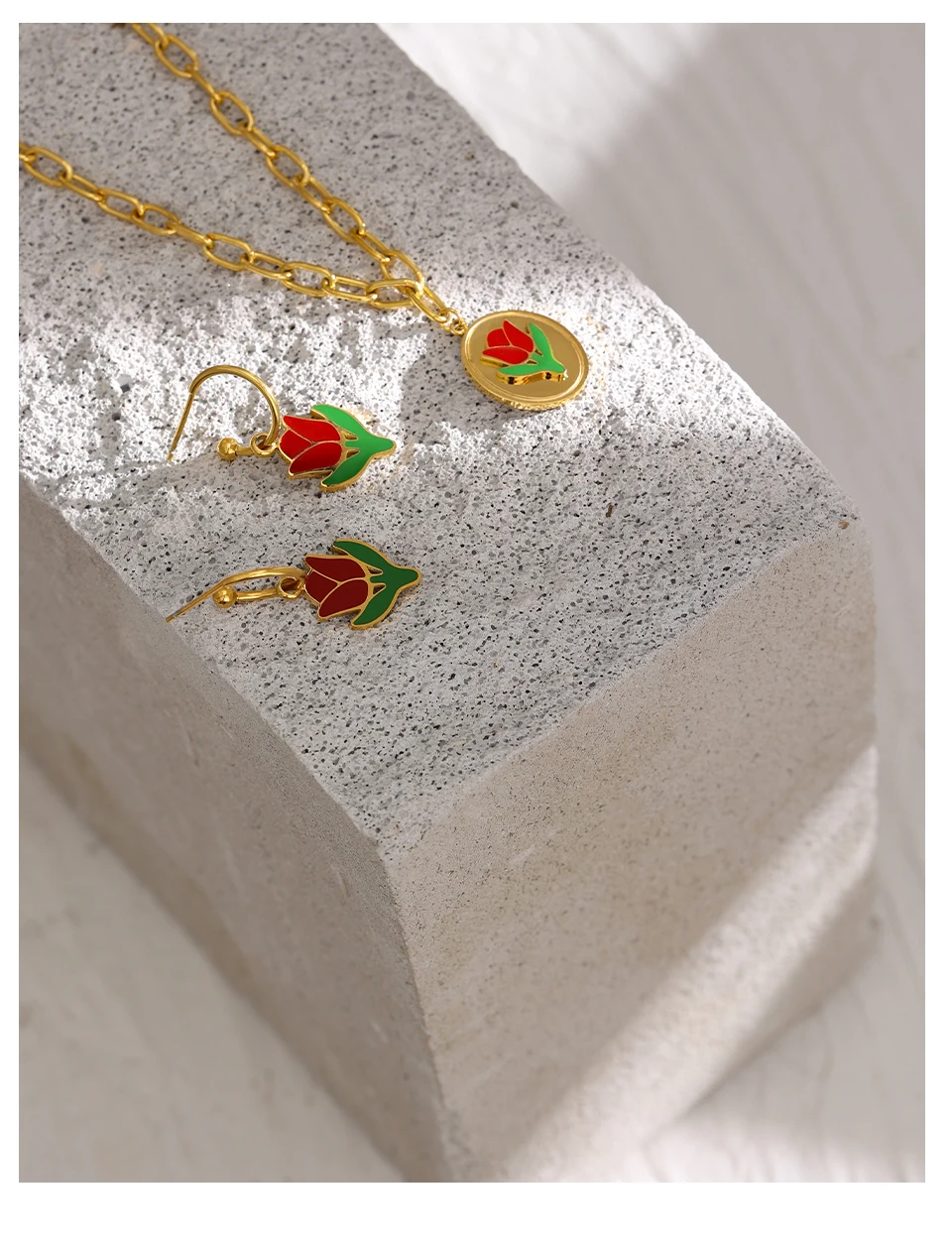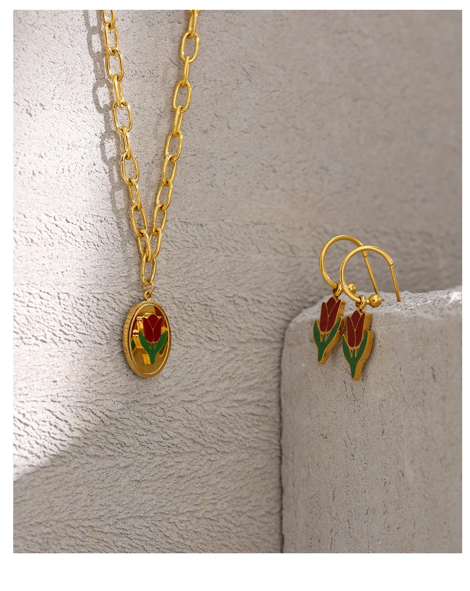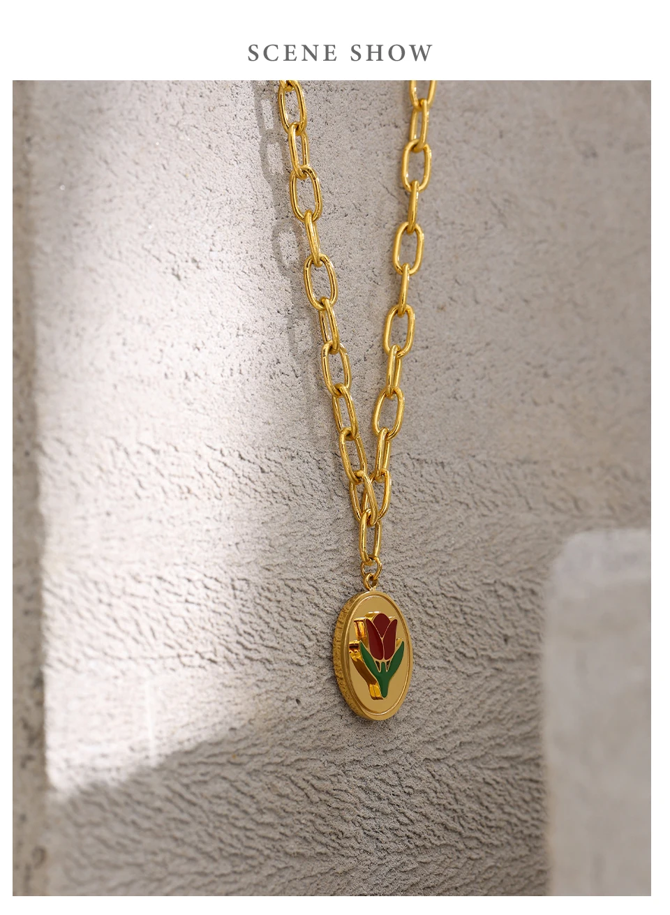 Yhpup Stainless Steel Enamel Flower Pendant Necklace Exquisite Metal 18 K Collar Necklace Bijoux Femme Anniversary Gift