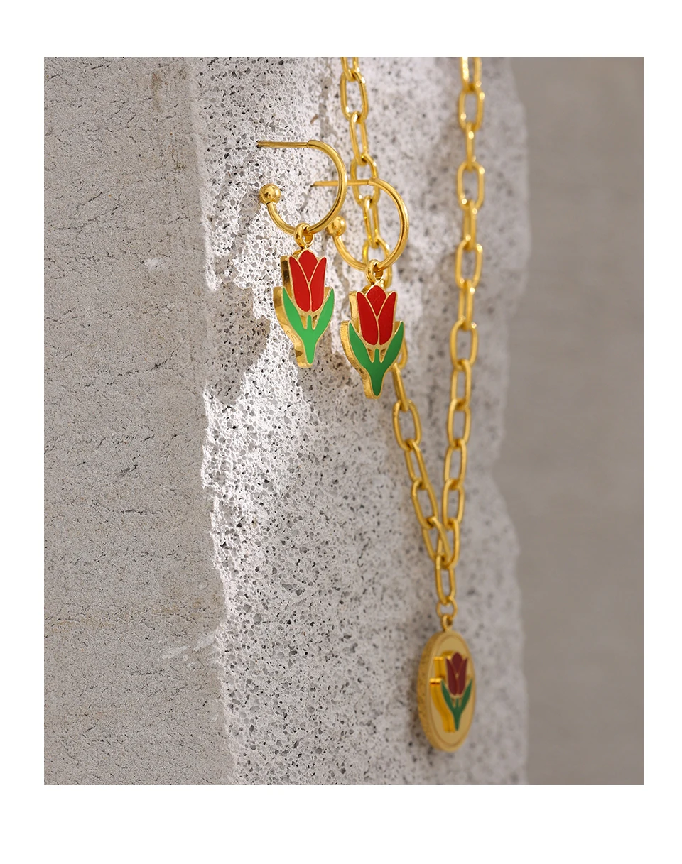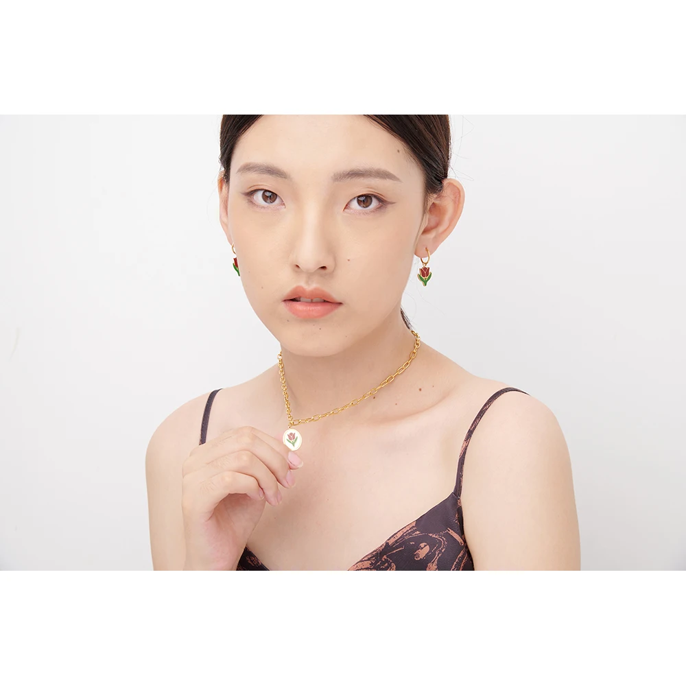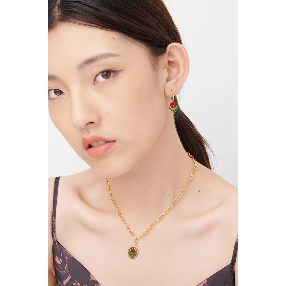 Yhpup Stainless Steel Enamel Flower Pendant Necklace Exquisite Metal 18 K Collar Necklace Bijoux Femme Anniversary Gift