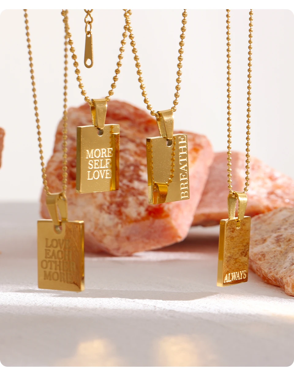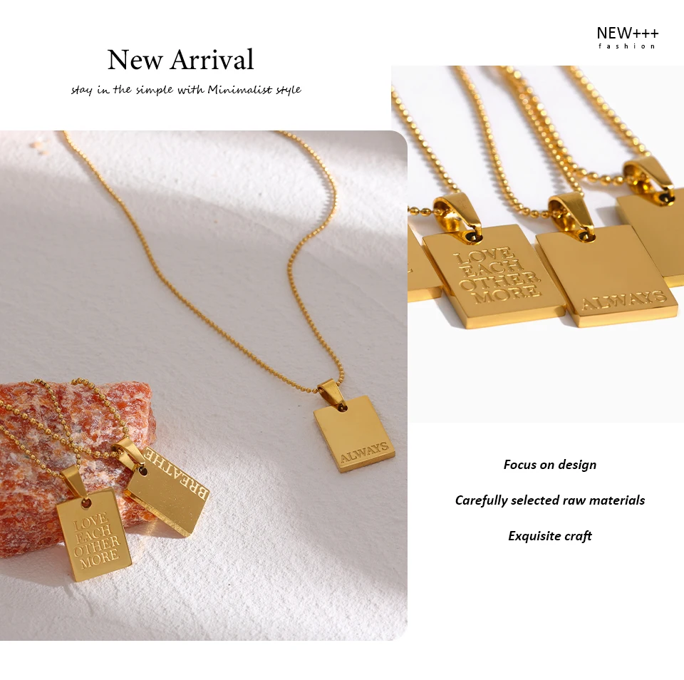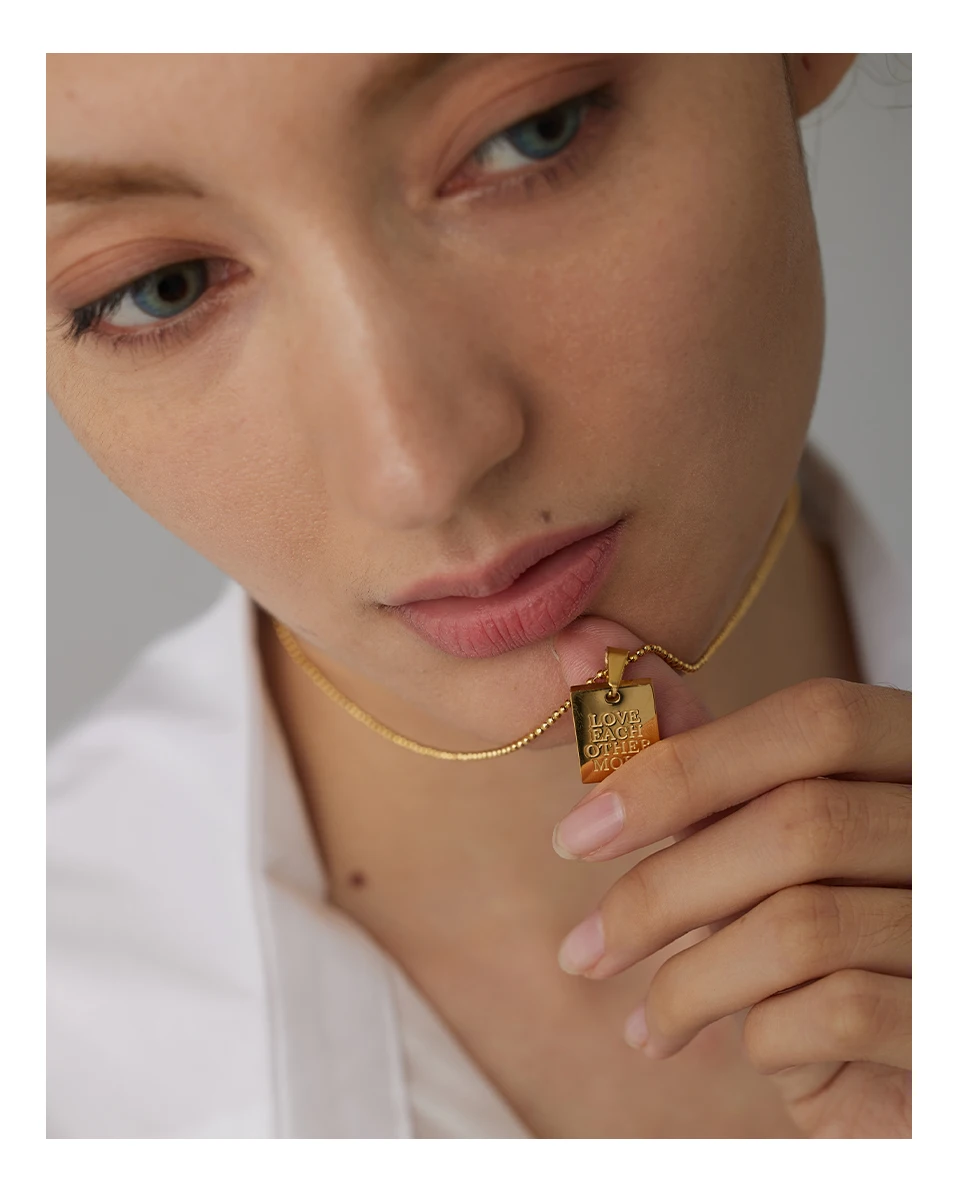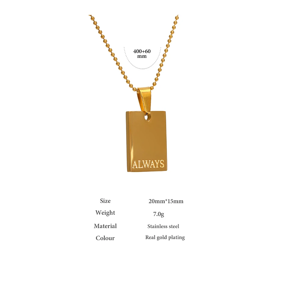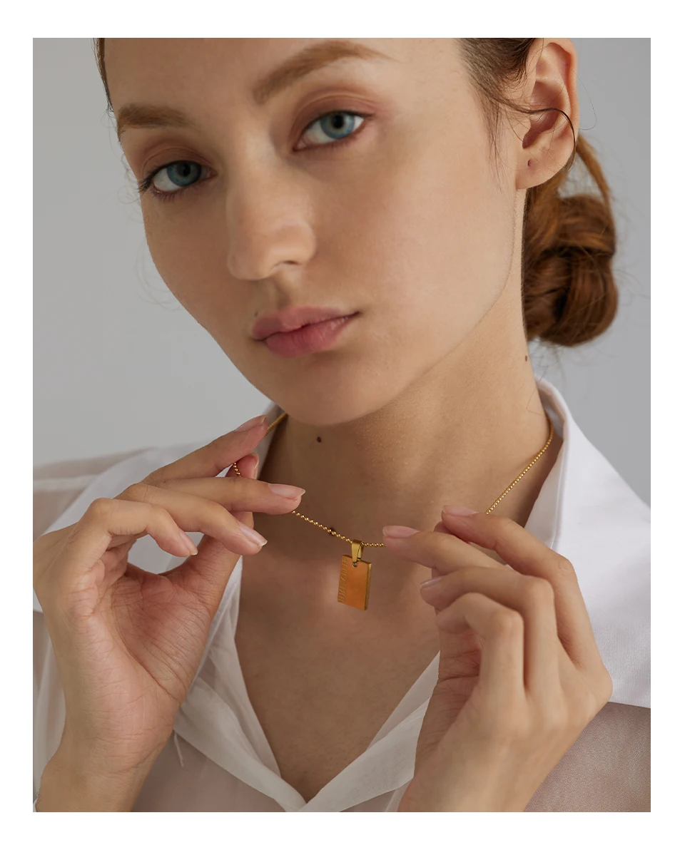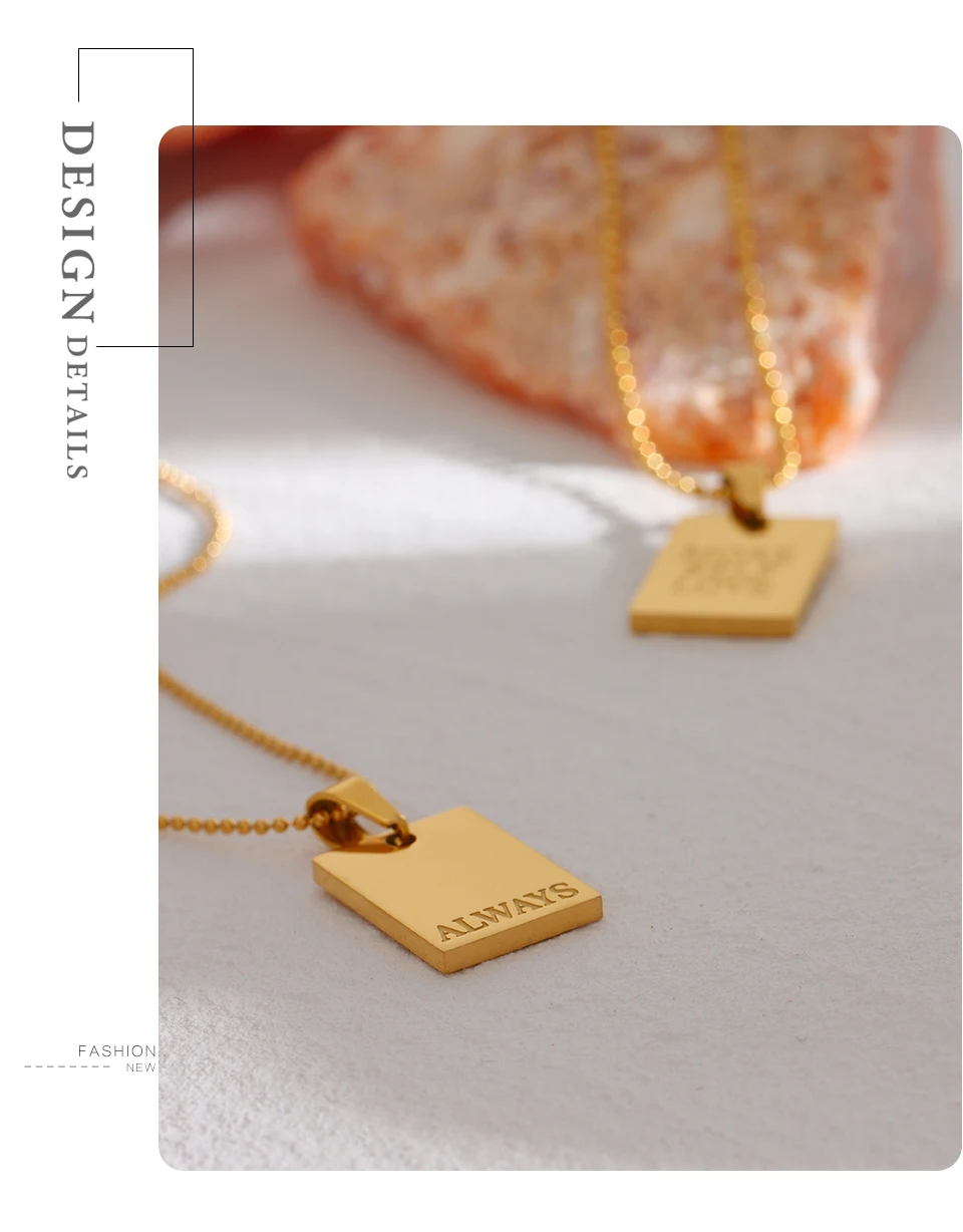 Yhpup Stainless Steel Square Pendant Necklace Trendy 18 K PVD Plated Collar Necklace Waterproof Jewelry цепочка на шею женская