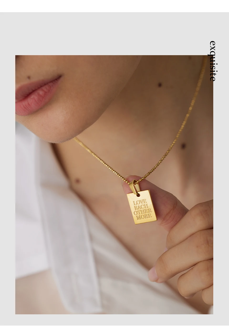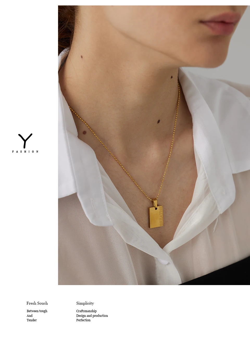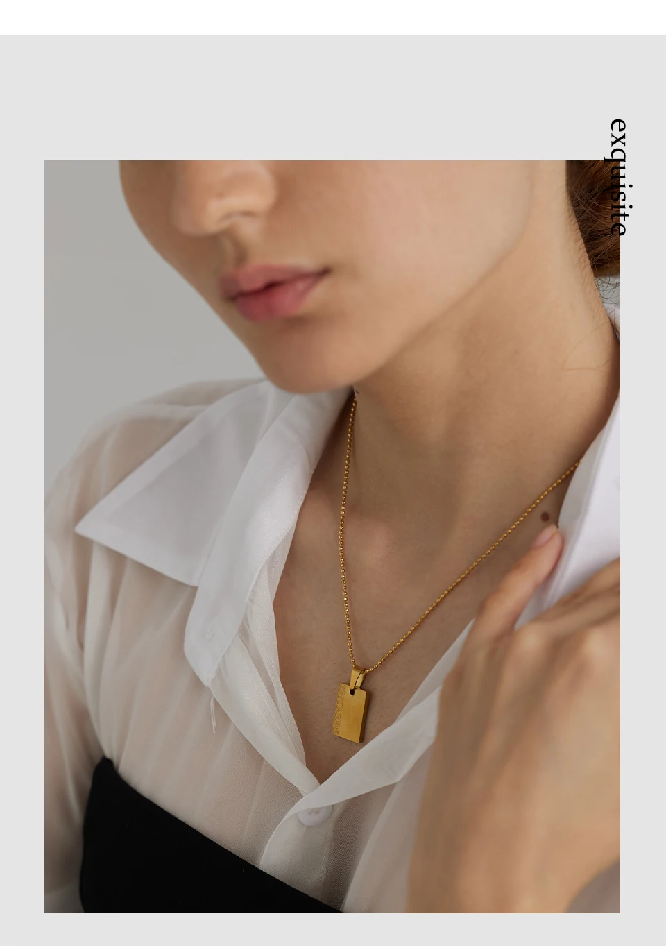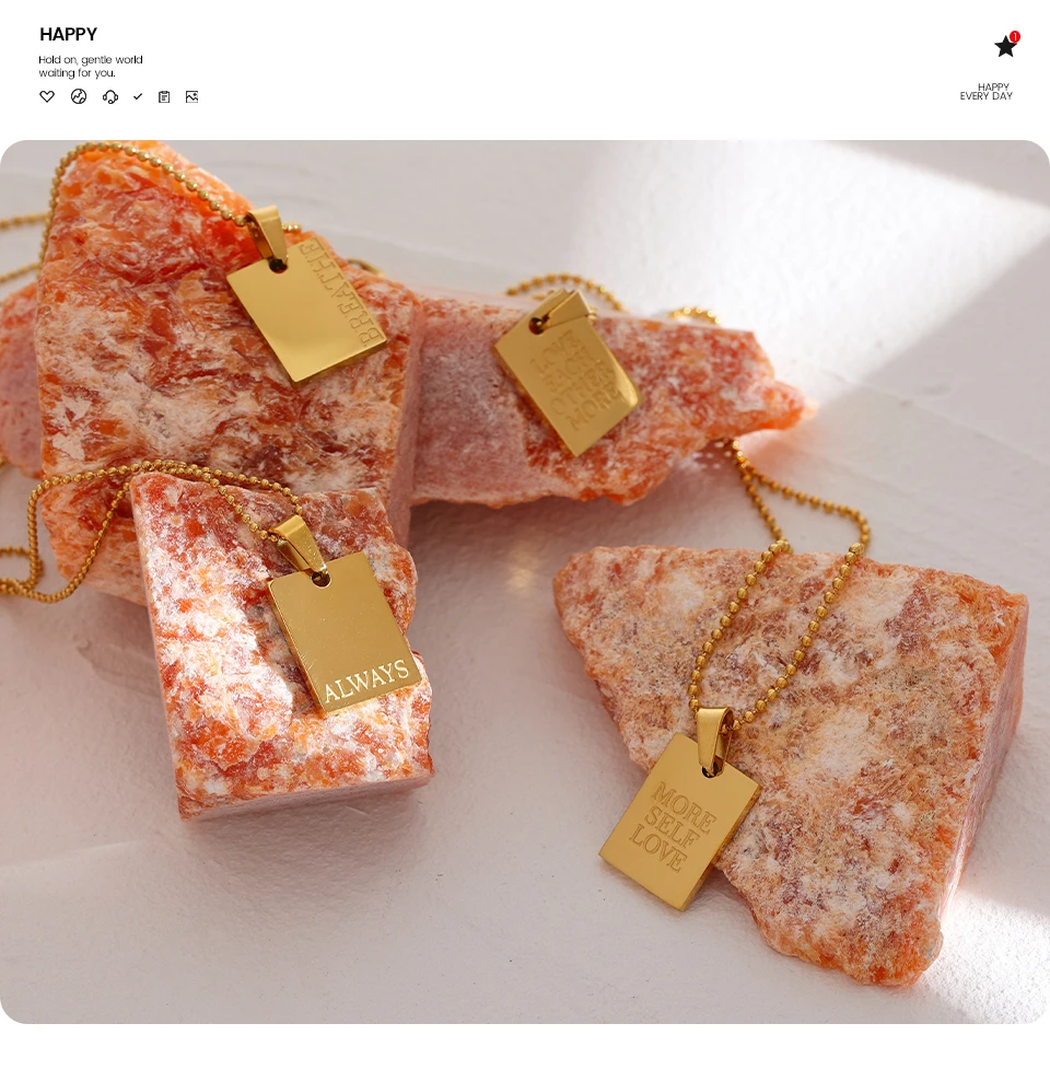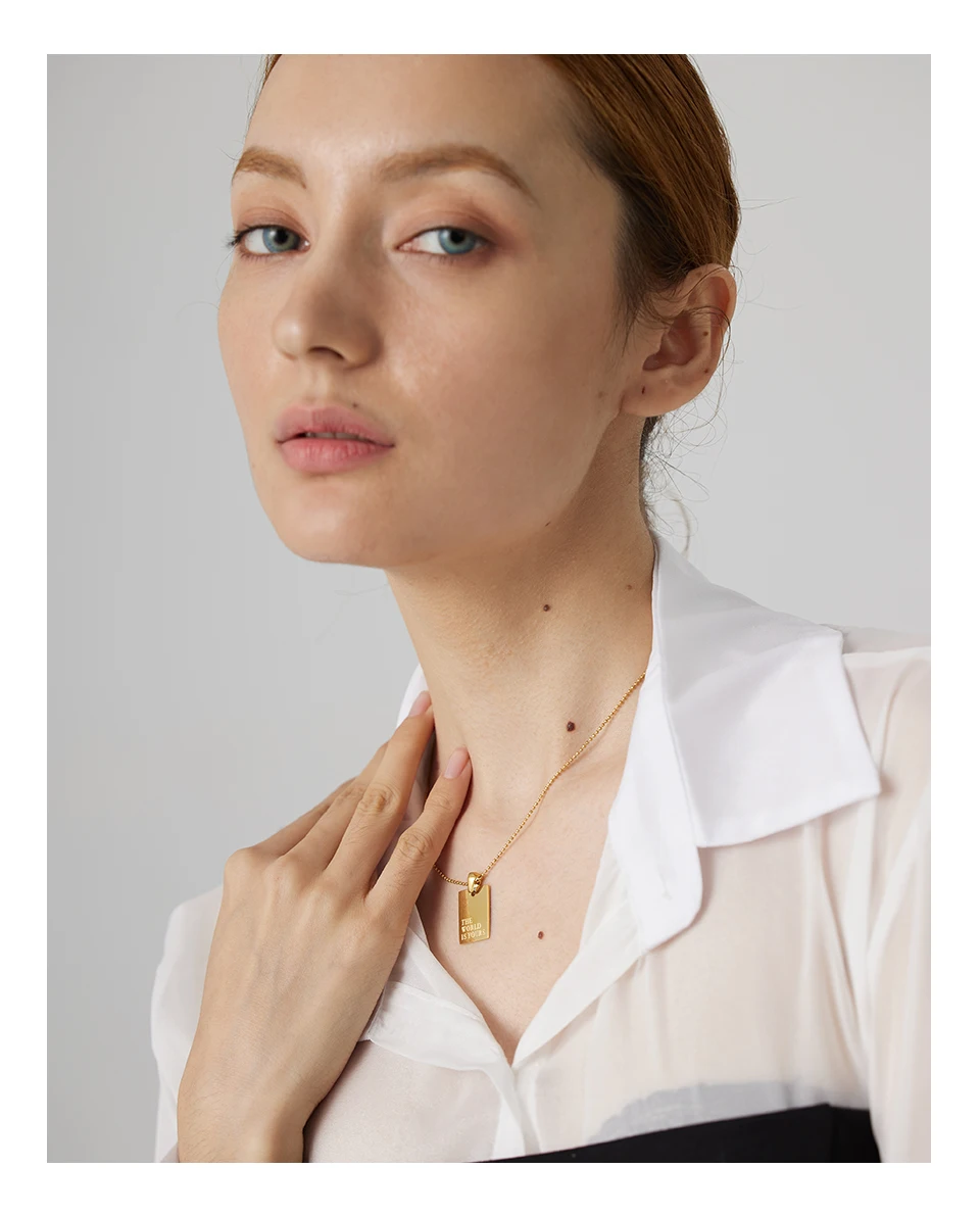 Yhpup Stainless Steel Square Pendant Necklace Trendy 18 K PVD Plated Collar Necklace Waterproof Jewelry цепочка на шею женская