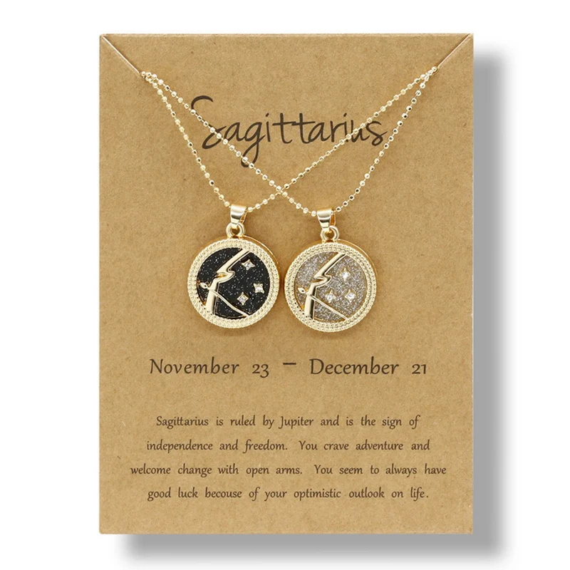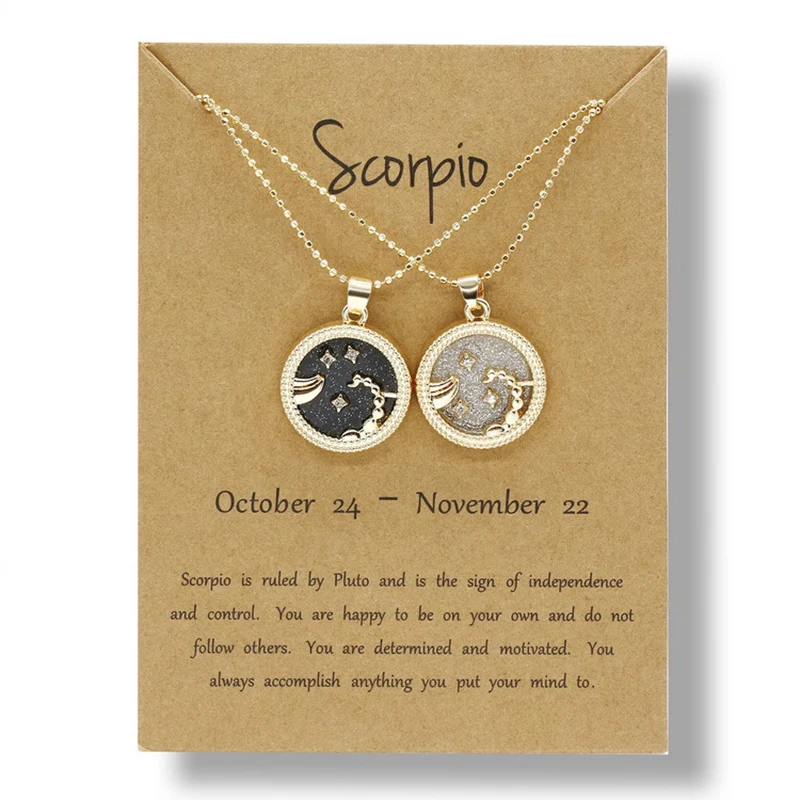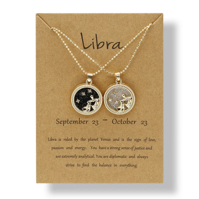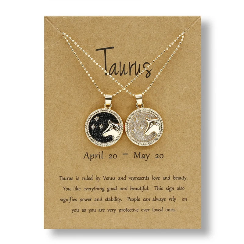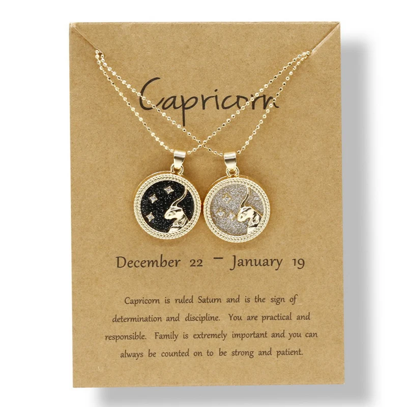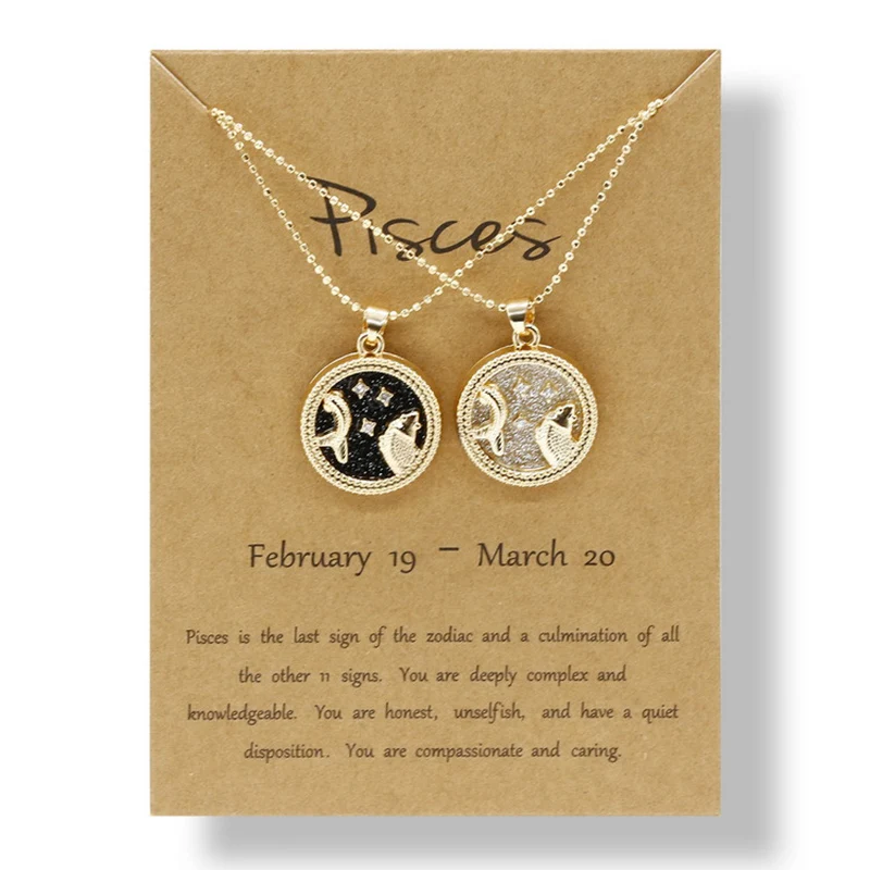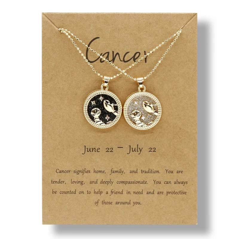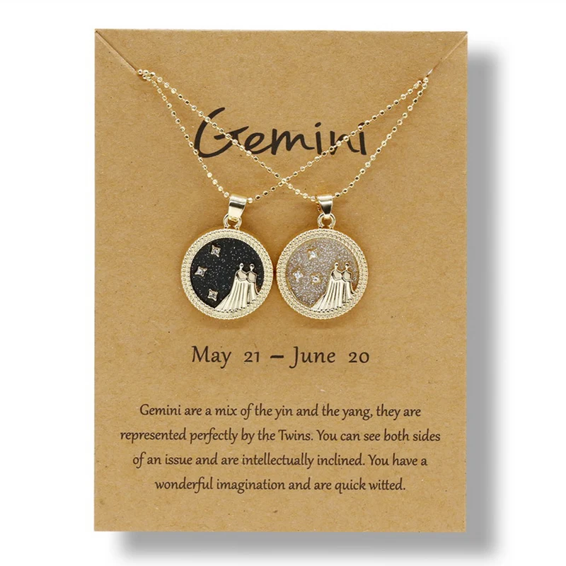 YiJia 2pcs/pack Coin Pendant Cancer Zodiac Necklaces for Women Men Stars Constellati Horoscope Sign Birthday Jewelry Gemini
