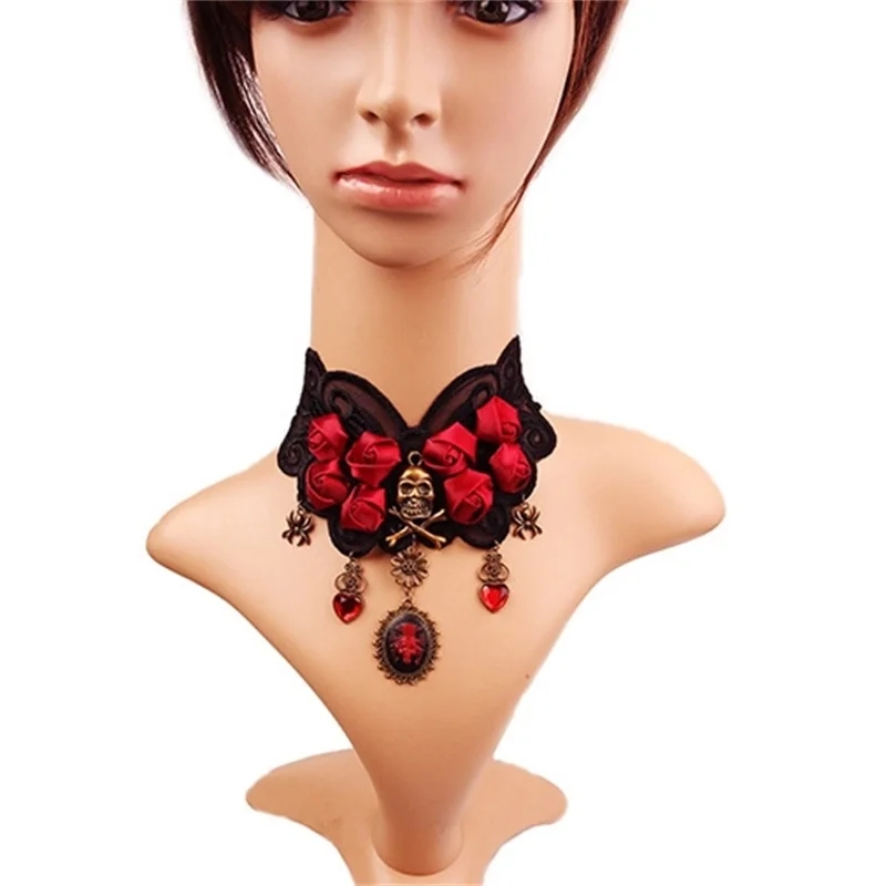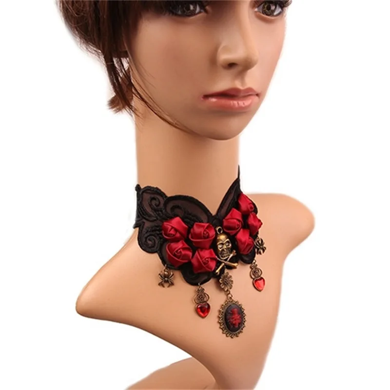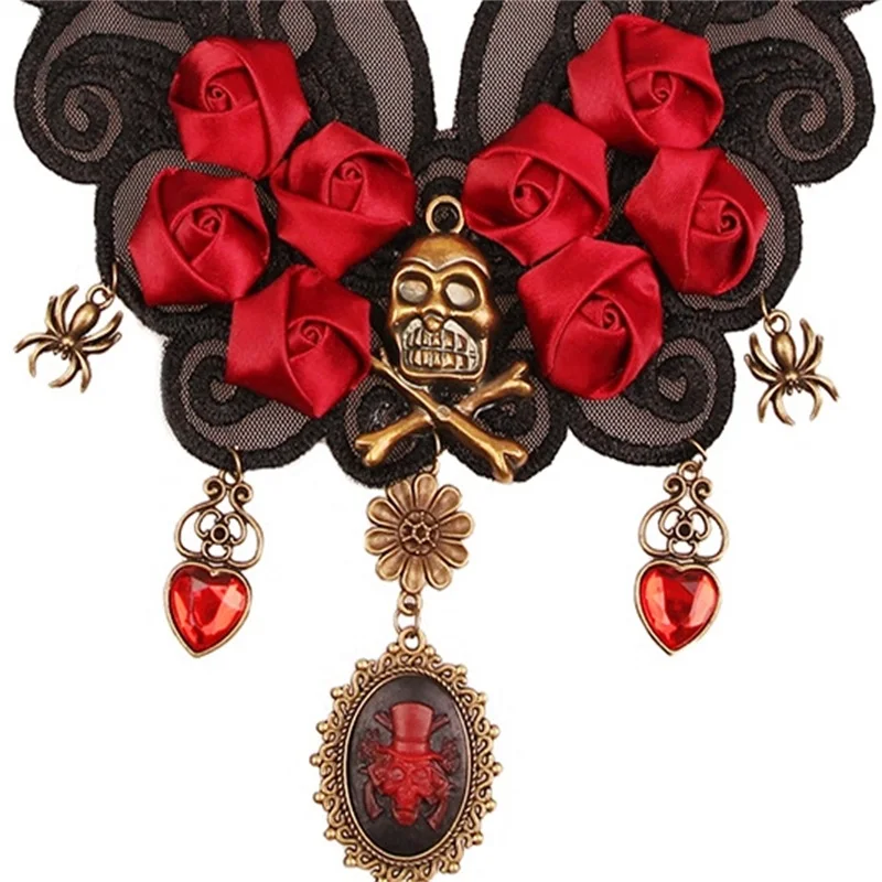 YiYaoFa Halloween Skull Lace Choker Necklace for Women Accessories Skeleton Cosplay Jewelry Necklace Collar Party Jewelry Y472